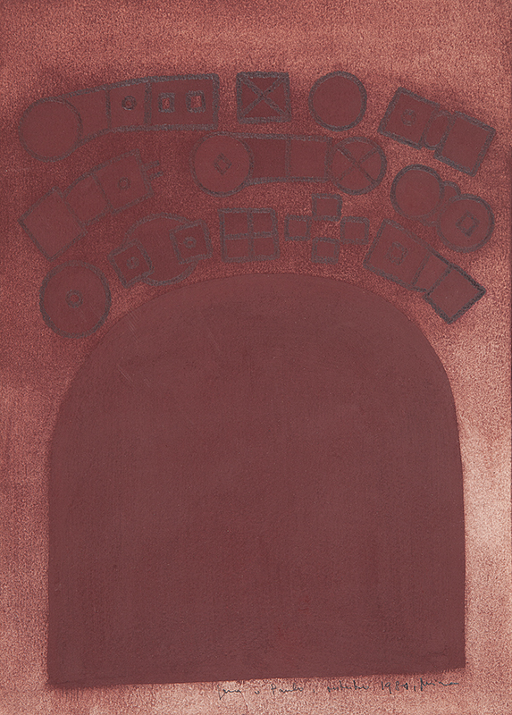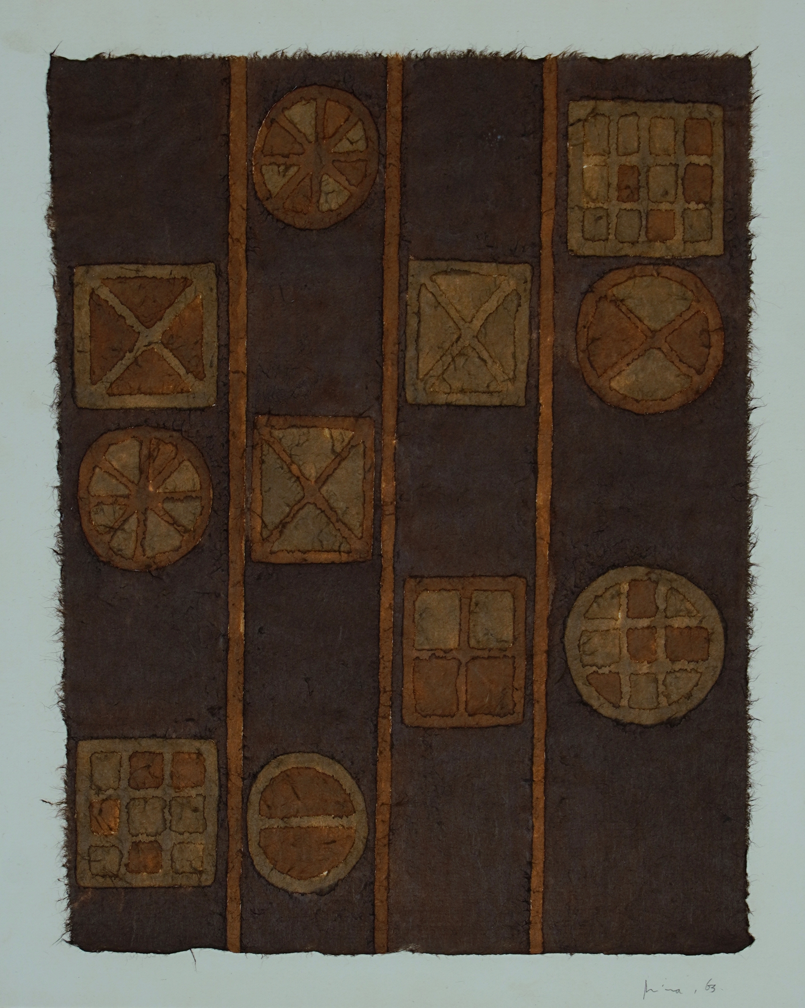 A produção artística de Mira Schendel, marcada pela constante experimentação, é constituída por múltiplas séries de trabalhos, experiências bastante diversas quanto a formato e dimensões, aos suportes escolhidos e à técnica adotada, mas que guardam entre si uma coerência no que diz respeito às questões por eles suscitadas. As obras de Mira Schendel geralmente não têm títulos, mas ela nomeia as séries, que funcionam como apelidos aos trabalhos. Na década de 1950, sua linguagem pictórica simplifica-se progressivamente, em trabalhos que exploram o tratamento dado à superfície.