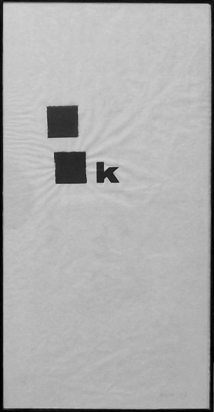 Mira Schendel - Sem título, série Toquinho P - 1972 - Letraset e papel artesanal tingido com ecoline sobre papel - Assinado canto inferior direito - 48 x 24 cm.