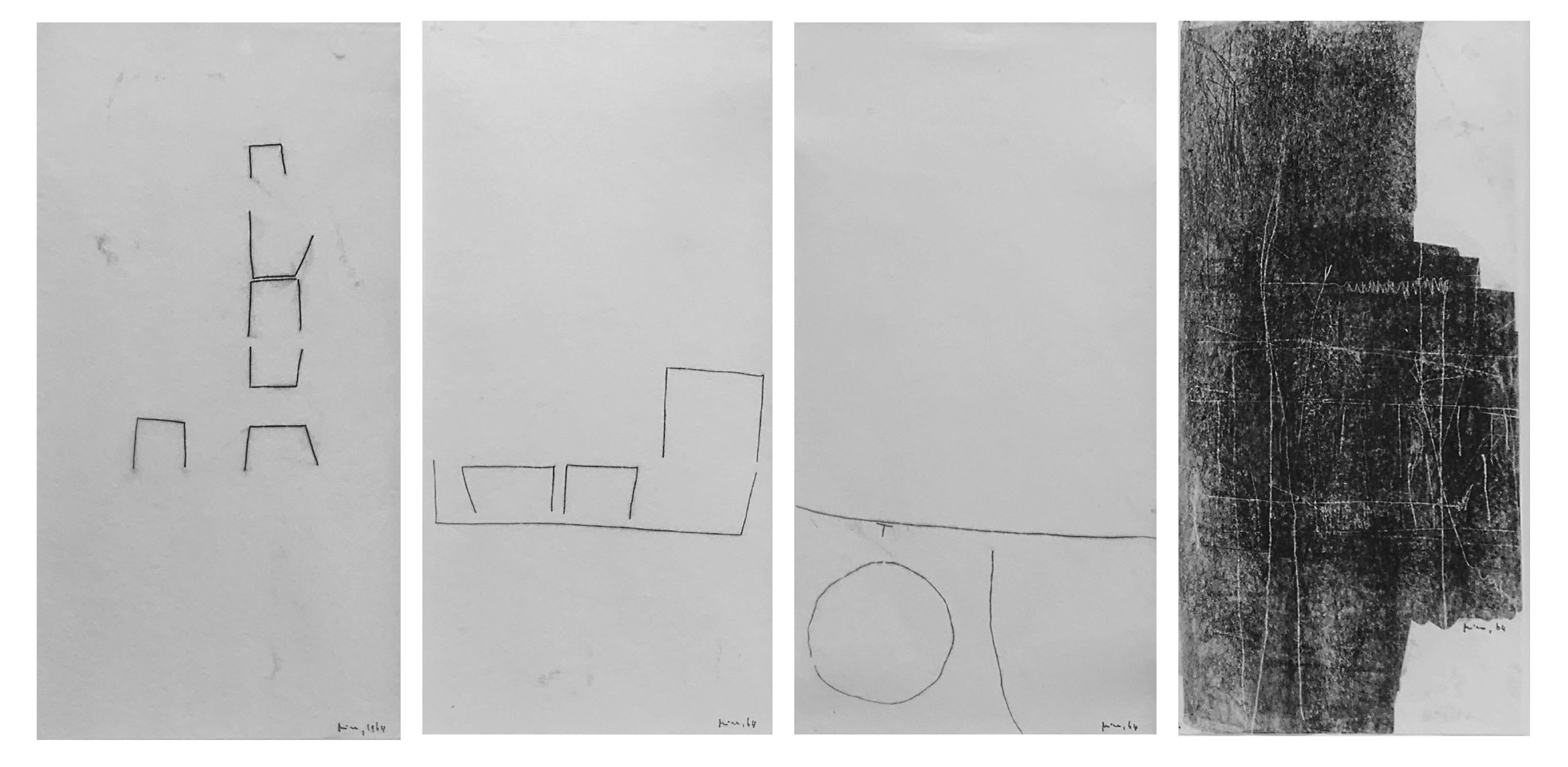 A produção artística de Mira Schendel, marcada pela constante experimentação, é constituída por múltiplas séries de trabalhos, experiências bastante diversas quanto a formato e dimensões, aos suportes escolhidos e à técnica adotada, mas que guardam entre si uma coerência no que diz respeito às questões por eles suscitadas. As obras de Mira Schendel geralmente não têm títulos, mas ela nomeia as séries, que funcionam como apelidos aos trabalhos. Na década de 1950, sua linguagem pictórica simplifica-se progressivamente, em trabalhos que exploram o tratamento dado à superfície.