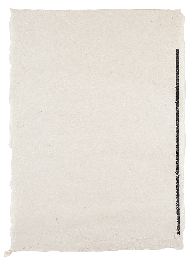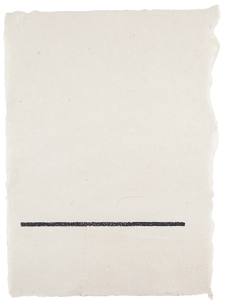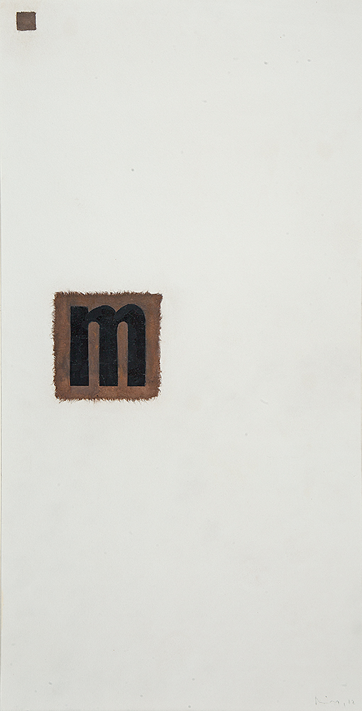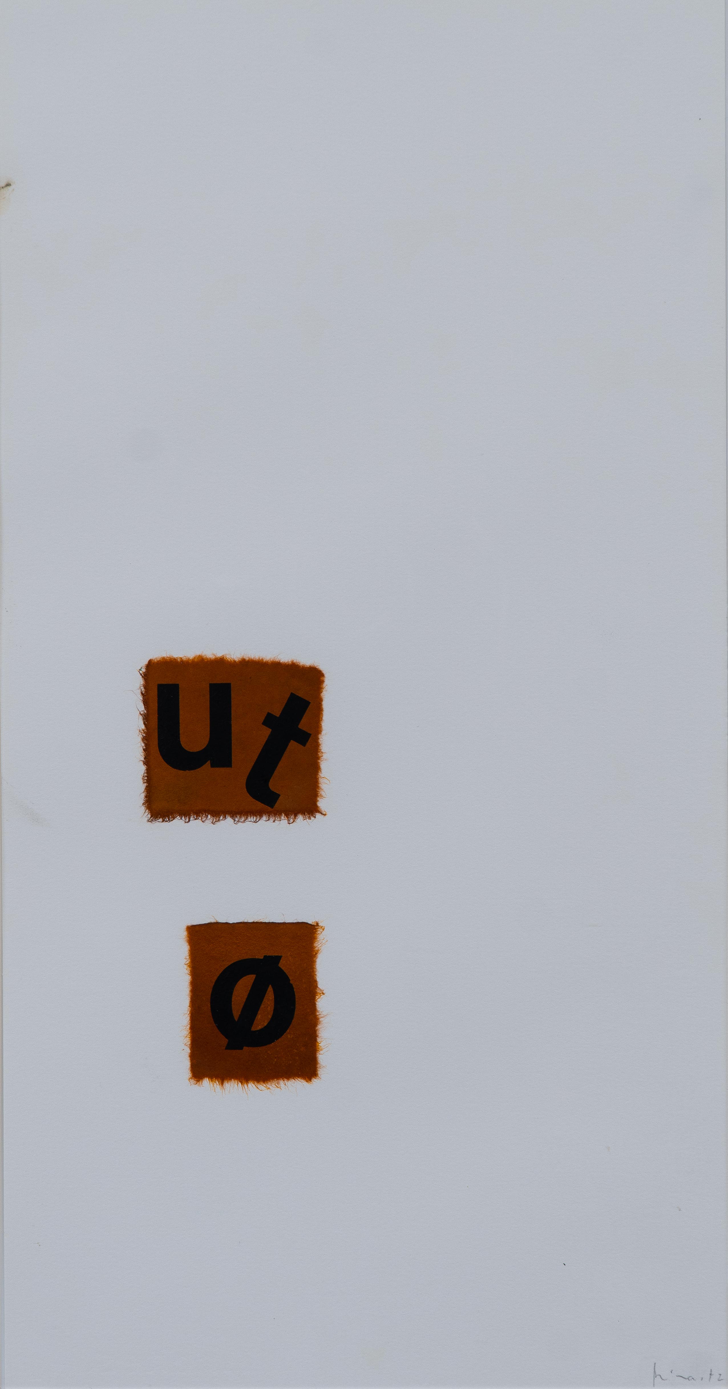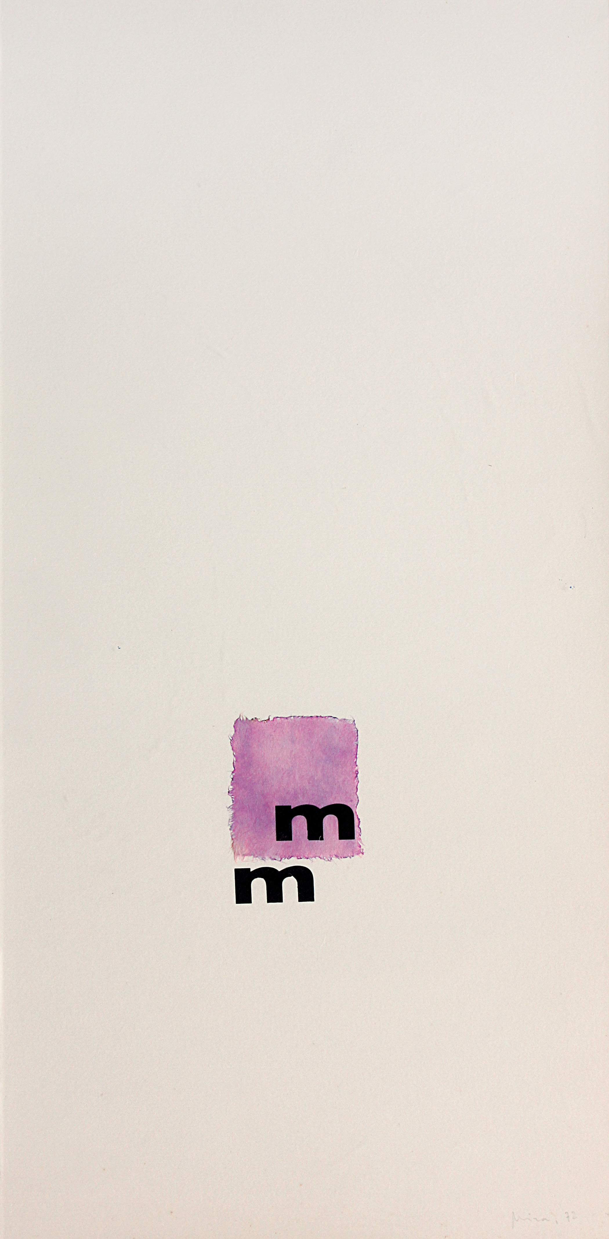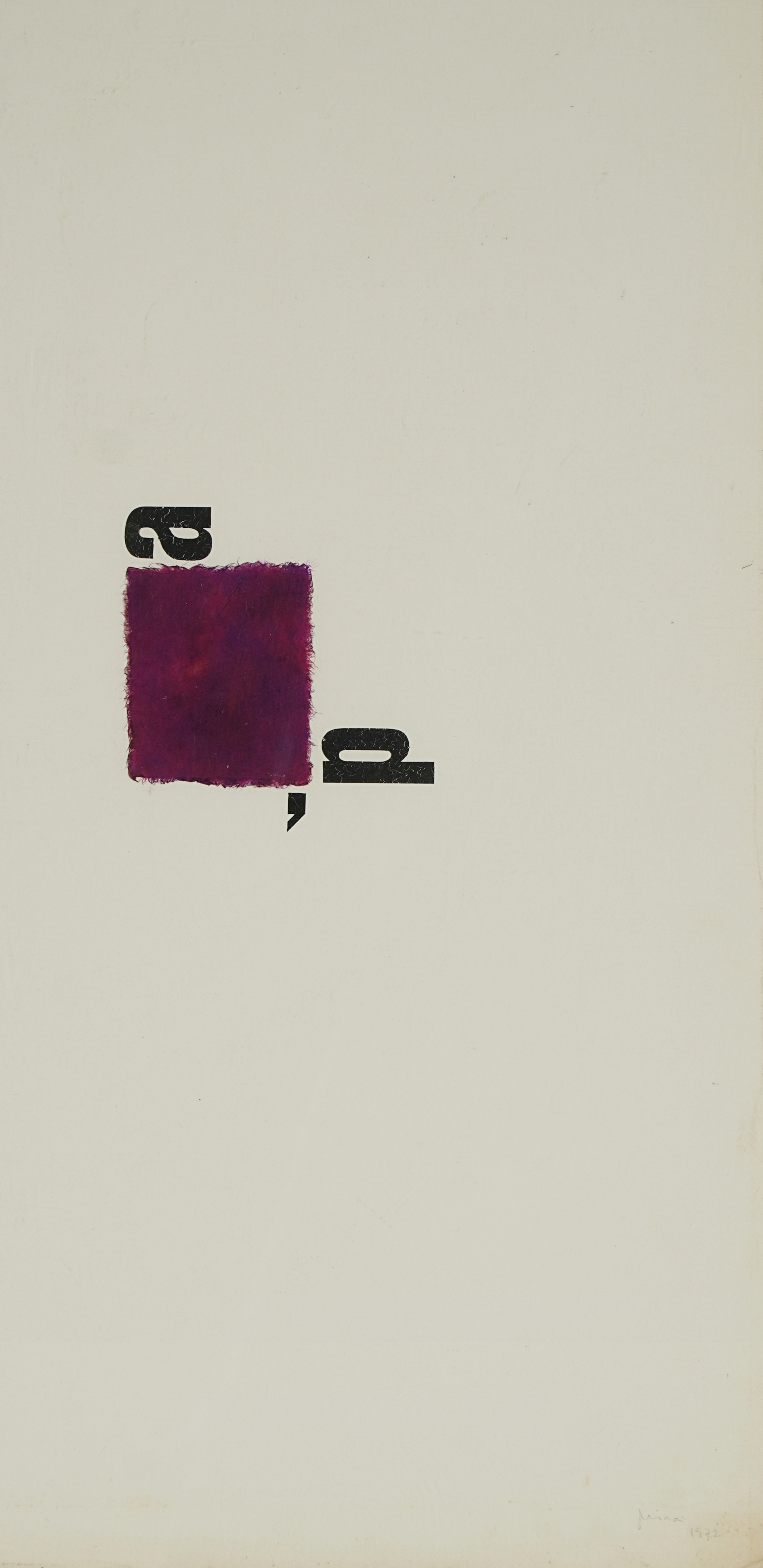 Mira Schendel - Sem título, série Toquinho P - 1972 - Letraset e papel artesanal tingido com ecoline sobre papel - Assinado canto inferior direito - 48 x 24 cm.