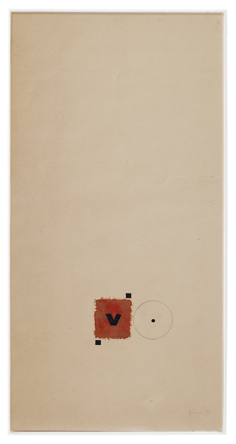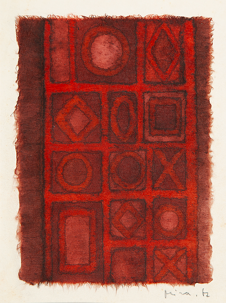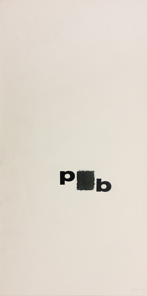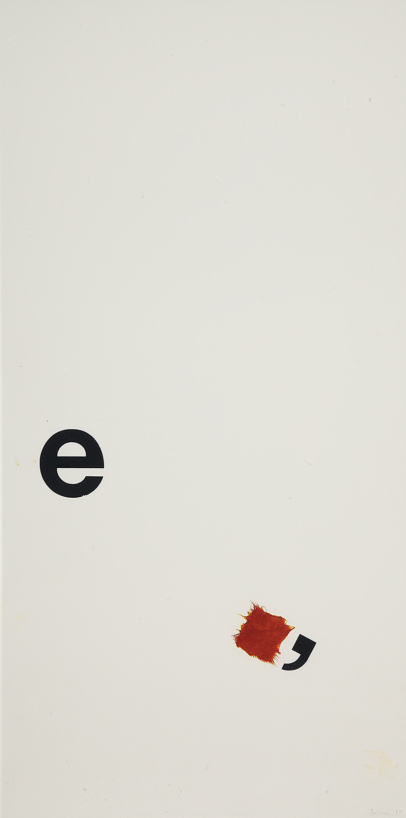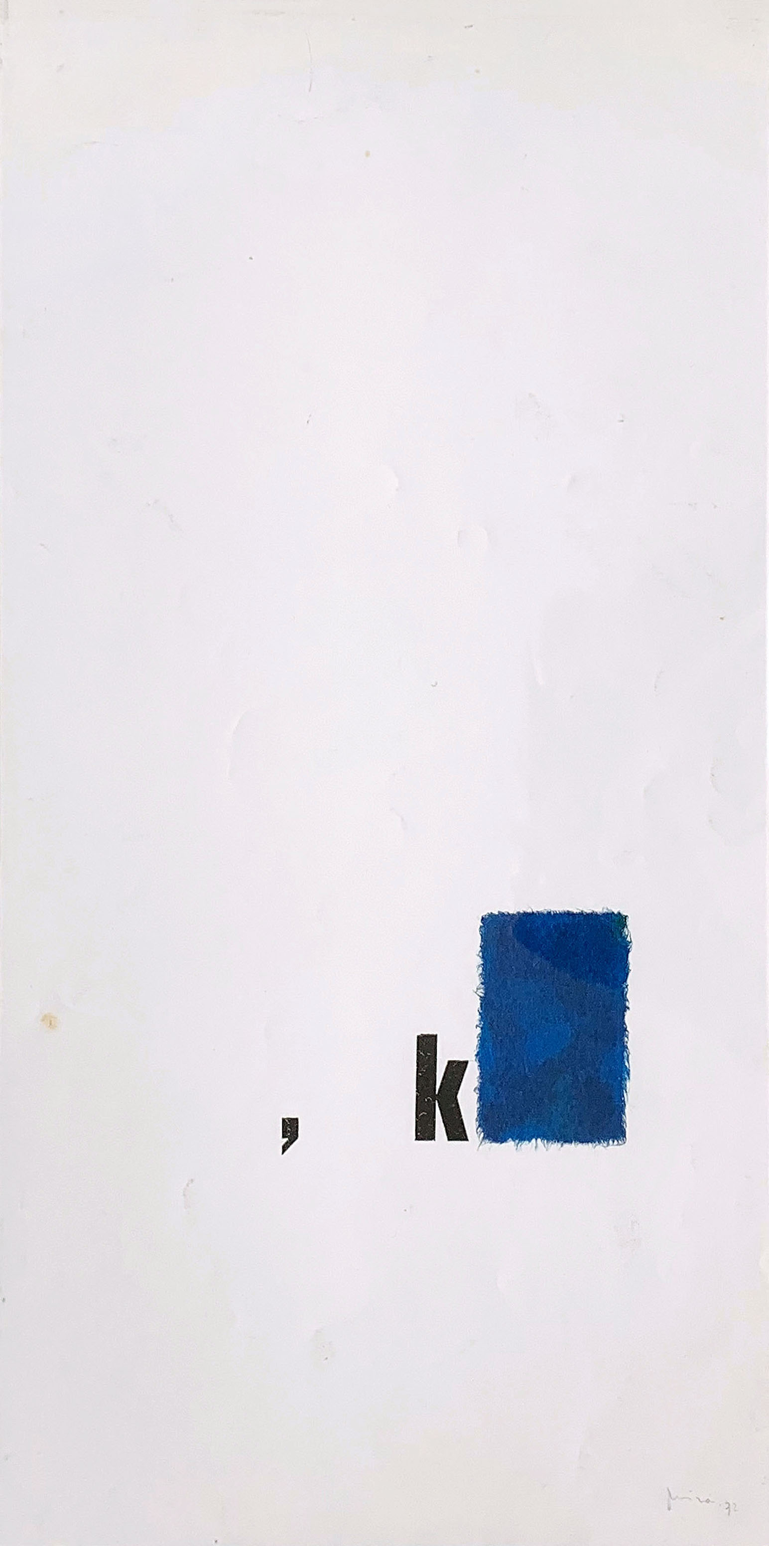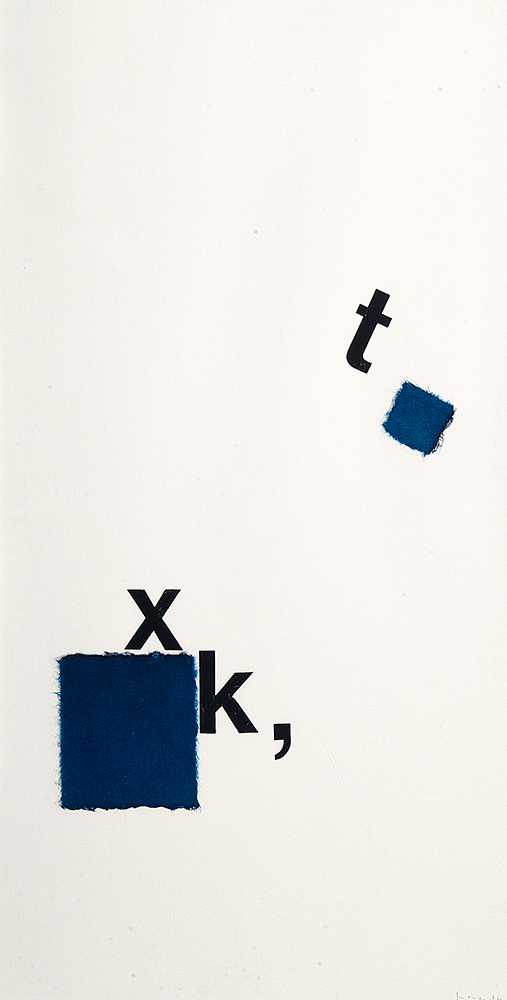 Mira Schendel - Sem título, série Toquinho P - 1972 - Letraset e papel artesanal tingido com ecoline sobre papel - Assinado canto inferior direito - 48 x 24 cm.