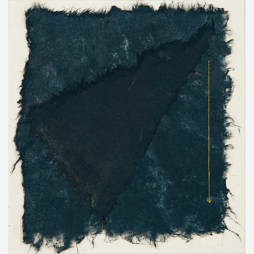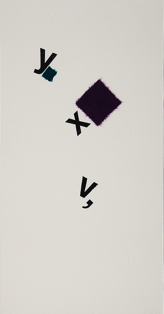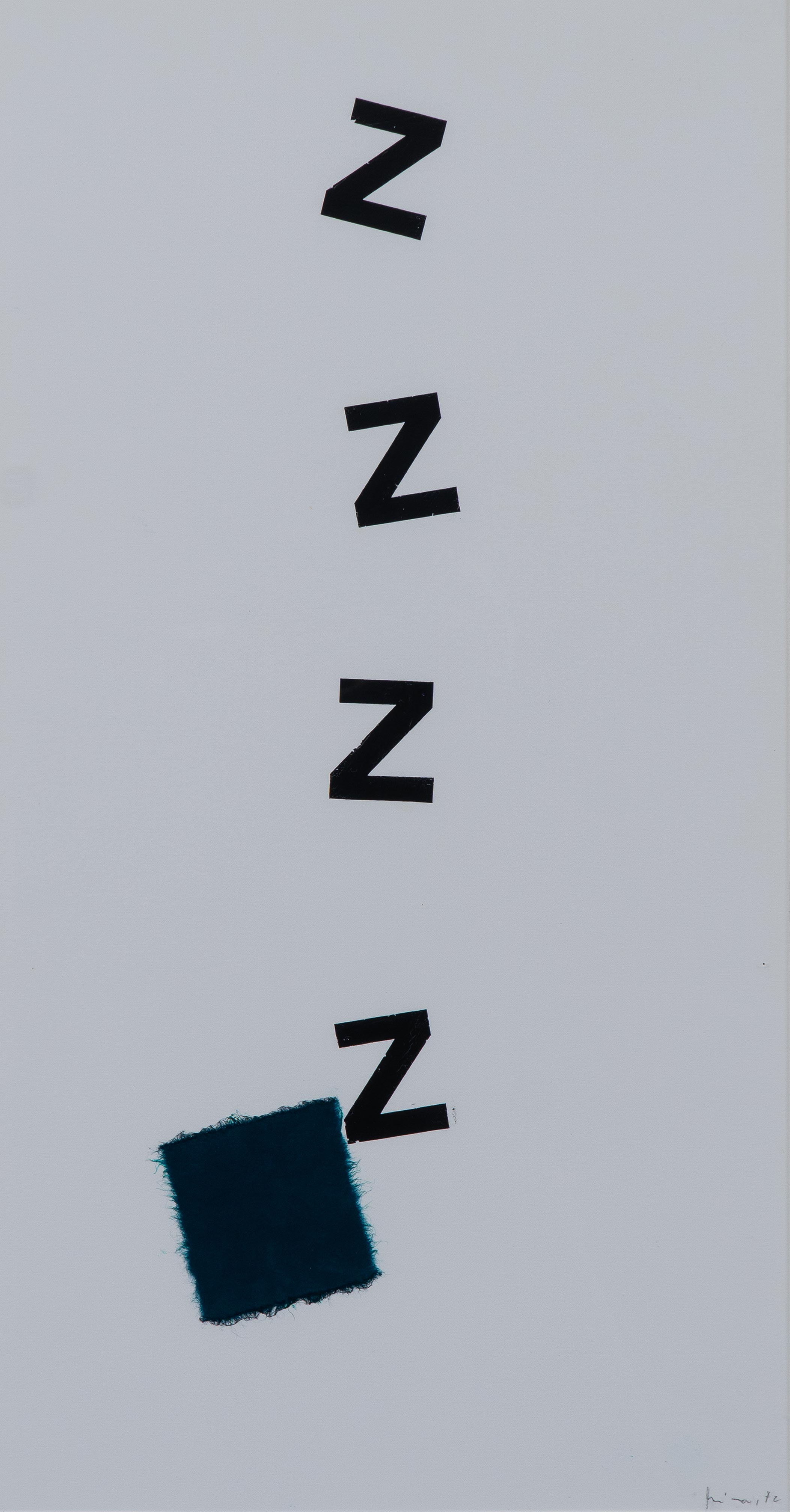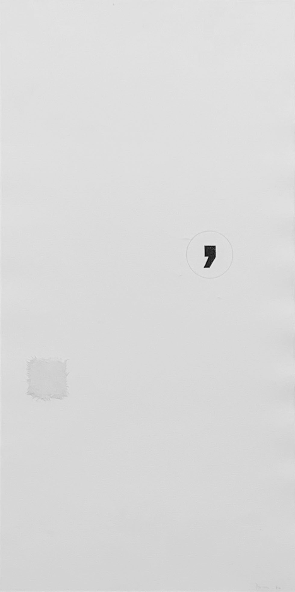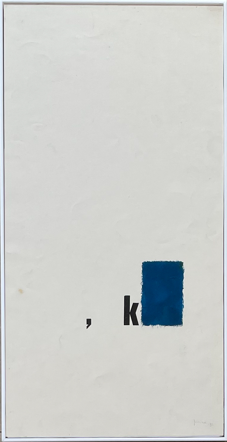 Mira Schendel - Sem título, série Toquinho P - 1972 - Letraset e papel artesanal tingido com ecoline sobre papel - Assinado canto inferior direito - 48 x 24 cm.