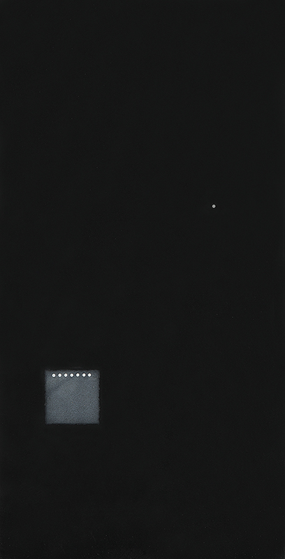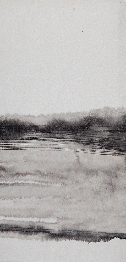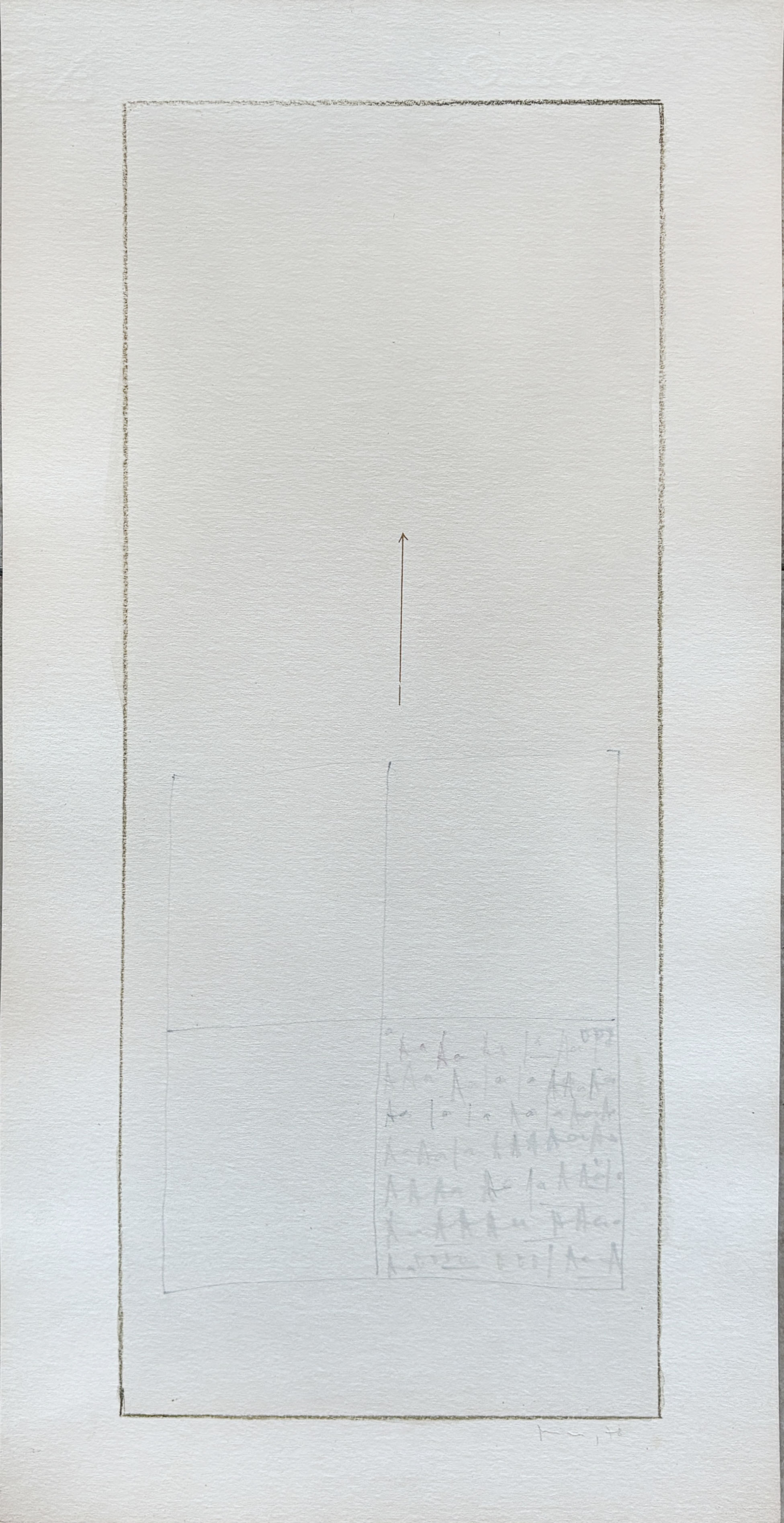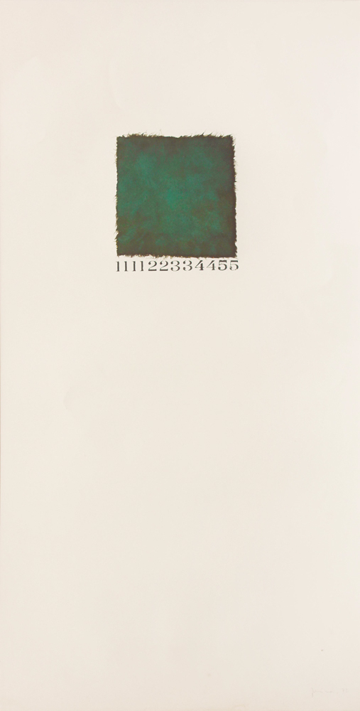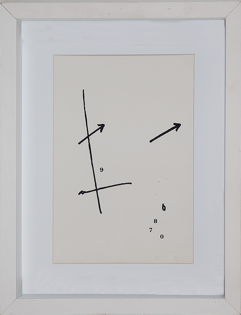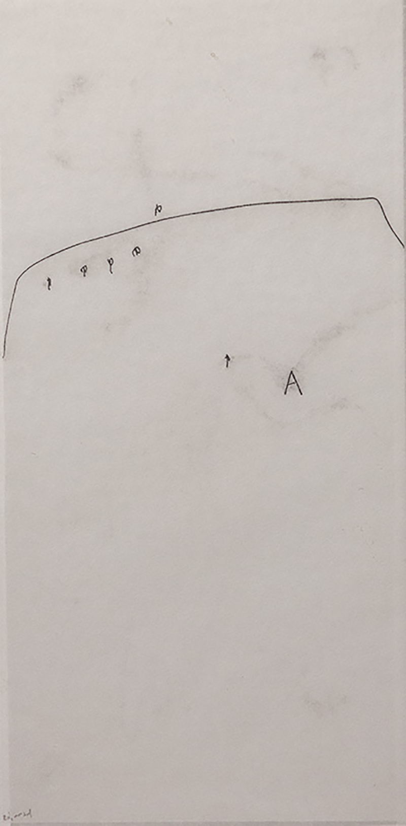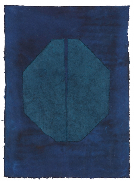 Mira Schendel - Sem título, série Toquinho P - 1972 - Letraset e papel artesanal tingido com ecoline sobre papel - Assinado canto inferior direito - 48 x 24 cm.