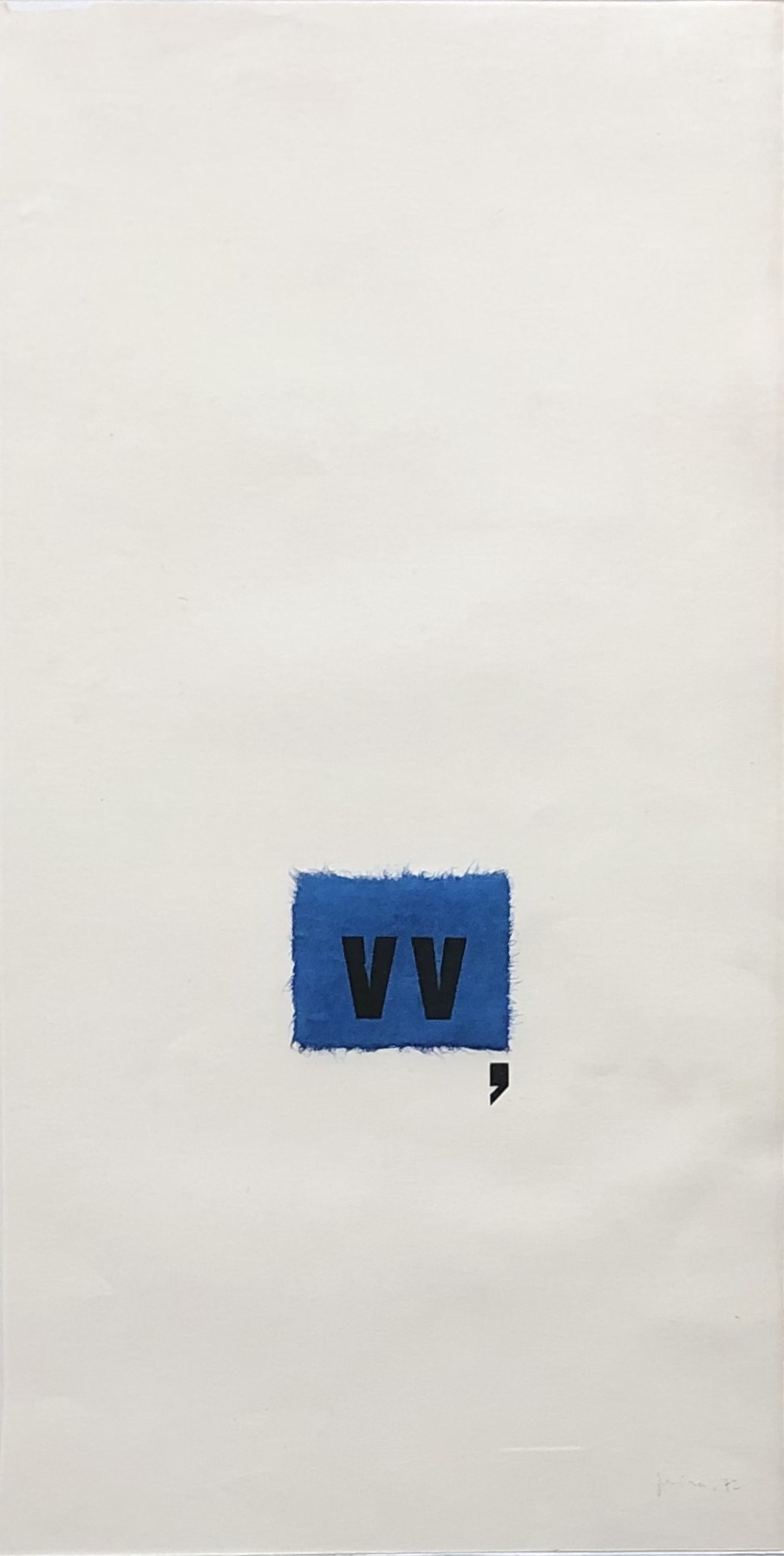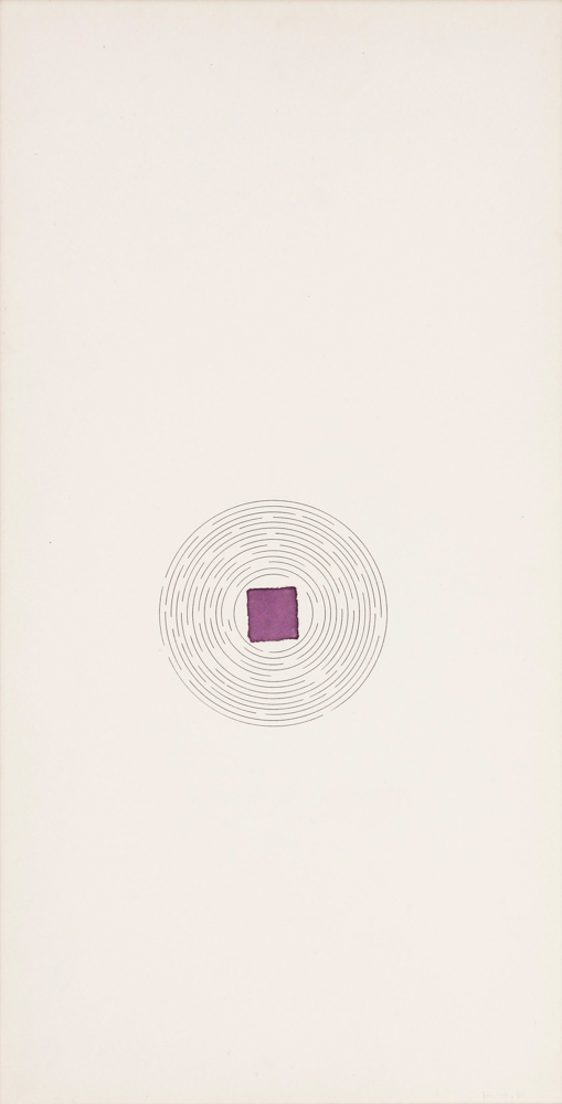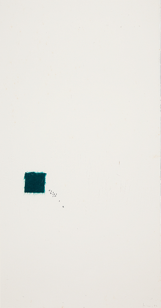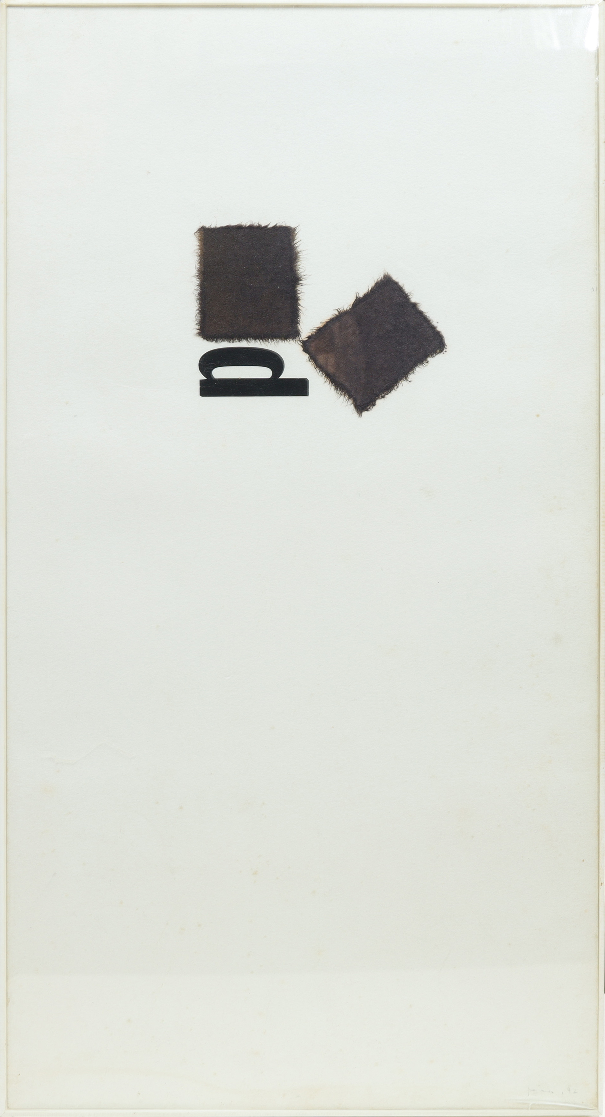 Mira Schendel - Sem título, série Toquinho P - 1972 - Letraset e papel artesanal tingido com ecoline sobre papel - Assinado canto inferior direito - 48 x 24 cm.