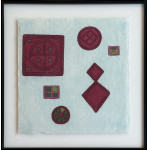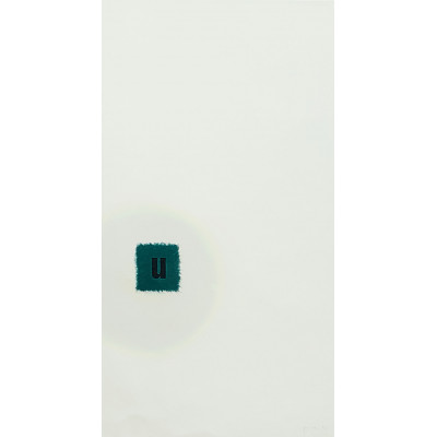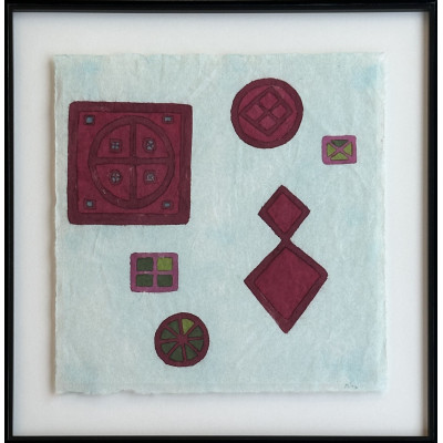 Mira Schendel - Sem título, série Toquinhos - 1972 - Letraset e papel artesanal tingido com ecoline sobre papel - Assinado canto inferior direito - 50 x 25 cm.