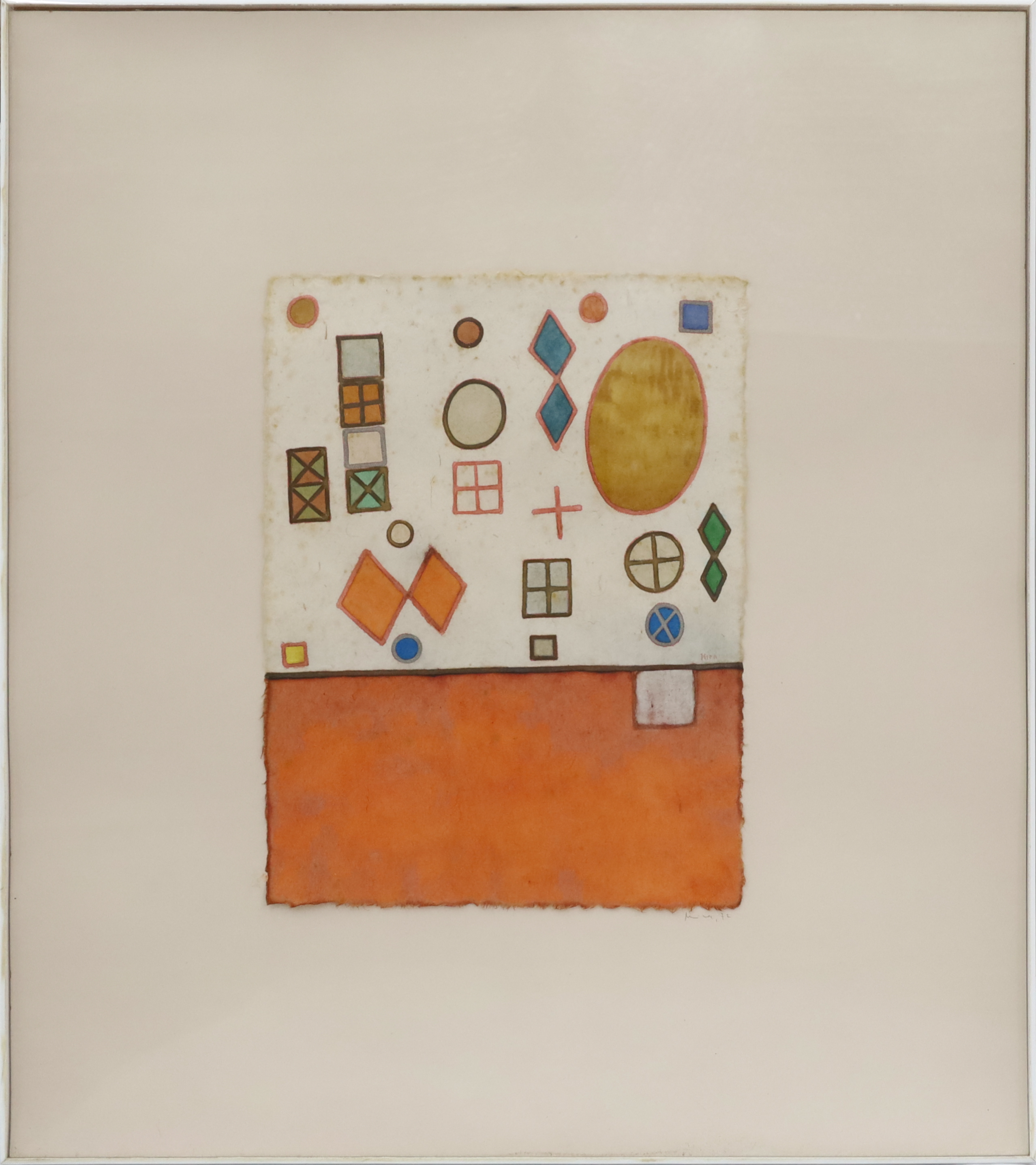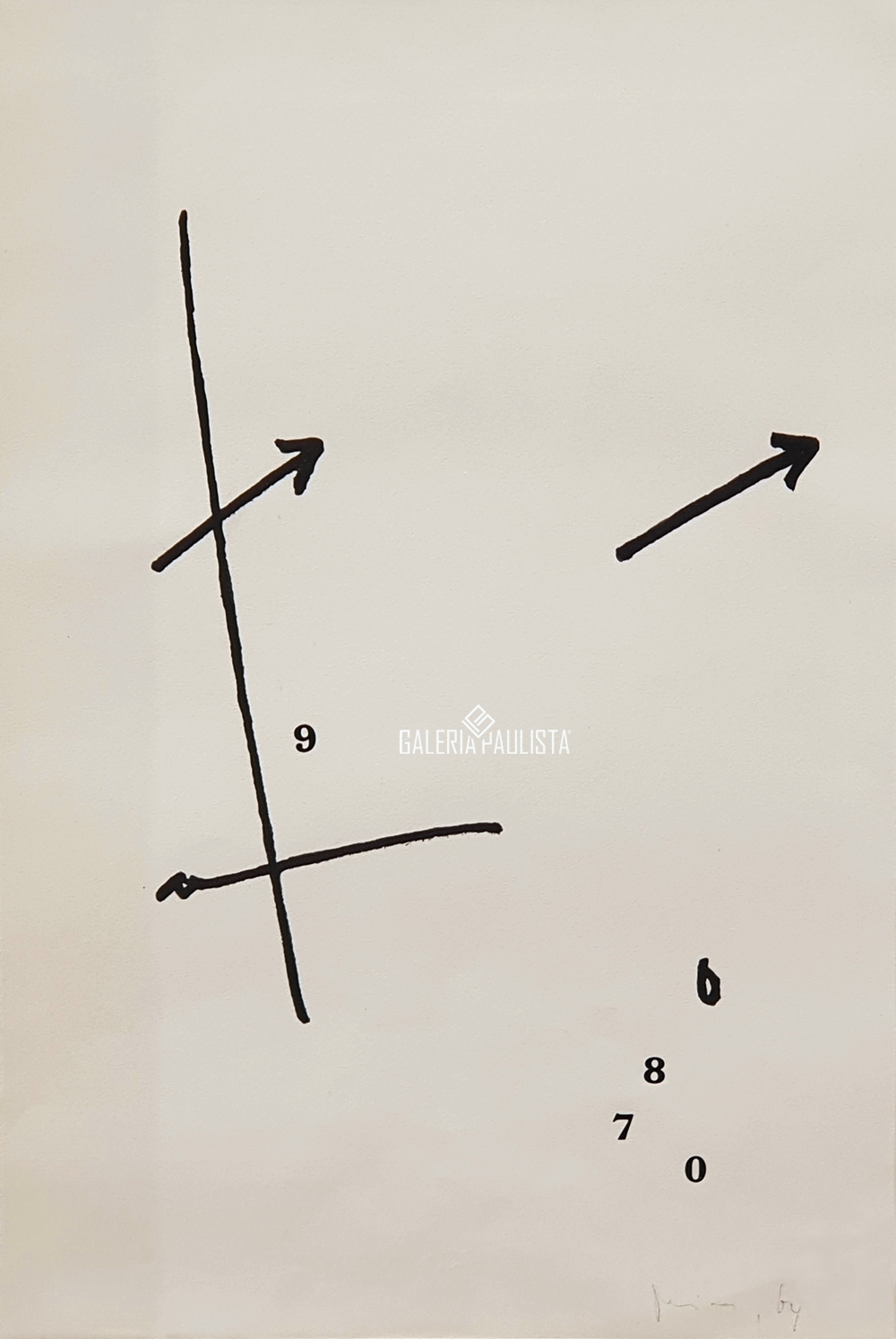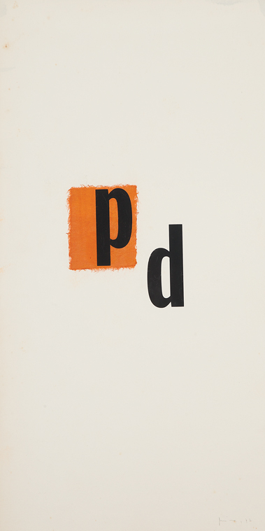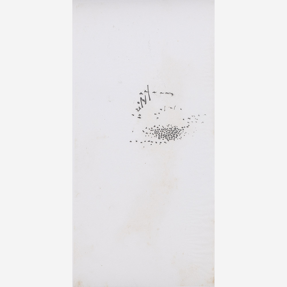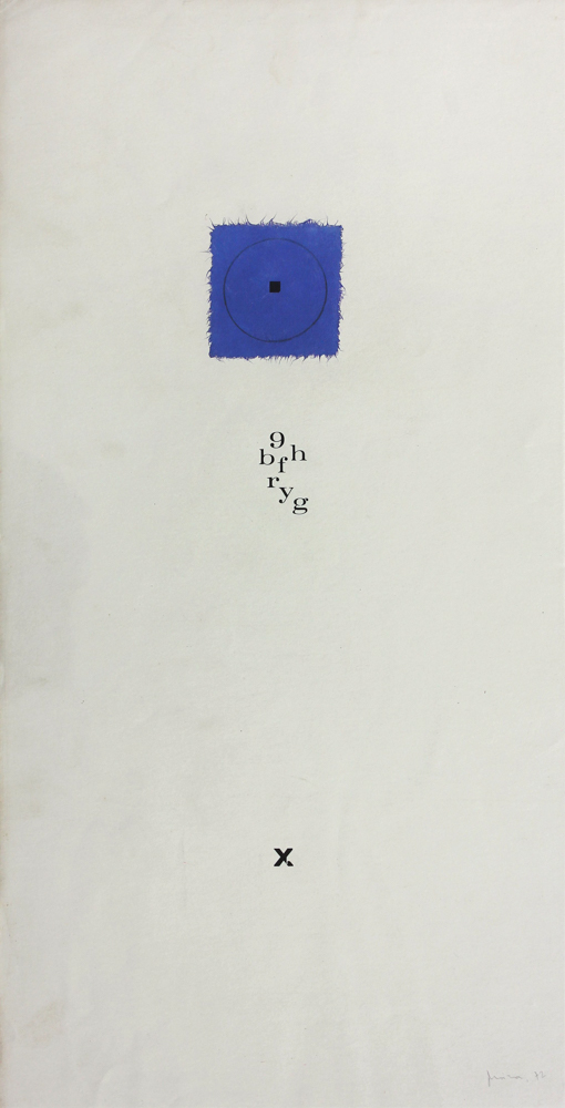 Mira Schendel - Sem título, série Toquinho P - 1972 - Letraset e papel artesanal tingido com ecoline sobre papel - Assinado canto inferior direito - 48 x 24 cm.
