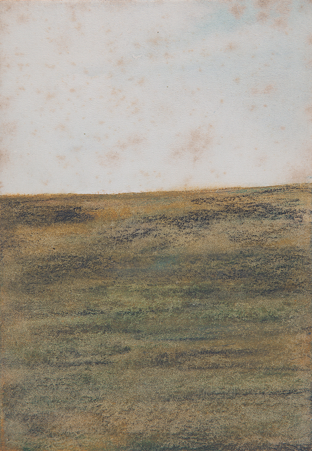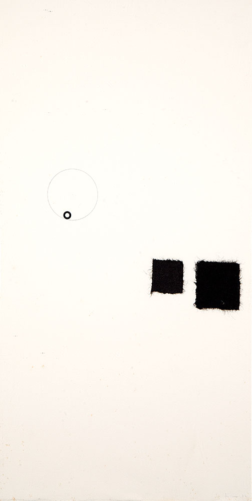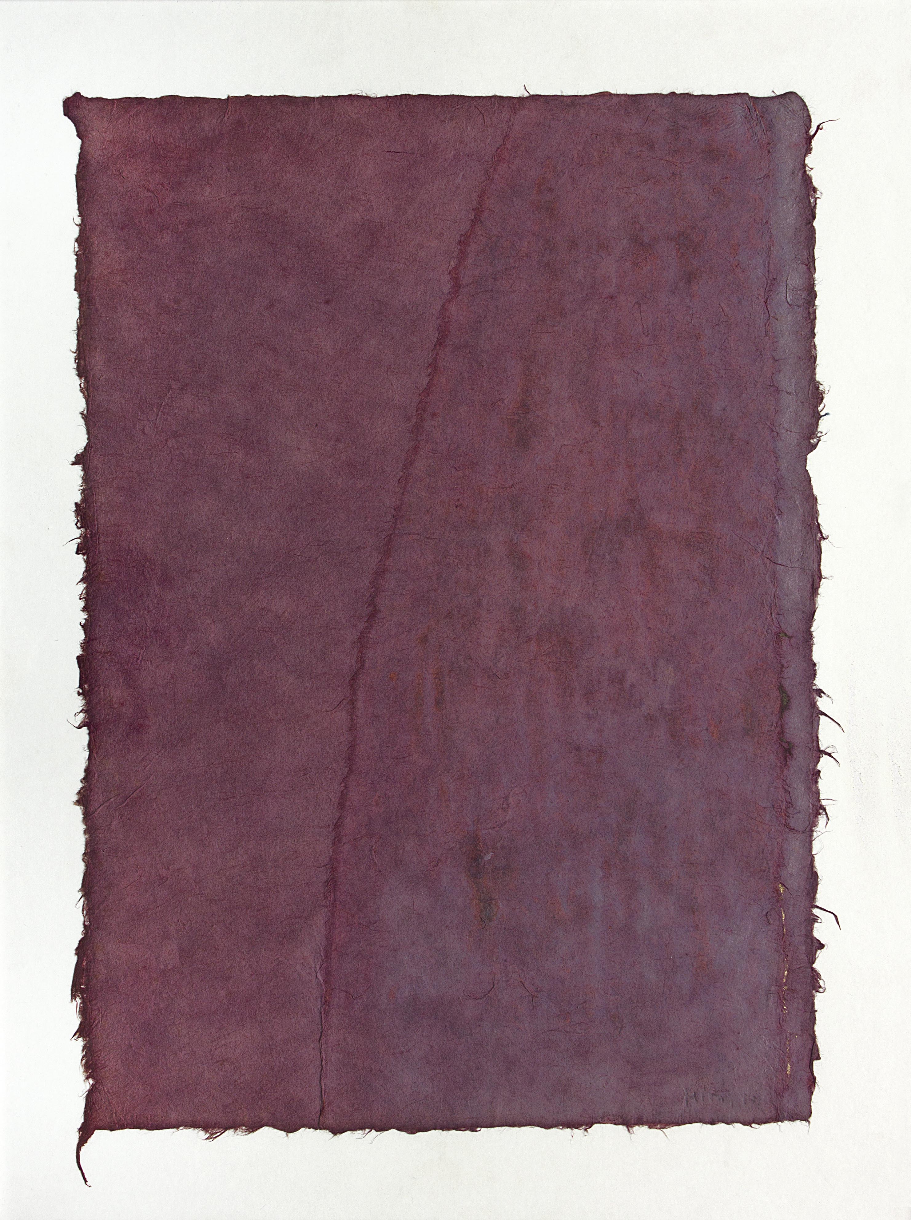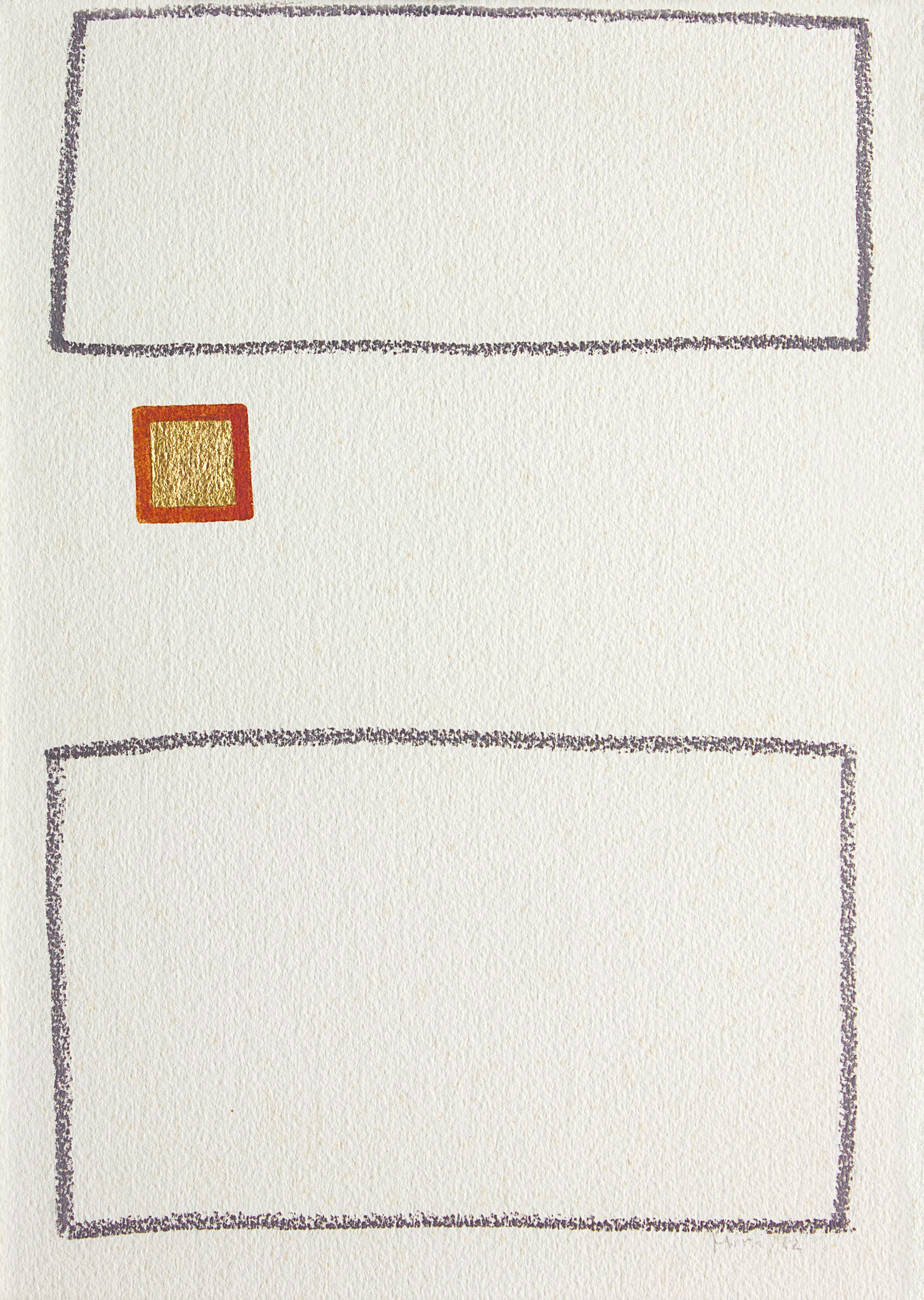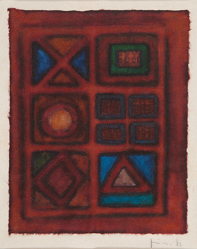 Mira Schendel - Sem título, série Toquinho P - 1972 - Letraset e papel artesanal tingido com ecoline sobre papel - Assinado canto inferior direito - 48 x 24 cm.