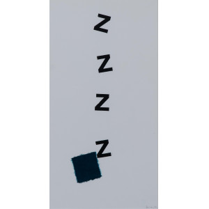 Mira Schendel - Sem título, série Toquinhos - 1972 - Letraset e papel artesanal tingido com ecoline sobre papel - Assinado canto inferior direito - 50 x 25 cm.