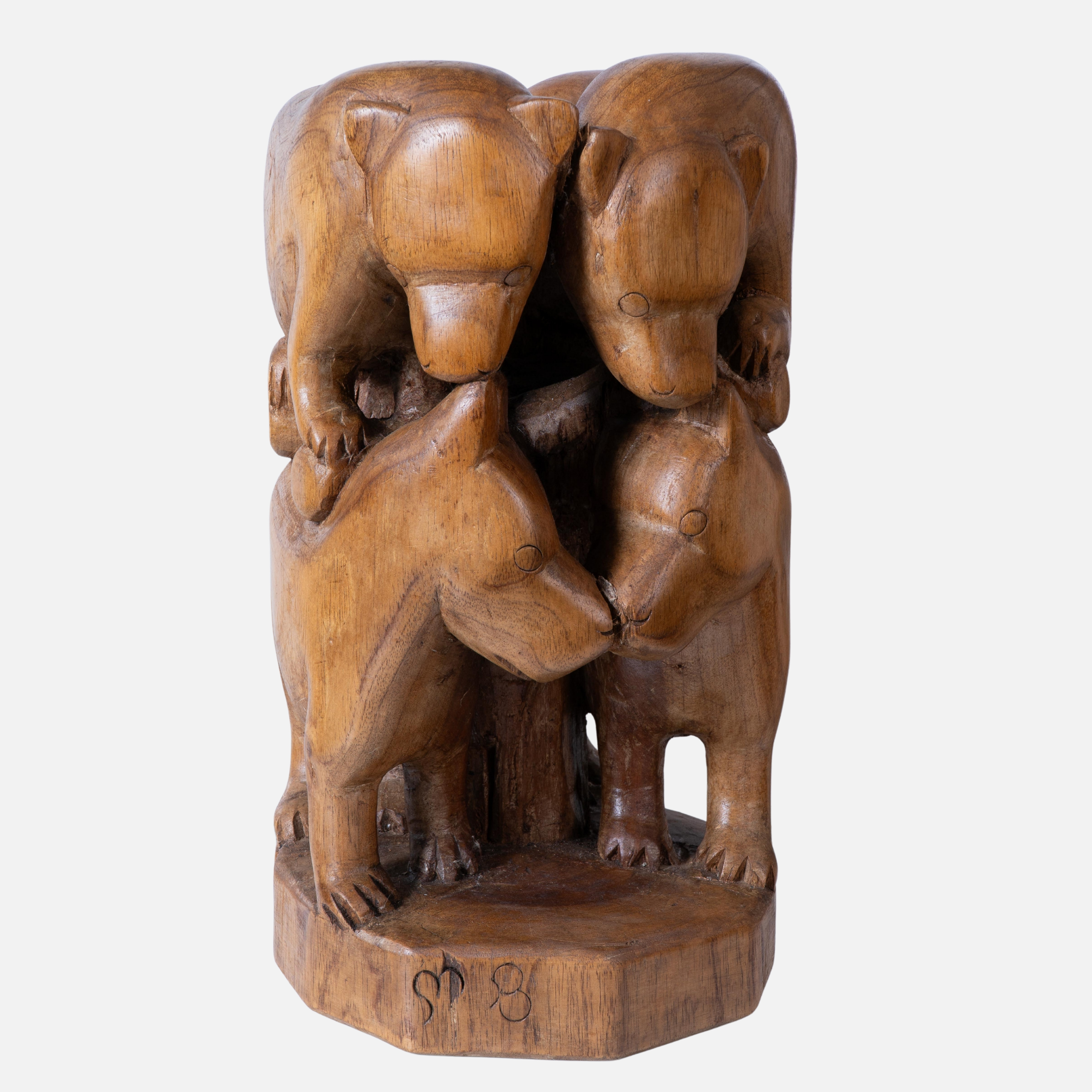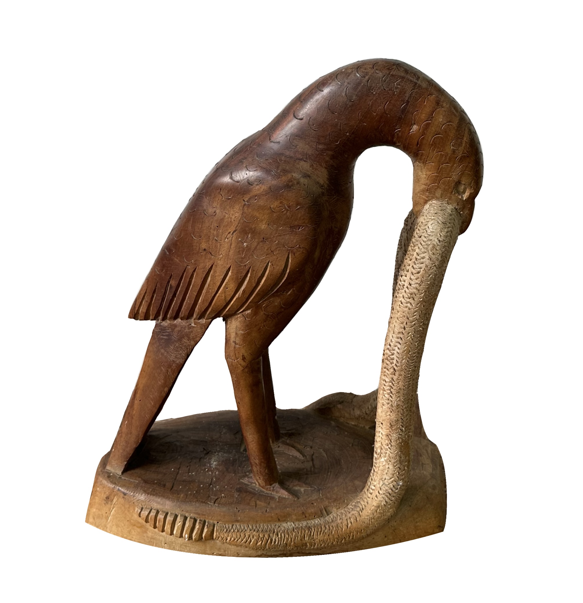 MIRAMAR BORGES - Ave e Cobra - - escultura em madeira - 48 x 36 x 20 cm. Assinada