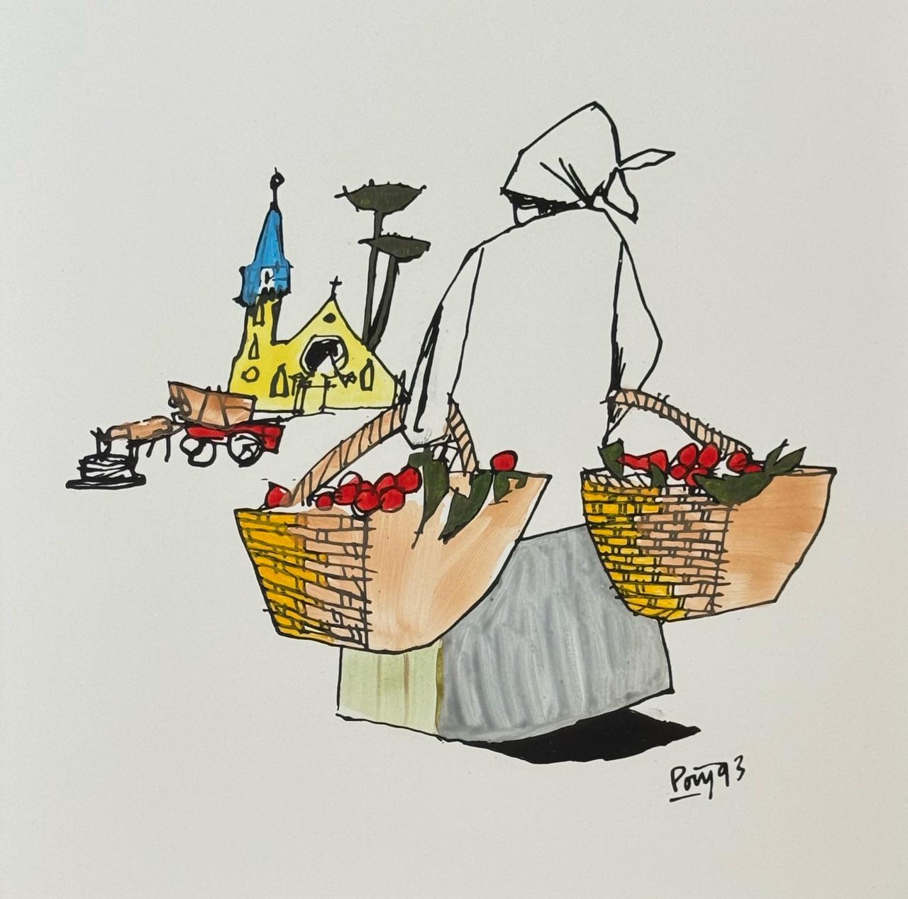 Poty Lazzarotto - Pintura sobre Cerâmica queimada - Medidas 40 x 30 cm - Assinado e datado 98 - Execução A. Lenzi
