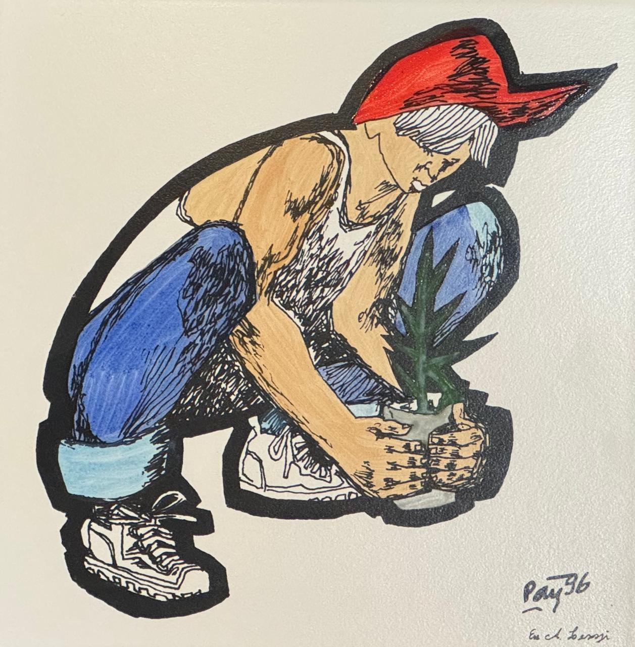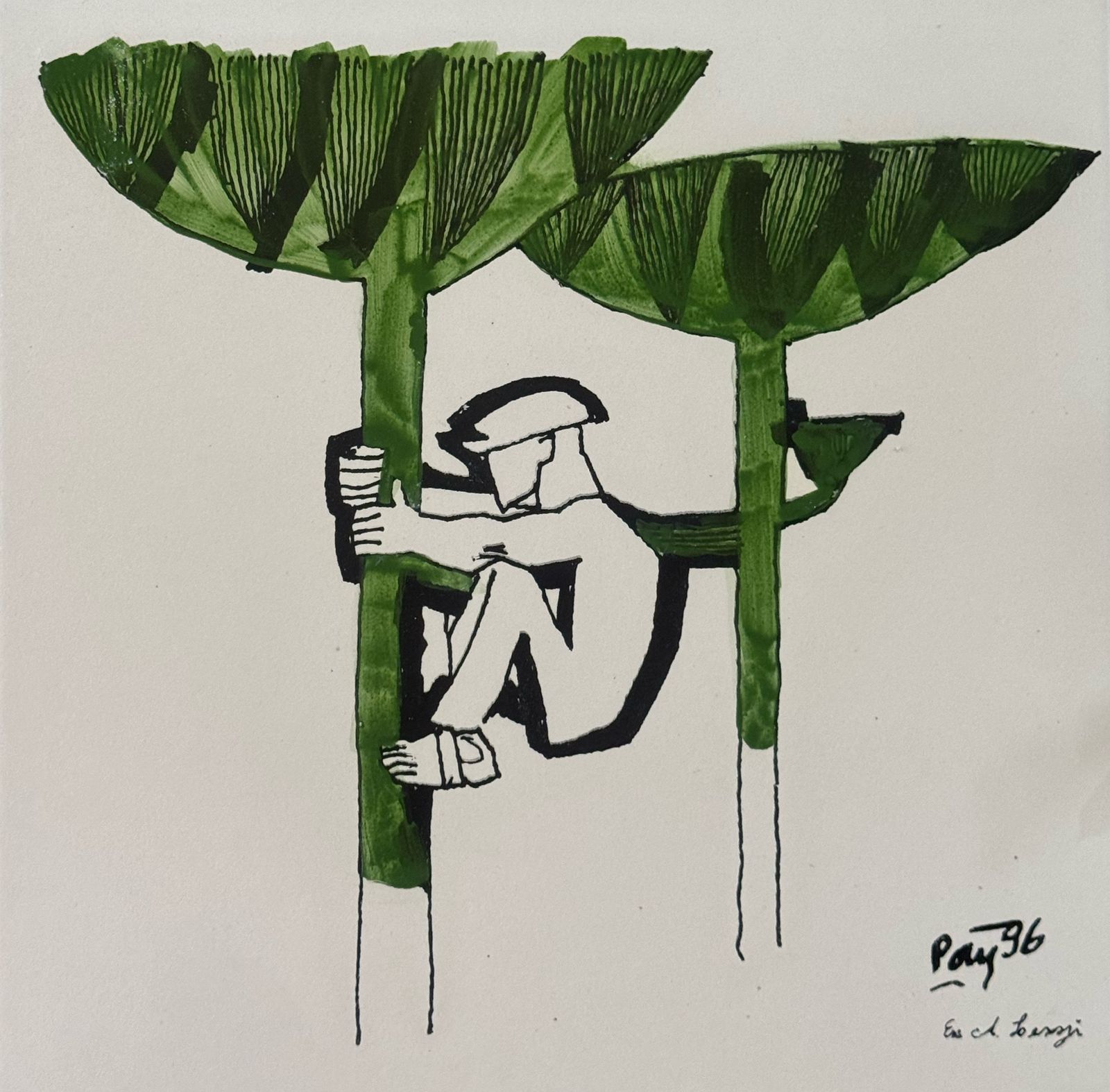 Poty Lazzarotto - Pintura sobre Cerâmica queimada - Medidas 33 x 33 cm - Assinado e datado 96 - Execução A. Lenzi