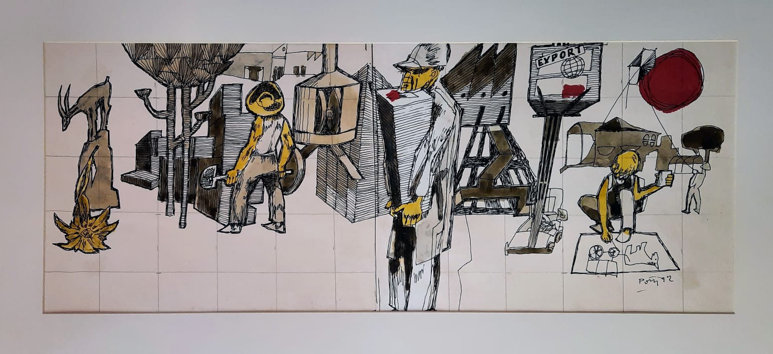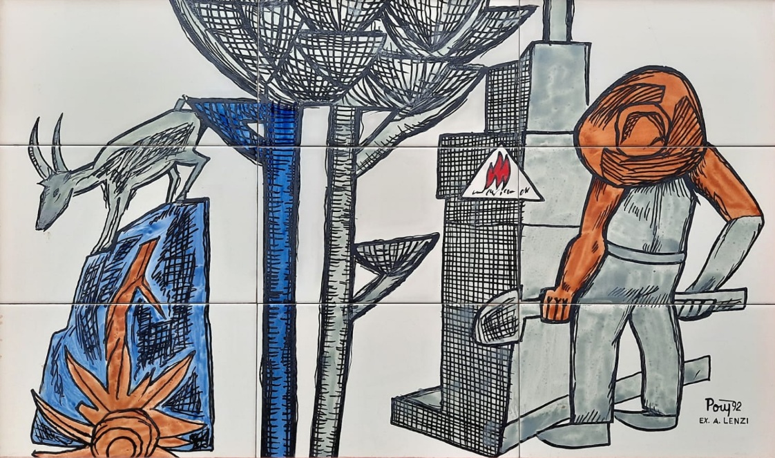 Poty Lazzarotto - Jogo de cartas - Painel de Azulejos - Medidas 75 x 120 cm - assinado e datado de 93 - ex. A. Lenzi