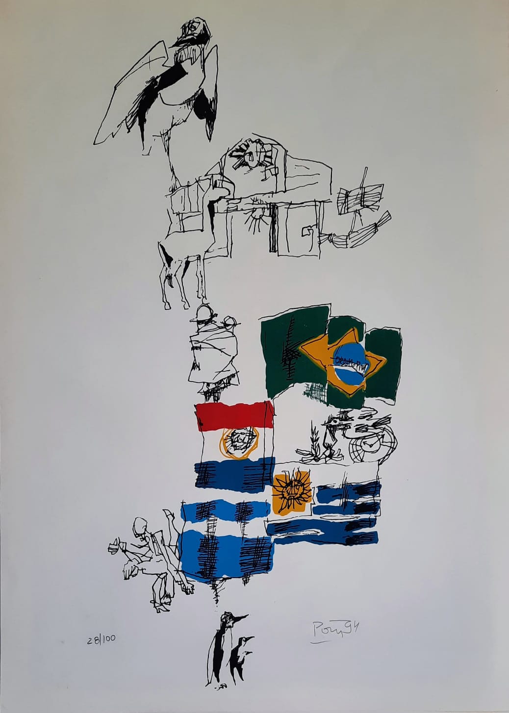 Poty Lazzarotto - Gravura em metal água forte - Medidas 21 x 21 cm - Assinada - Edição 14/25