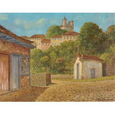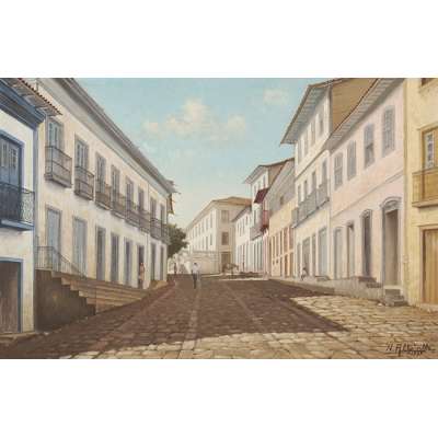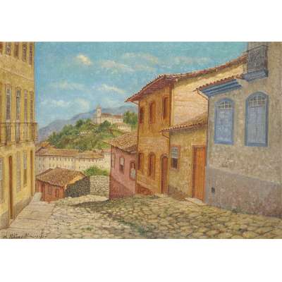 Nazareno Altavilla - Rua de Ouro Preto - 55 x 40 cm - Óleo sobre tela - Assinatura canto inferior esquerdo e Data 1970