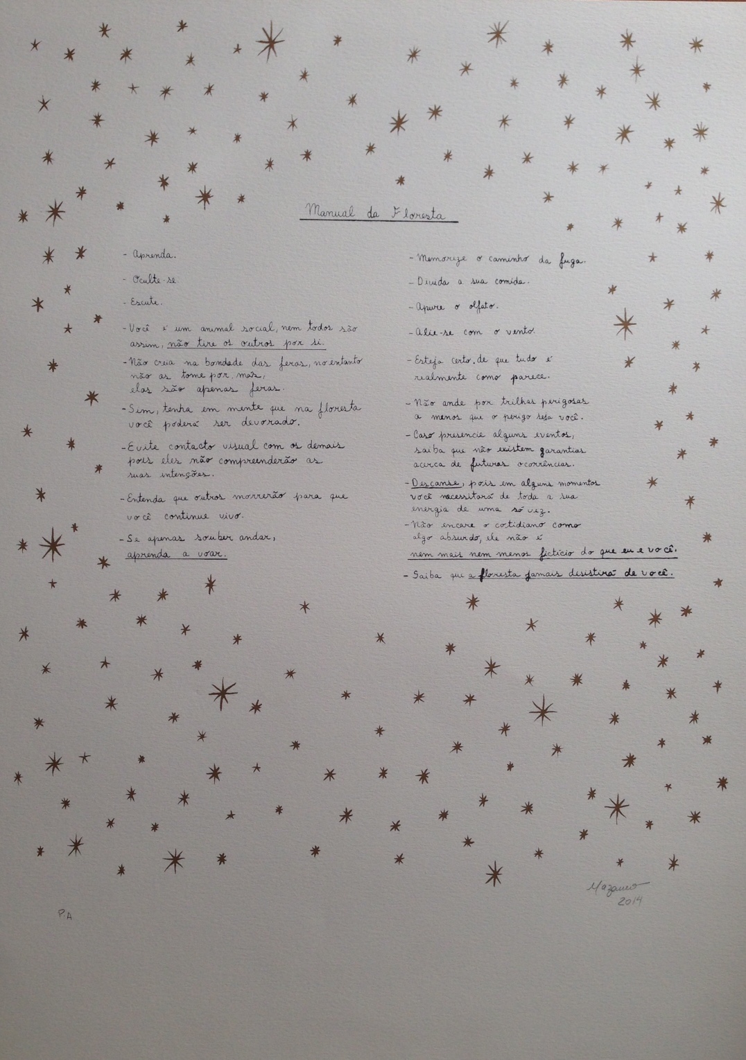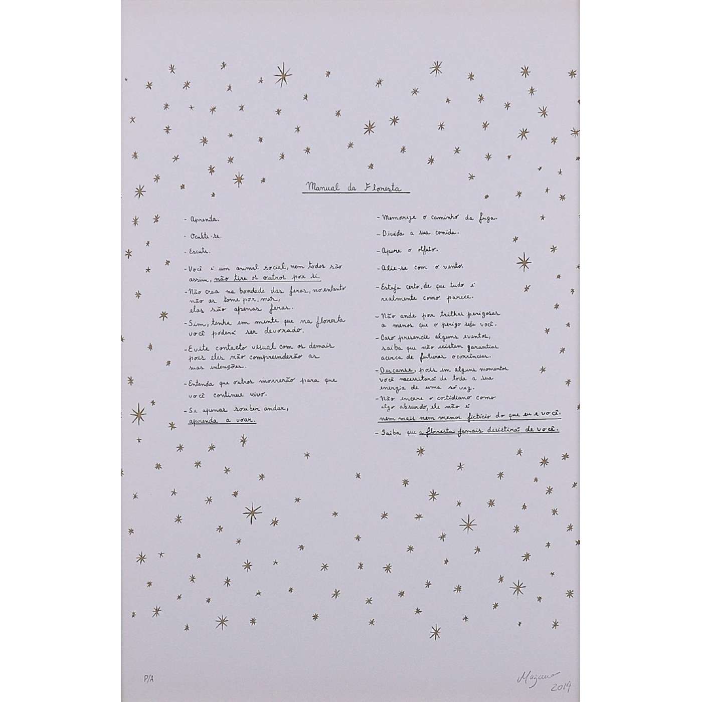 Nazareno Rodrigues Alves (São Paulo SP 1967). Desenhista, escultor e artista multimídia. Nascido em São Paulo, o artista passa a infância e a adolescência em Fortaleza, Ceará. Em 1987, muda-se para Brasília, onde conclui bacharelado em artes visuais pela Universidade de Brasília (UnB), em 1998. Em 1999, participa da edição itinerante Vertentes Contemporâneas - Rumos Visuais Itaú, em Fortaleza e Recife, Pernambuco. Nos dois anos seguintes, expõe no Instituto Itaú Cultural, São Paulo, e no Museu de Arte Moderna do Rio de Janeiro (MAM/RJ), dentro do mesmo programa.