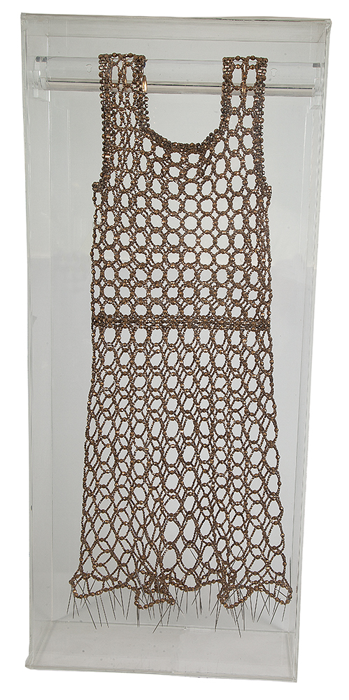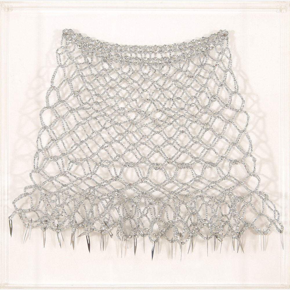 No final da década de 1990, a artista começa a agregar metais, como filetes de aço, cobre e latão, aos trabalhos em borracha. Passa a confeccionar peças com objetos que não podem ser tocados, unindo miçangas ou cristais de vidro a agulhas, lâminas de bisturis ou de barbear e anzóis, criando com eles adornos e vestimentas. Inicia também as pesquisas com um novo material, o acrílico cristal, projetando objetos como bancos ou berços, aos quais agrega instrumentos cortantes ou perfurantes.