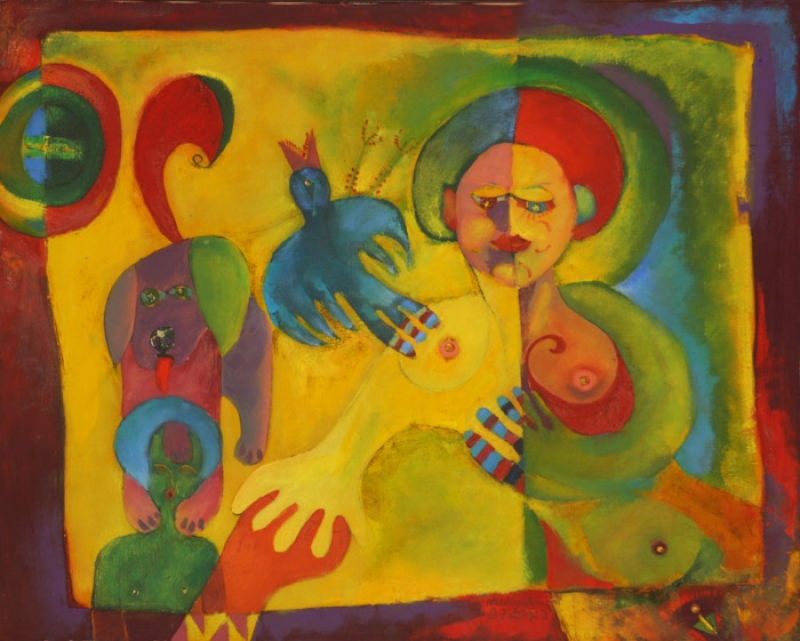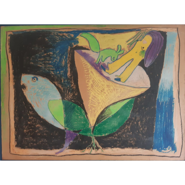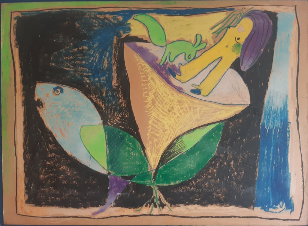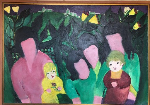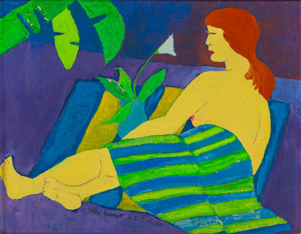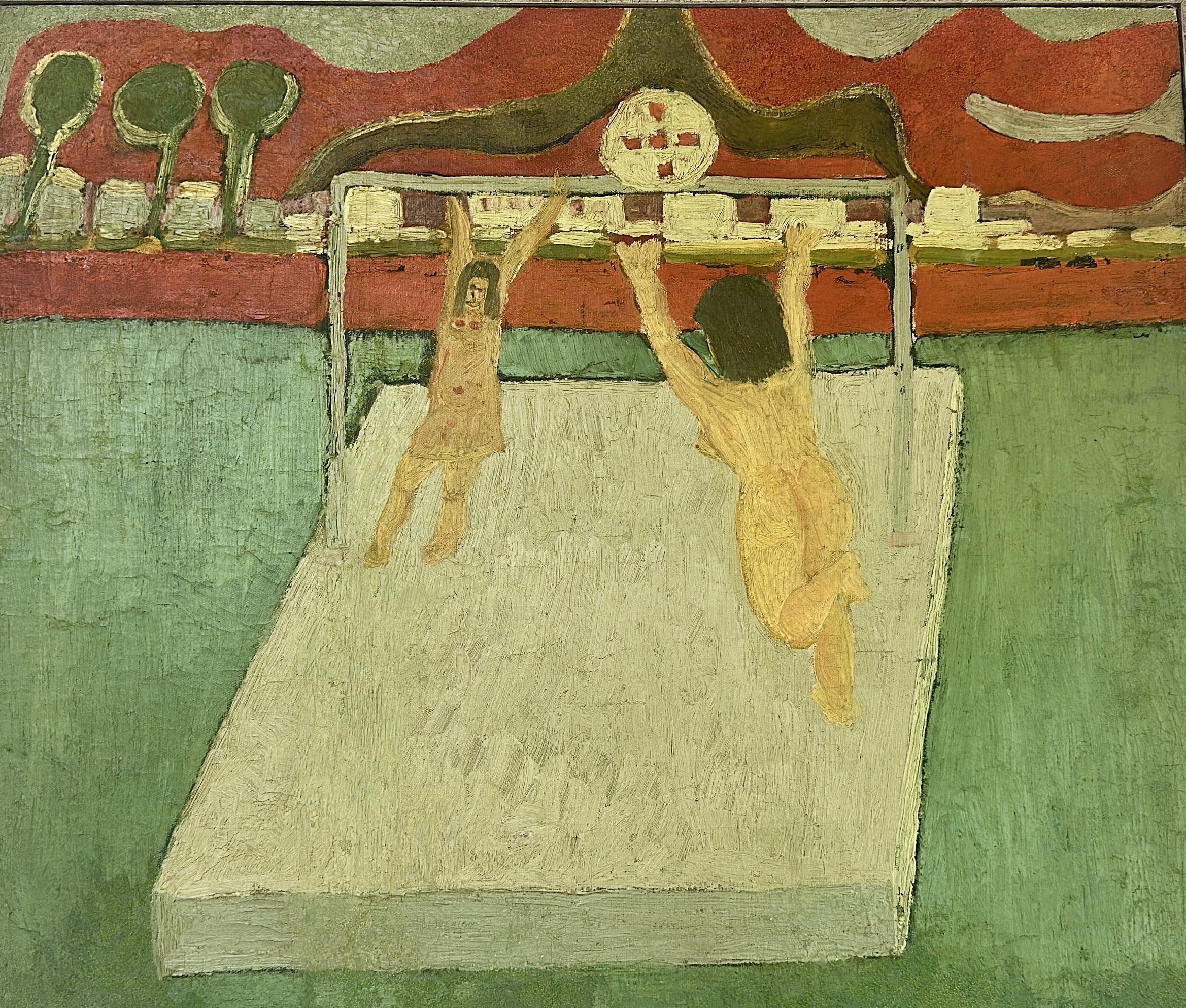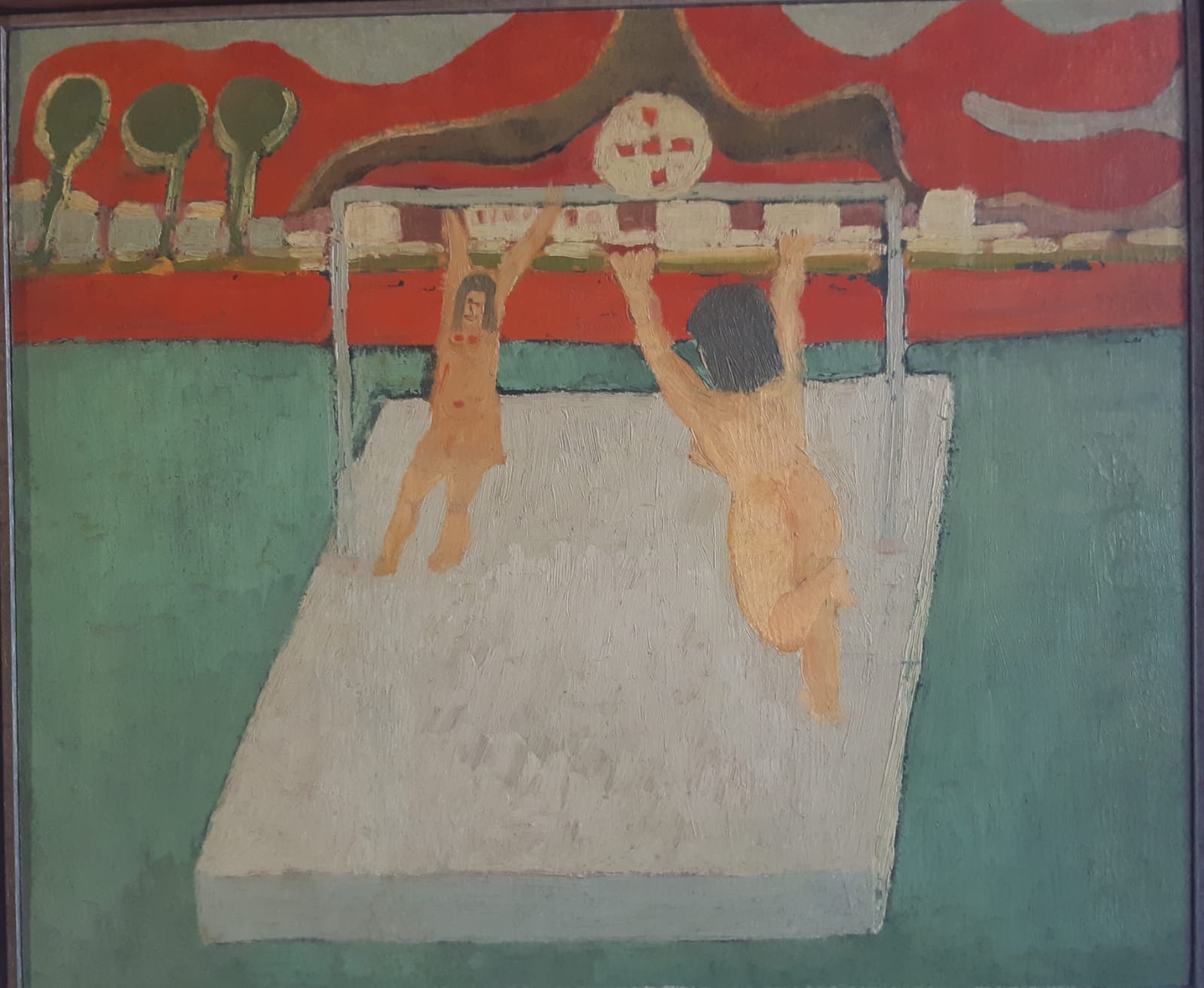 Nello Nuno - Meninas jogando vôlei - 54 x 64 cm - Óleo sobre tela - Não assinado e Década de 60 - Proveniente da coleção da família