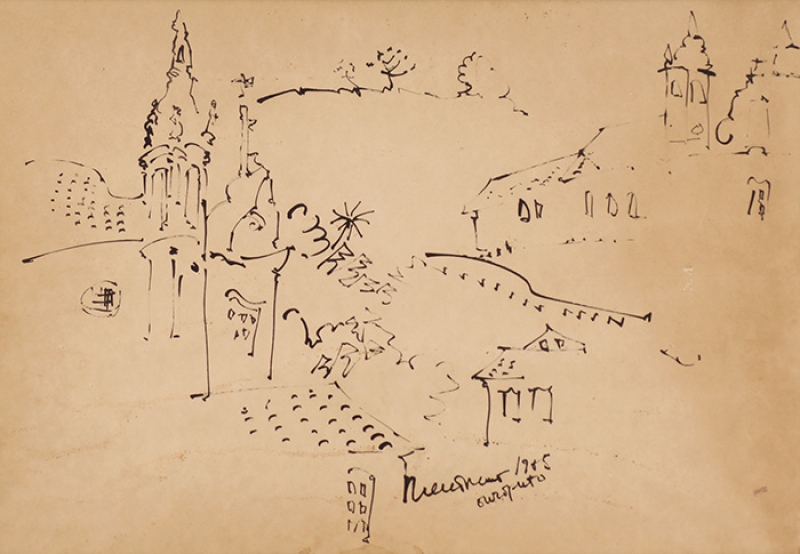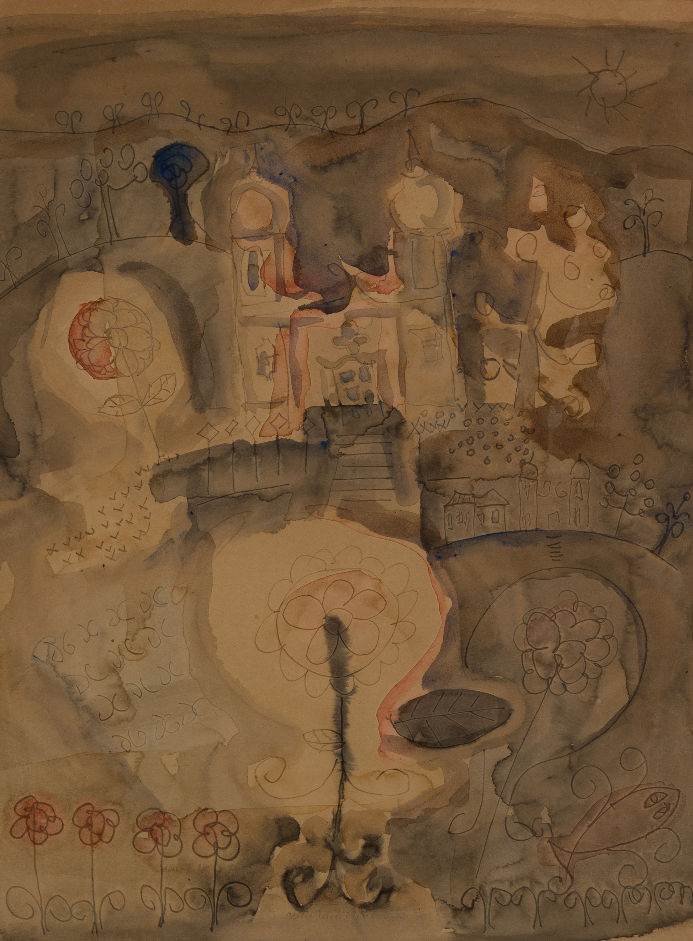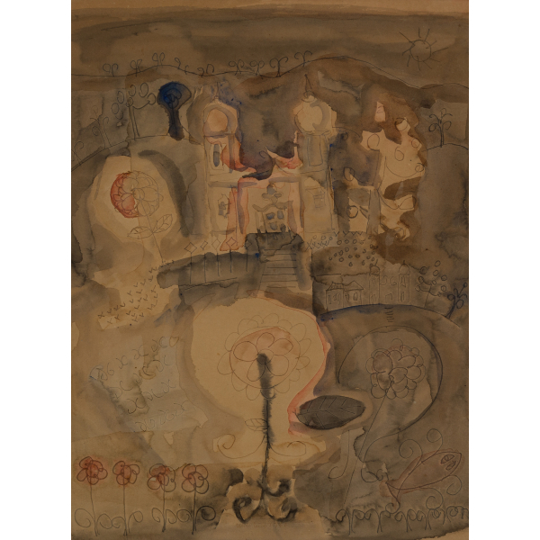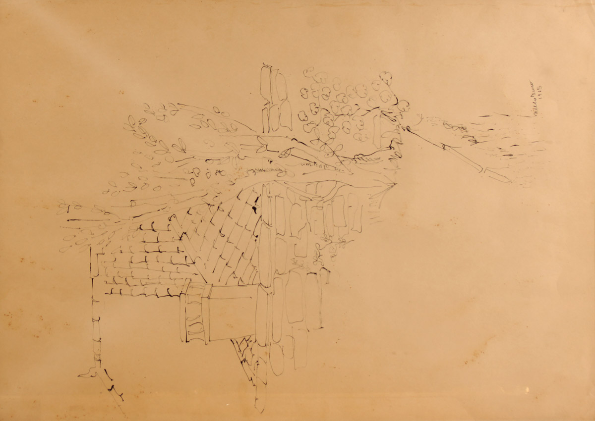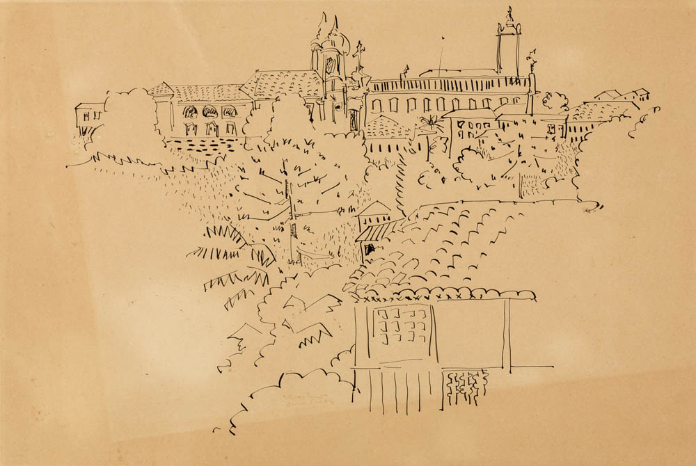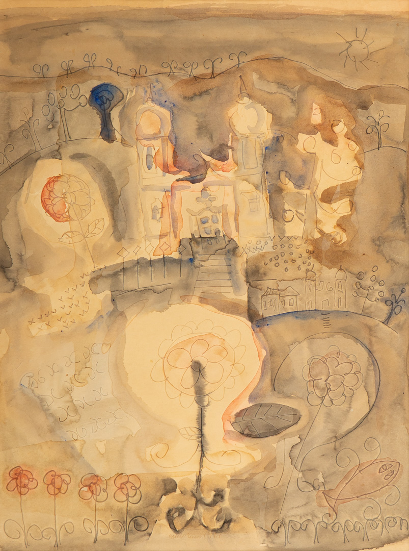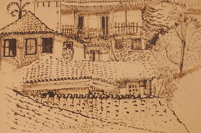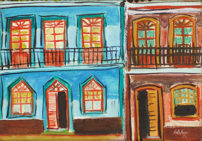 Nello Nuno - Janela do meu atelier em Ouro Preto – 44 x 32,5 cm – Aquarela – Assinatura meio inferior e Data 1966