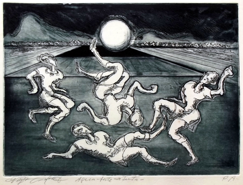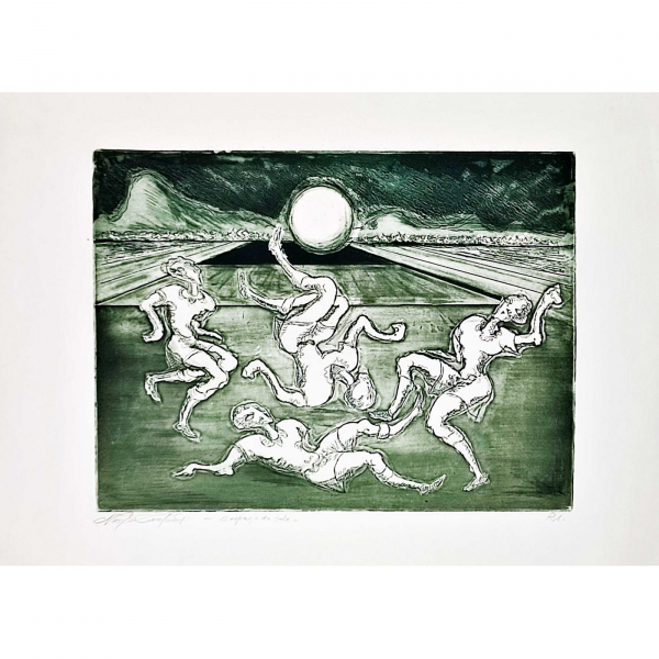 NEWTON CAVALCANTI - Gravura em metal, água forte e água tinta. Assinada: CIE, edição: PA, título; `O espaço da bola`. Medidas: ME: 41 x 57cm, MI: 29 x 39cm.