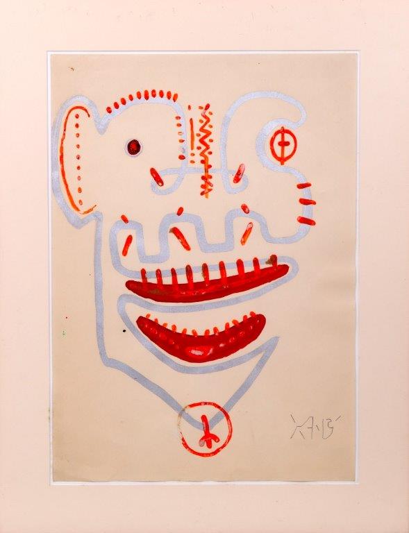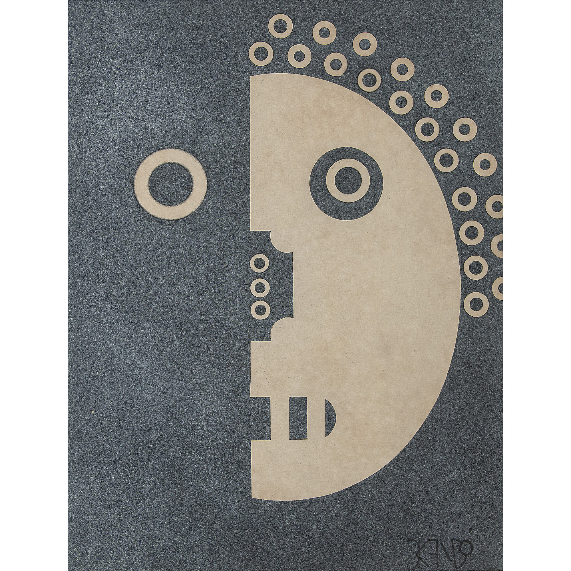 Niobe Xandó - Máscara. Spray sobre papel, 48x48 cm, 1972, A.C.I.D. e V. Com moldura