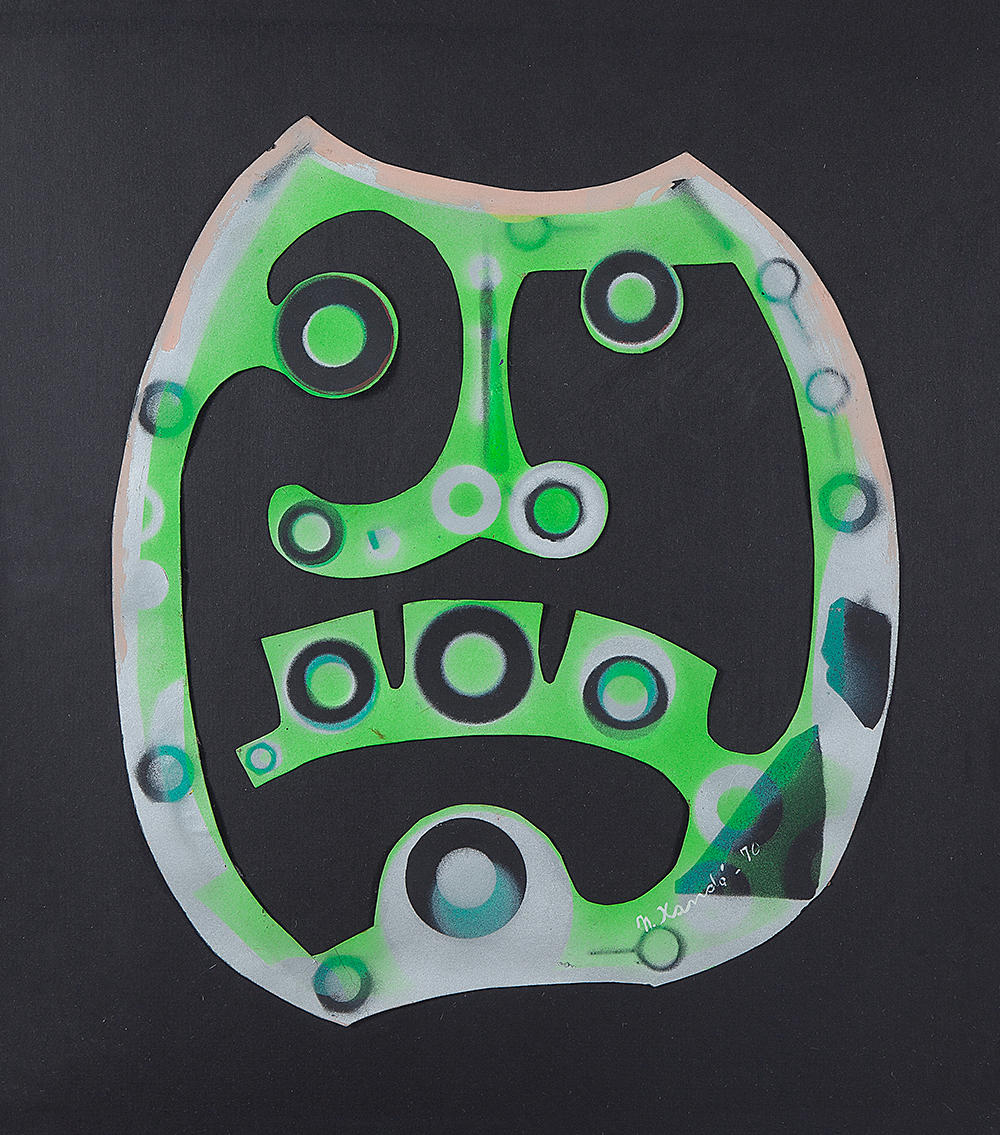 Niobe Xandó - Máscara. Spray sobre papel, 48x48 cm, 1972, A.C.I.D. e V. Com moldura