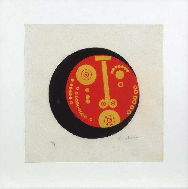Niobe Xandó - Máscara. Spray sobre papel, 48x48 cm, 1972, A.C.I.D. e V. Com moldura