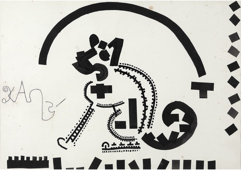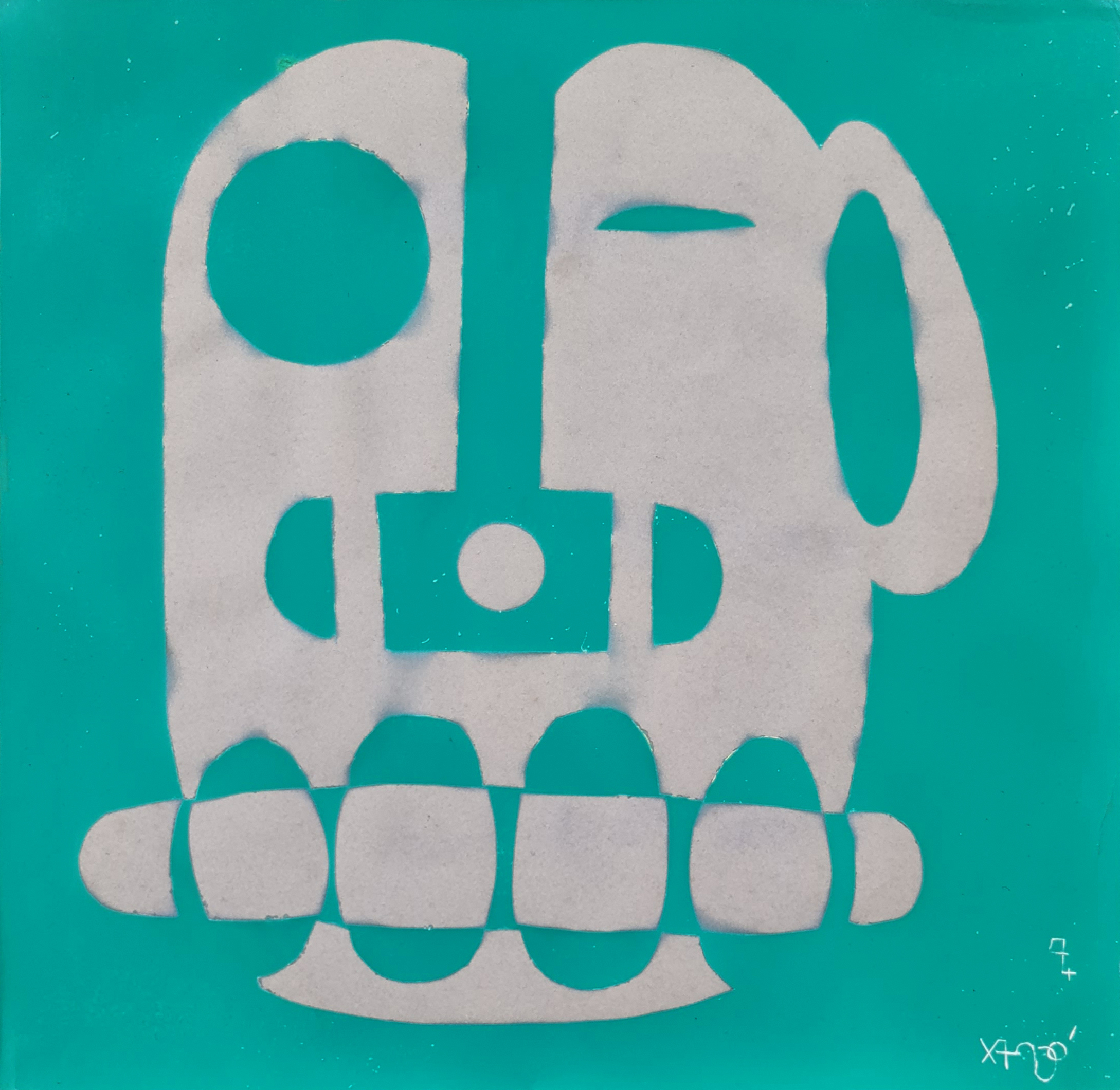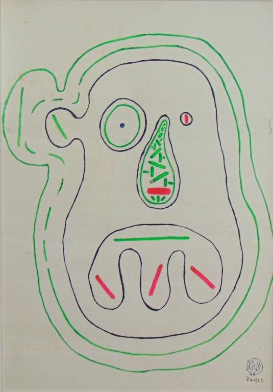 Niobe Xandó - Máscara. Spray sobre papel, 48x48 cm, 1972, A.C.I.D. e V. Com moldura