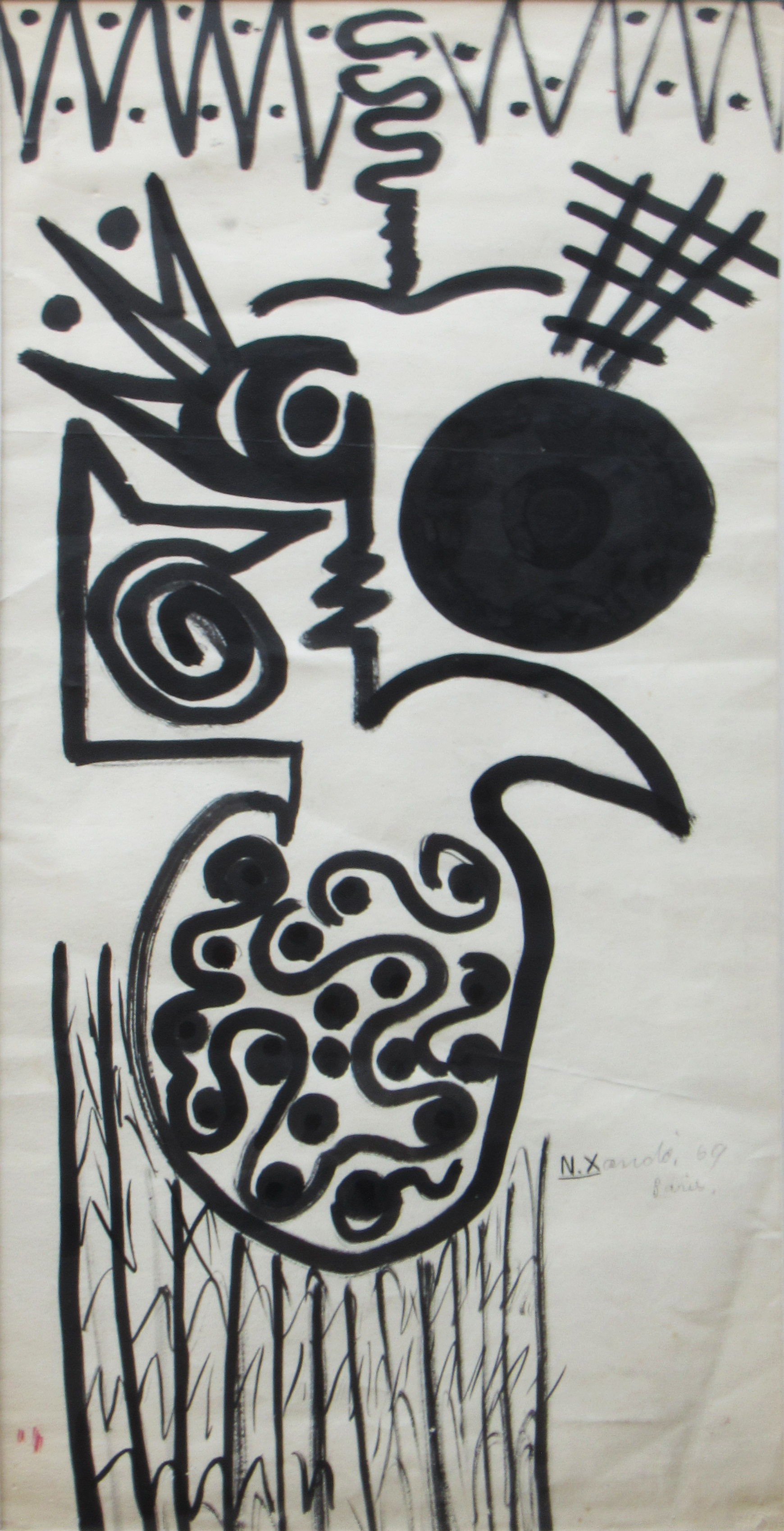 Niobe Nogueira Xandó Bloch (Campos Novos do Paranapanema, atual Campos Novos Paulista SP 1915 - São Paulo SP 2010). Pintora, desenhista e escritora. Autodidata. Vive a infância e a adolescência no interior de São Paulo, muda-se para a capital em 1932. Casa-se aos 16 anos com João Baptista Ribeiro Rosa, destacado militante, e passa a frequentar os locais de reuniões do Partido Comunista. Inicia sua carreira como artista plástica em 1947. Nesse ano, conhece os pintores Yoshiya Takaoka(1909-1978) e Geraldo de Barros (1923 - 1998) no ateliê do professor e artista Raphael Galvez (1895 - 1961). Faz sua primeira exposição individual em 1953, em São Paulo, na Livraria das Bandeiras, na Praça da República. Separada do primeiro marido, casa-se novamente com o intelectual tcheco Alexandre Bloch, por intermédio de quem se torna amiga de Vilém Flusser, que escreve artigos sobre sua obra de Xandó. Durante o ano de 1957, viaja pelas cidades de Madri, La Coruña e Paris. Seu trabalho ganha destaque em 1965, na 8ª Bienal Internacional de São Paulo. De volta ao Brasil, muda-se com o marido para Salvador. O casal segue para a Europa em 1968, com períodos em Paris, Londres e Estocolmo. Regressam ao Brasil em 1971, vivendo em São Paulo até 1980. Xandó viaja a Nova York em 1981 e 1983, depois regressando em definitivo ao Brasil. Entre as exposições em que se destaca estão a 10ª Bienal Internacional de São Paulo, de 1969, onde tem sua obra apresentada na sala especial de Artes Mágica, Fantástica e Surrealista, e a 1ª Bienal Latino-Americana de São Paulo, realizada em 1978, onde seu trabalho representa a influência das culturas africana e indígena na arte brasileira.