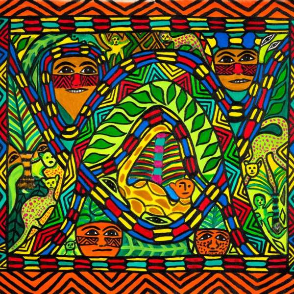 O curador Guilherme Giufrida explica que muita das obras nascem de rituais com a ayahuasca: "é uma prática muito ancestral, muito basilar da sociedade Huni Kuin. Ali ela tem um sentido ritual muito forte. Essas imagens, essas cores, que eles vêm durante o ritual, são depois transpostas para o papel e para as telas e também, no caso aqui, para a pintura mural".