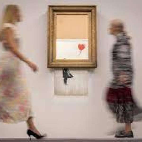 Assim que o martelo foi batido ao lance mais elevado, um mecanismo escondido na moldura destruiu a parte inferior da tela, que representa uma menina soltando um balão em forma de coração.