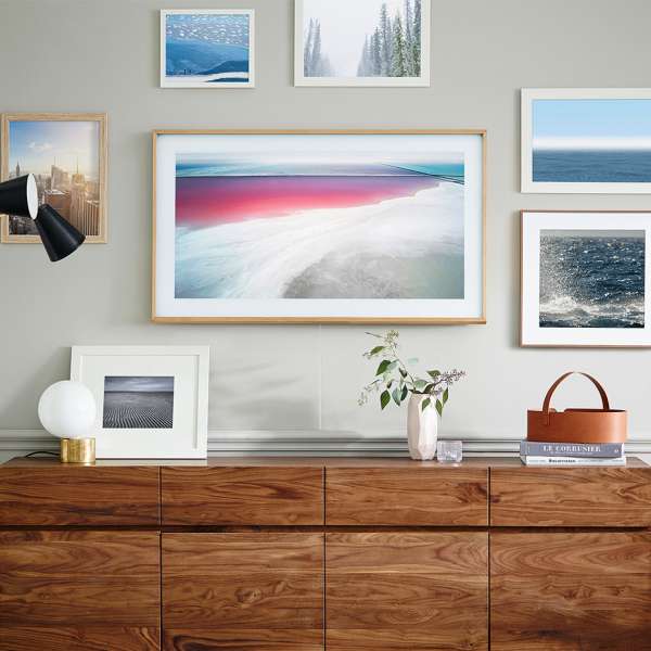 Quando a TV está desligada, o modo arte é ativado, que pode ser customizado com o material de artistas, os próprios trabalhos do consumidor ou até mesmo imagens pessoais. O modo arte traz três opções instaladas: Coleção Samsung, The Frame Store e Minha Coleção. A TV também suporta molduras, com três opções de cores: madeira, madeira clara e branca.