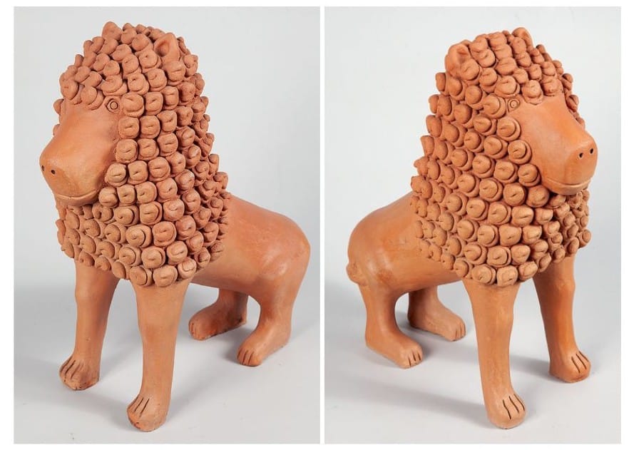 Nuca de Tracunhaém - Leão - Escultura em argila - Assinada - 37 x 37 x 15 cm.