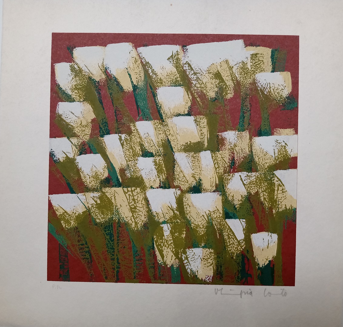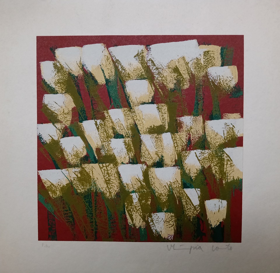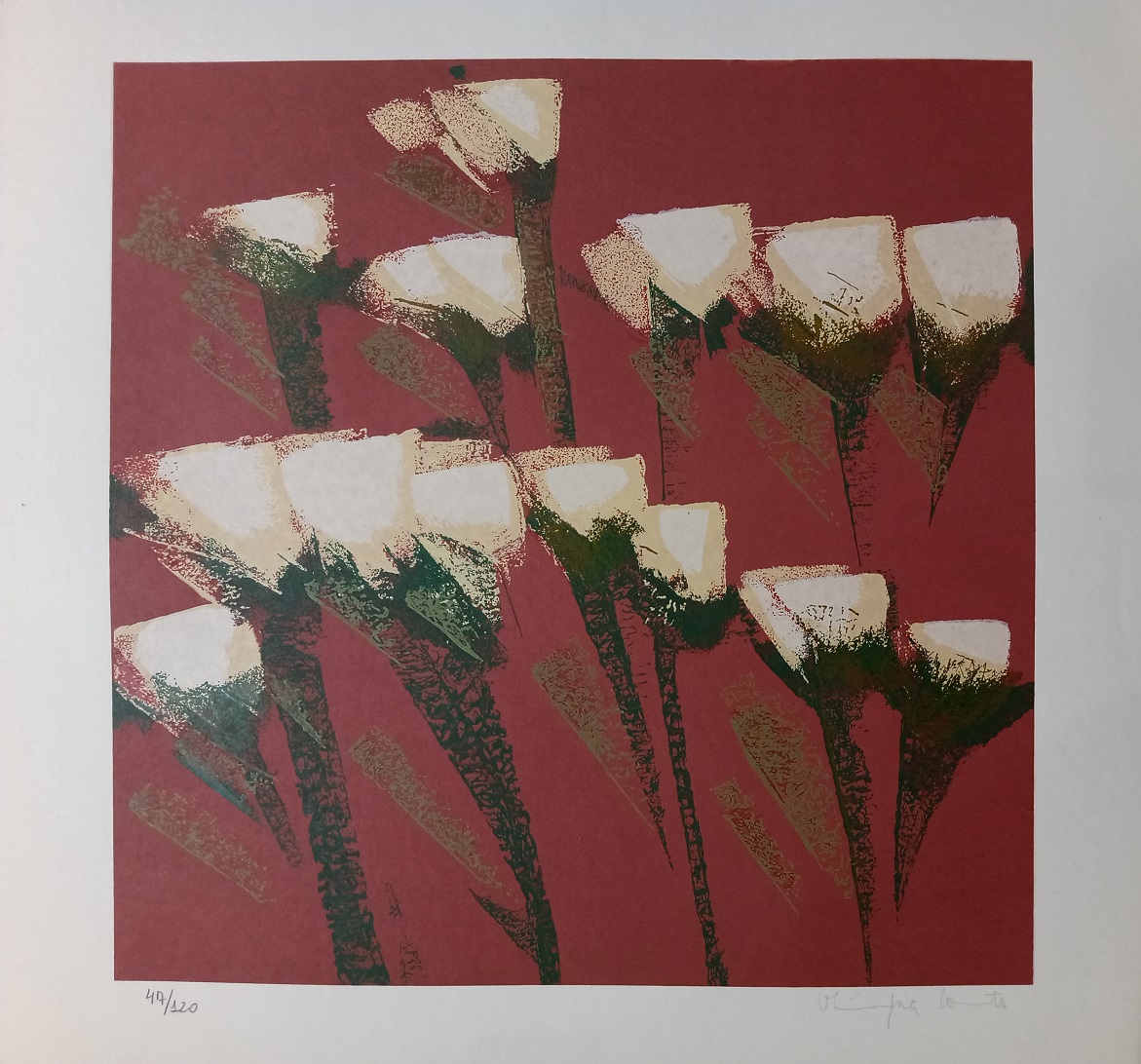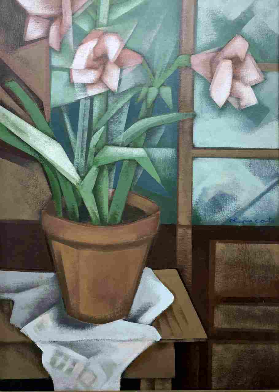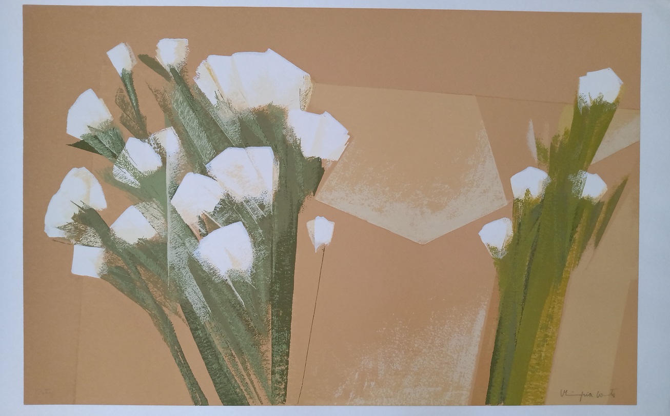 Olímpia Couto (Estrela do Indaiá, MG, 1947). Pintora, muralista e gravadora. Estuda na Escola de Belas Artes da Universidade Federal de Minas Gerais, em Belo Horizonte. Como assistente da gravurista Yara Tupynambá (1932) , executa os murais GênesisA Criação do Mundo, na Igreja de Ferros, MG, e Guerra e Paz, na Câmara Municipal de Belo Horizonte. Em 1971, recebe o 1º prêmio de gravura no Salão do Artista Plástico Mineiro. Dois anos depois, realiza sua primeira exposição individual, em Belo Horizonte. Em 1979, seu trabalho é destacado em sala especial na Bienal Nacional, em São Paulo. Por volta de 1982, executa painéis para a Associação dos Servidores e para a Prefeitura da UFMG. Dez anos depois, na coletiva Eco Art, paralela ao encontro Eco 92, ganha a medalha de ouro. Em 1997, recebe o título de Personalidade Setor de Artes do Jornal MG Turismo, além de ganhar o Troféu Alto São Francisco.