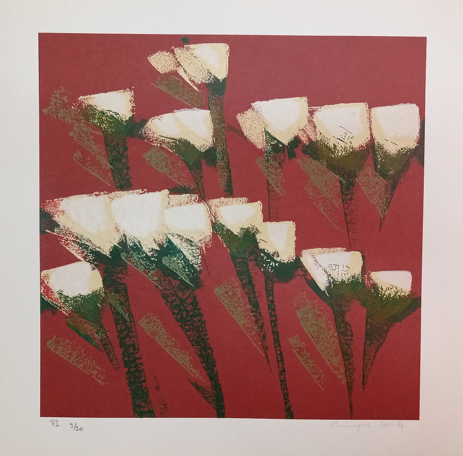 Olímpia Couto (Estrela do Indaiá, MG, 1947). Pintora, muralista e gravadora. Estuda na Escola de Belas Artes da Universidade Federal de Minas Gerais, em Belo Horizonte. Como assistente da gravurista Yara Tupynambá (1932) , executa os murais GênesisA Criação do Mundo, na Igreja de Ferros, MG, e Guerra e Paz, na Câmara Municipal de Belo Horizonte. Em 1971, recebe o 1º prêmio de gravura no Salão do Artista Plástico Mineiro. Dois anos depois, realiza sua primeira exposição individual, em Belo Horizonte. Em 1979, seu trabalho é destacado em sala especial na Bienal Nacional, em São Paulo. Por volta de 1982, executa painéis para a Associação dos Servidores e para a Prefeitura da UFMG. Dez anos depois, na coletiva Eco Art, paralela ao encontro Eco 92, ganha a medalha de ouro. Em 1997, recebe o título de Personalidade Setor de Artes do Jornal MG Turismo, além de ganhar o Troféu Alto São Francisco.