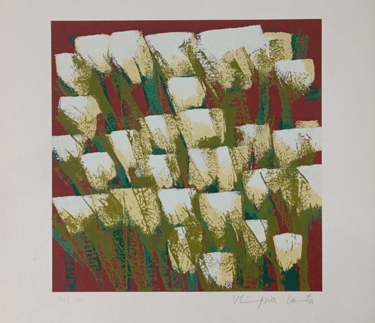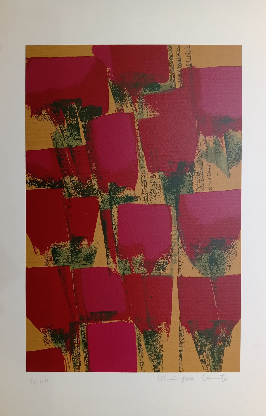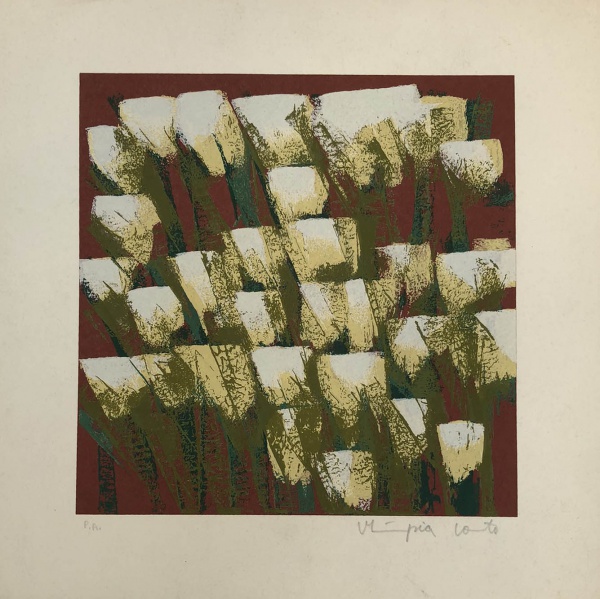 Olímpia Couto (Estrela do Indaiá, MG, 1947). Pintora, muralista e gravadora. Estuda na Escola de Belas Artes da Universidade Federal de Minas Gerais, em Belo Horizonte. Como assistente da gravurista Yara Tupynambá (1932) , executa os murais GênesisA Criação do Mundo, na Igreja de Ferros, MG, e Guerra e Paz, na Câmara Municipal de Belo Horizonte. Em 1971, recebe o 1º prêmio de gravura no Salão do Artista Plástico Mineiro. Dois anos depois, realiza sua primeira exposição individual, em Belo Horizonte. Em 1979, seu trabalho é destacado em sala especial na Bienal Nacional, em São Paulo. Por volta de 1982, executa painéis para a Associação dos Servidores e para a Prefeitura da UFMG. Dez anos depois, na coletiva Eco Art, paralela ao encontro Eco 92, ganha a medalha de ouro. Em 1997, recebe o título de Personalidade Setor de Artes do Jornal MG Turismo, além de ganhar o Troféu Alto São Francisco.