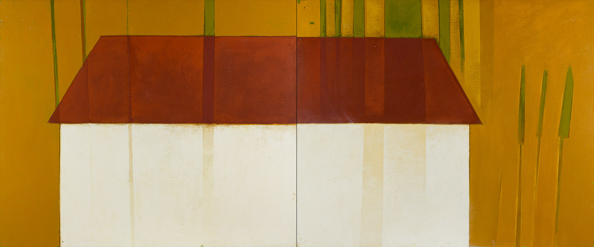 Olímpia Couto - Casario – 100 x 240 cm – Vinil Encerado sobre Tela sobre Eucatex – Ass. Verso e Dat. 1991