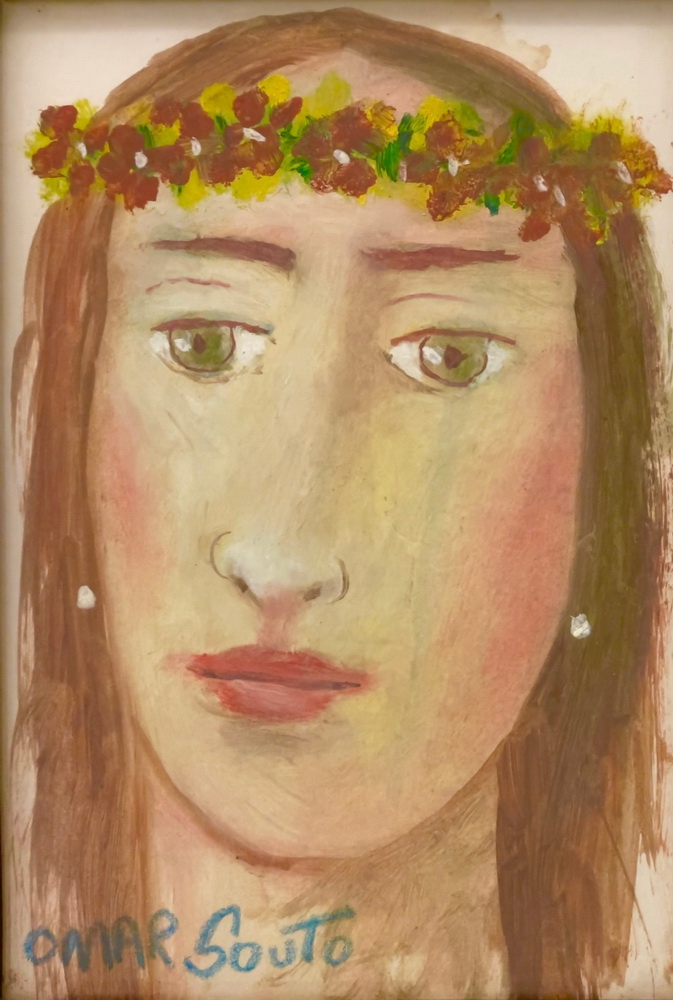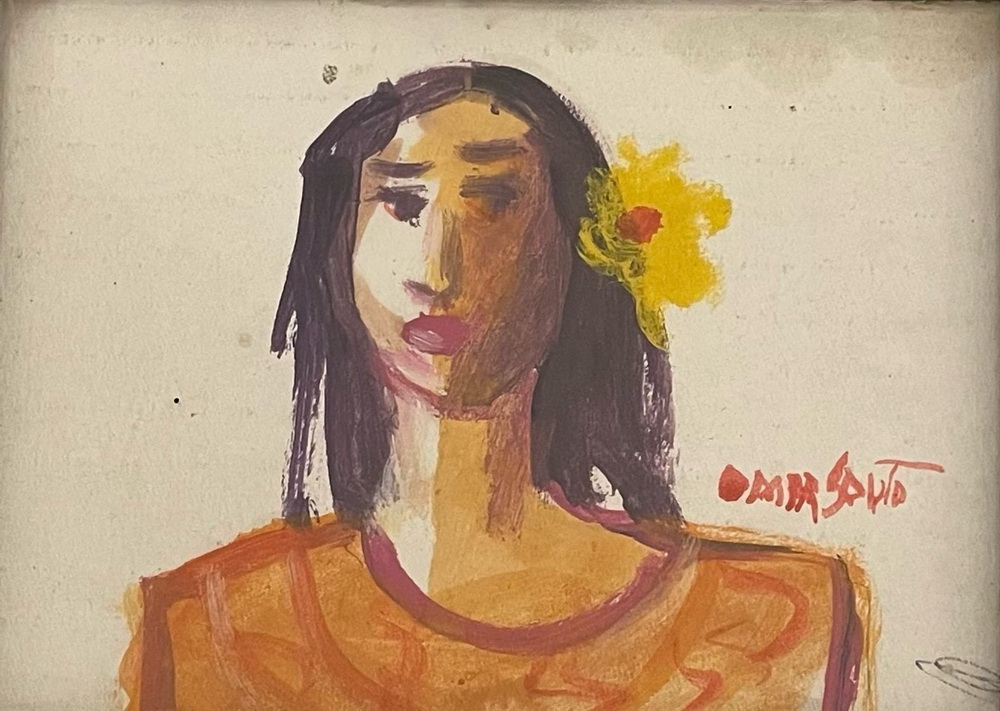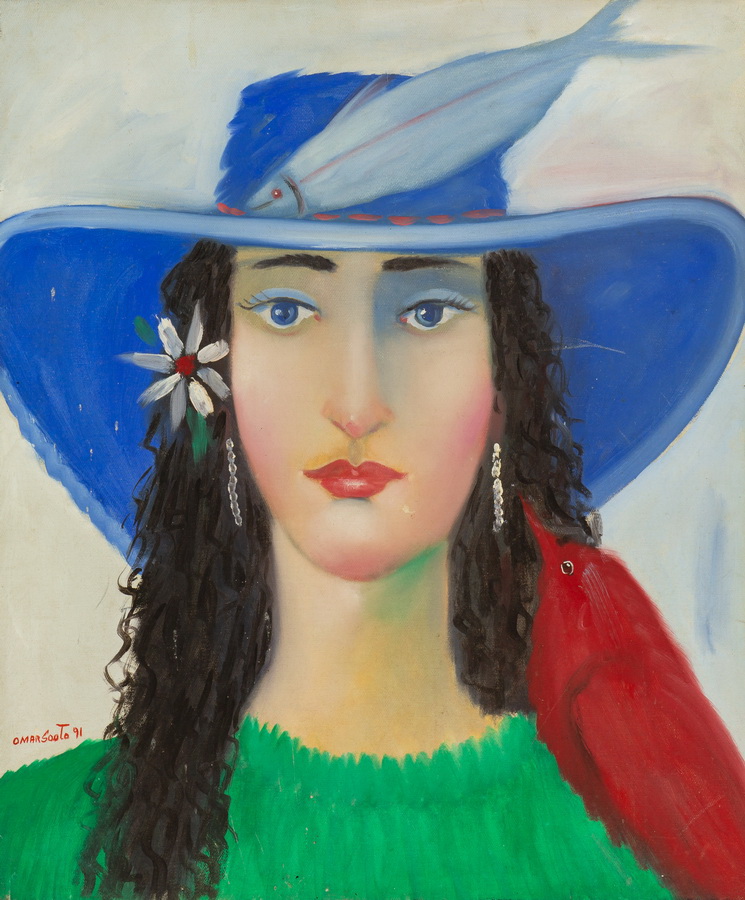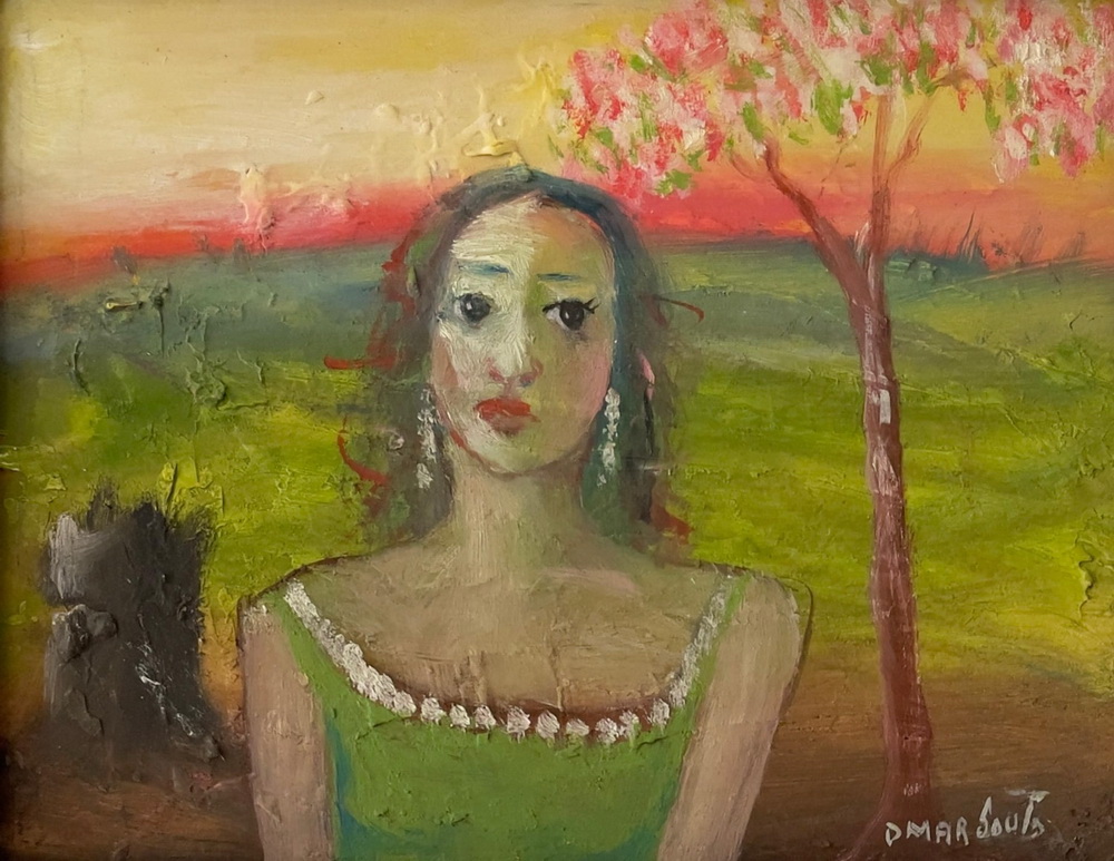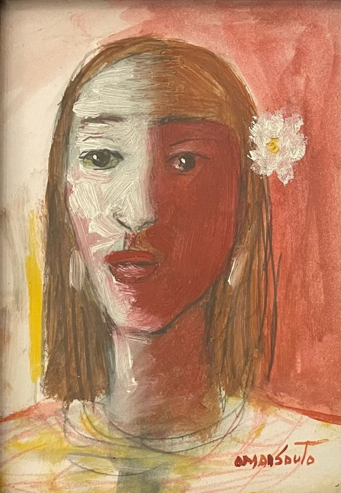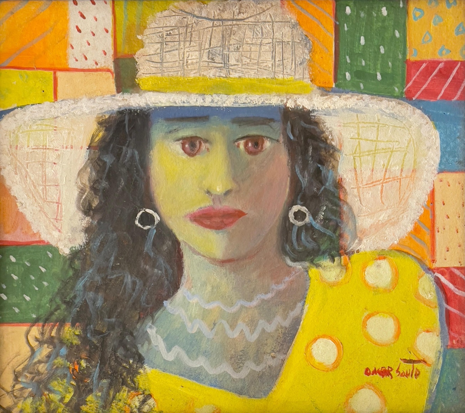 Omar Souto - A musa de chapéu - 25,5 x 29 cm - Óleo sobre cartão - Assinatura canto inferior direito