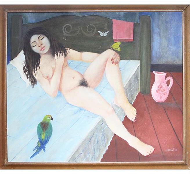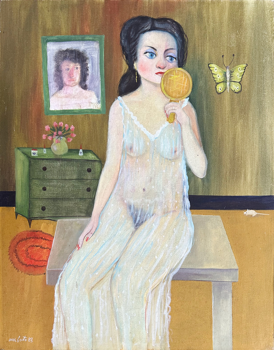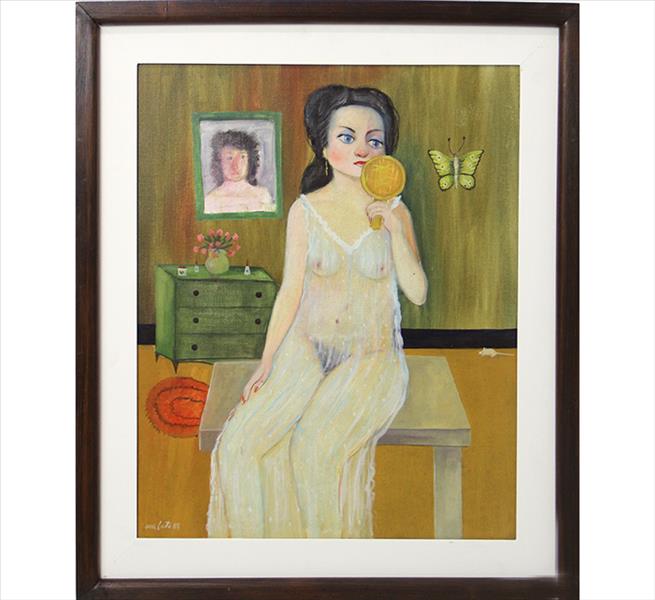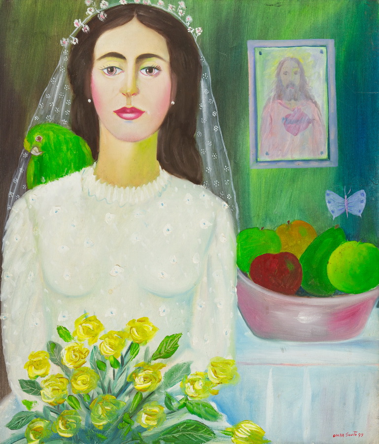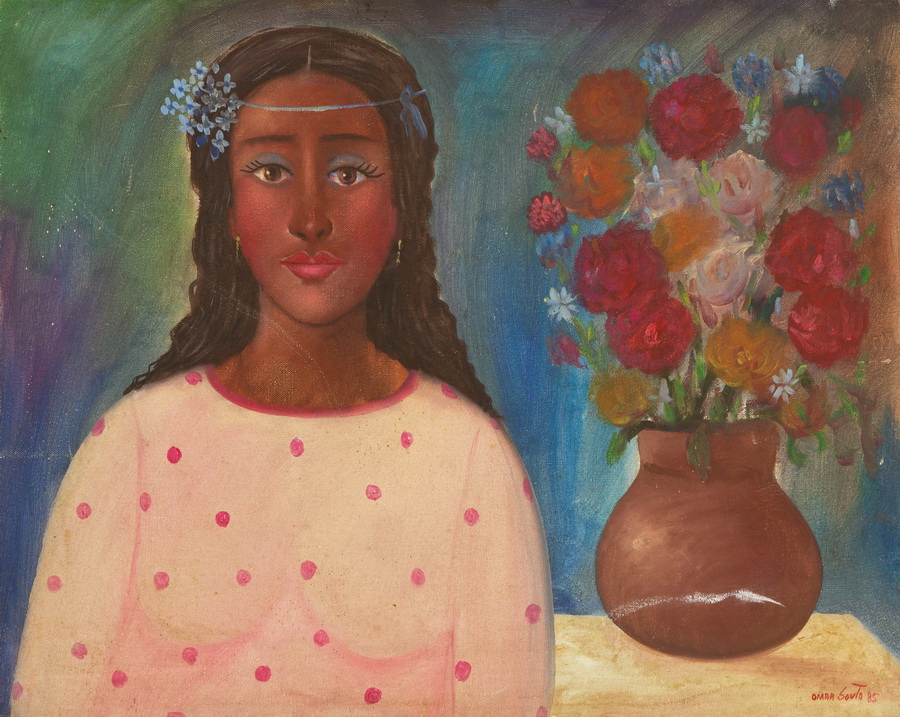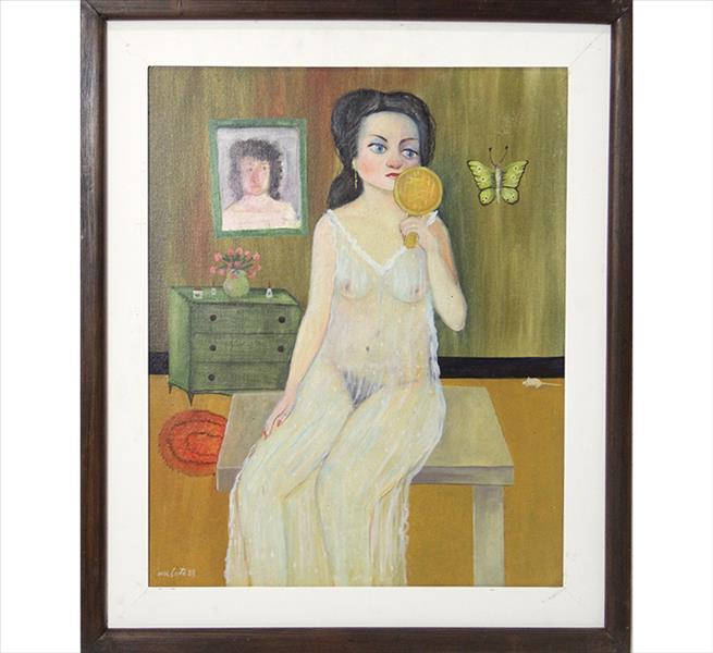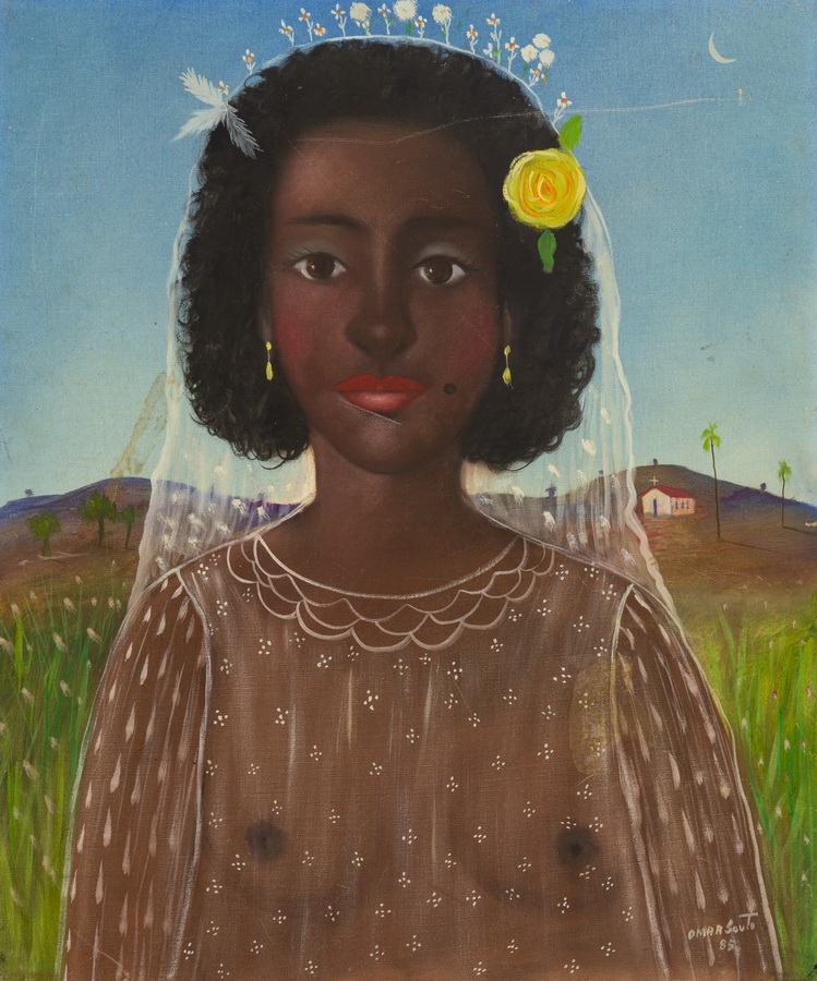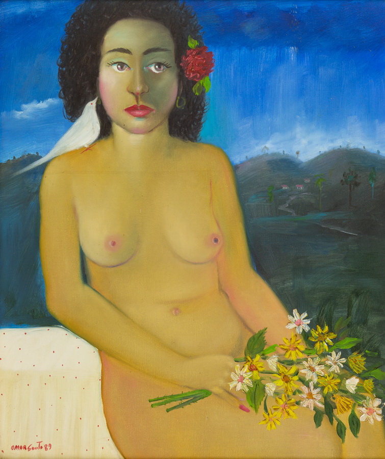 Omar Souto - A musa de chapéu - 25,5 x 29 cm - Óleo sobre cartão - Assinatura canto inferior direito