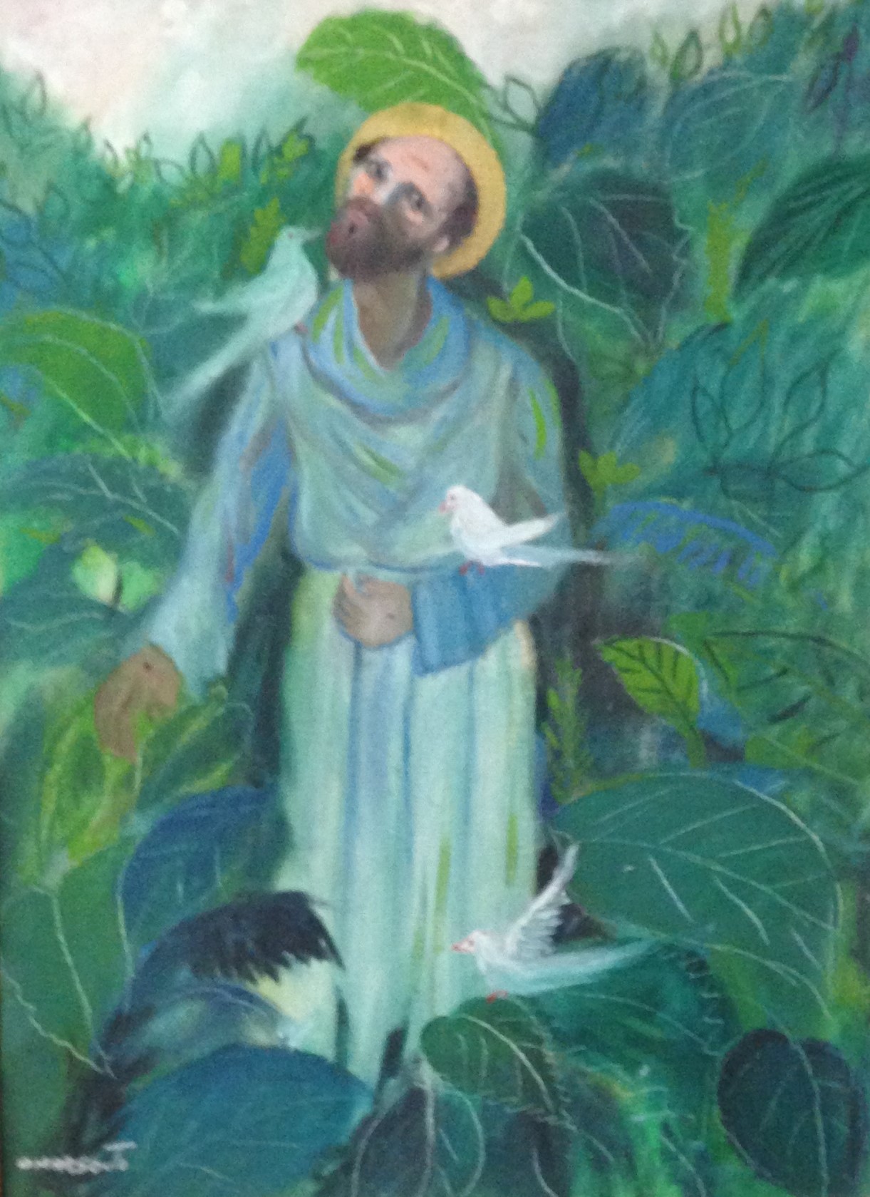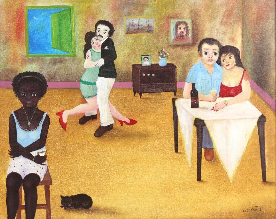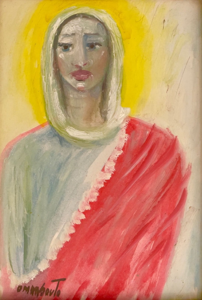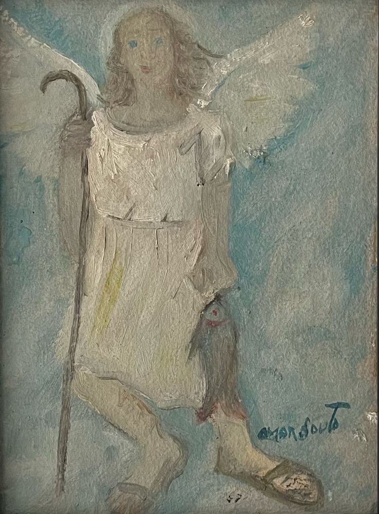 Omar Souto - O anjo da guarda - 19,5 x 14,5 cm - Óleo sobre cartão - Assinatura canto inferior esquerdo