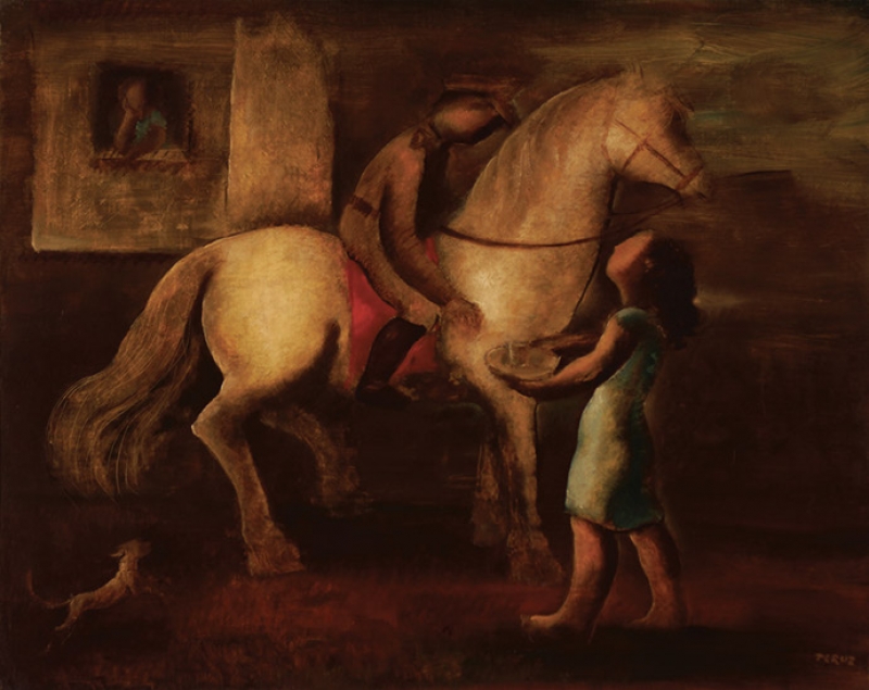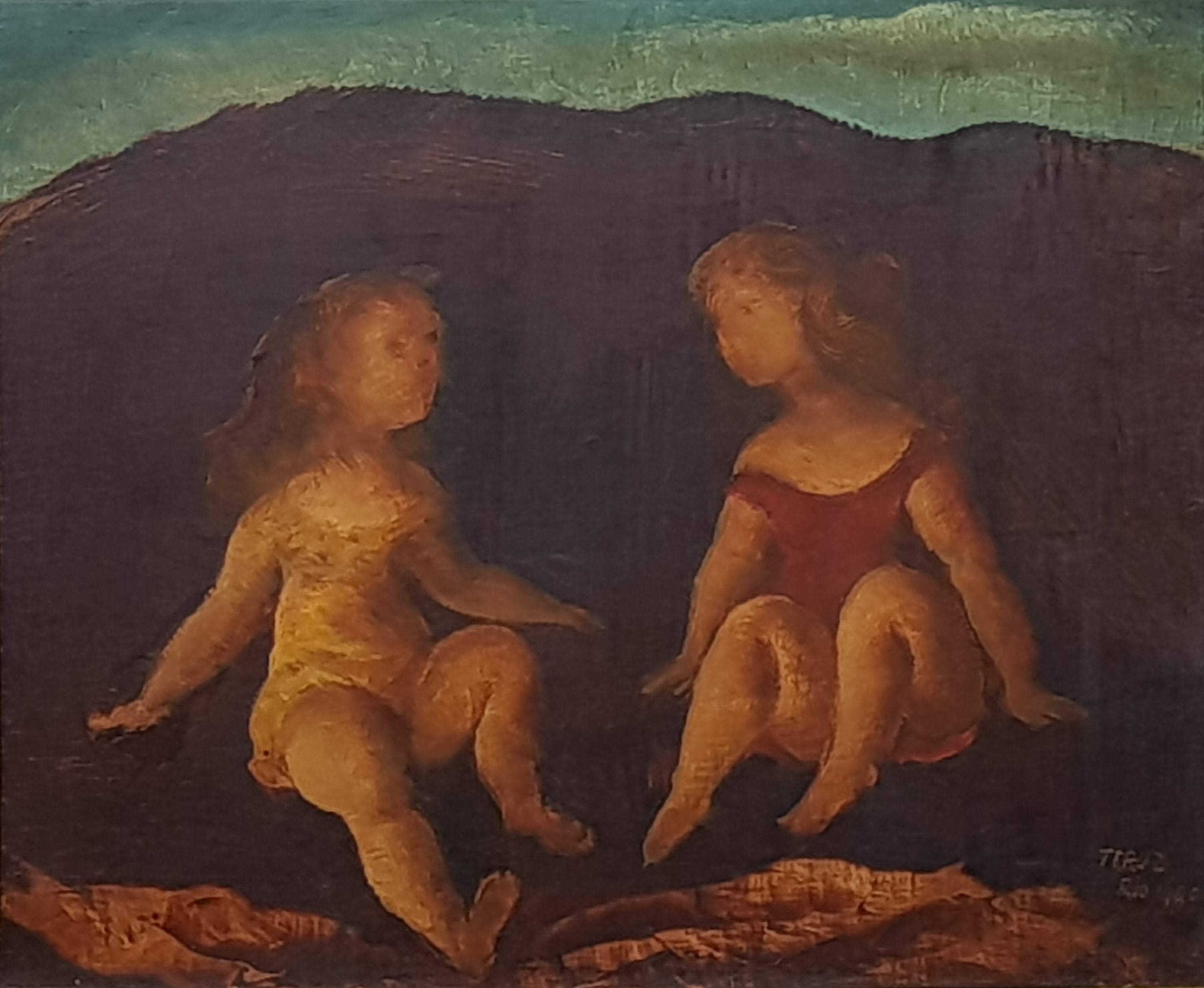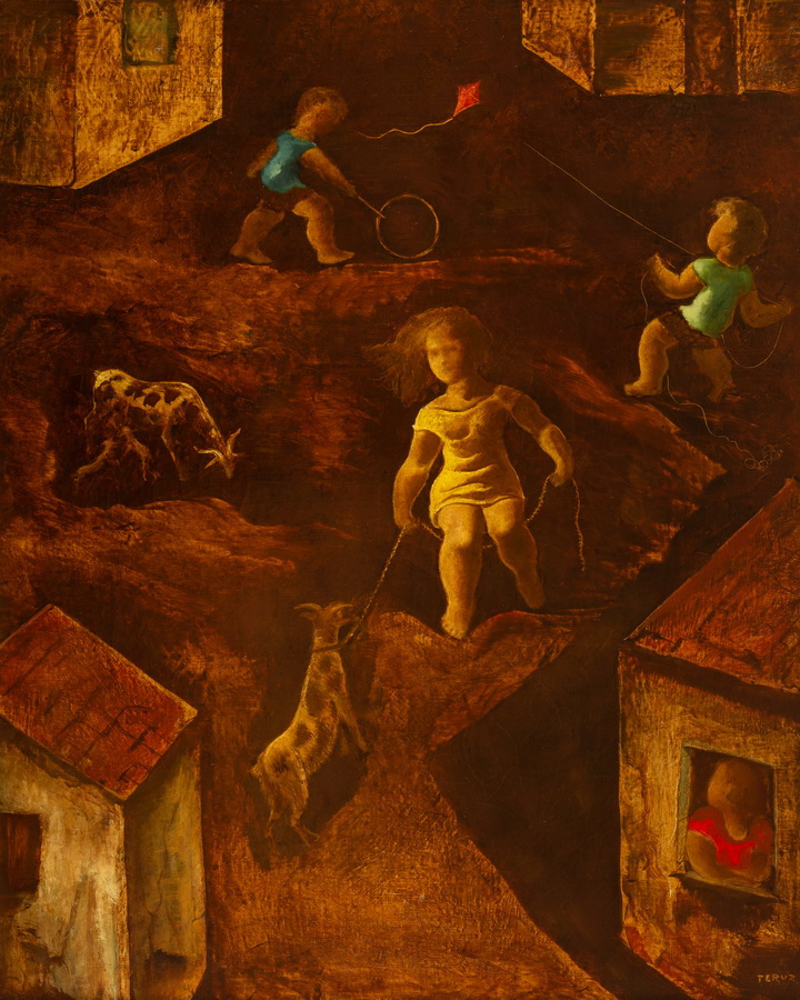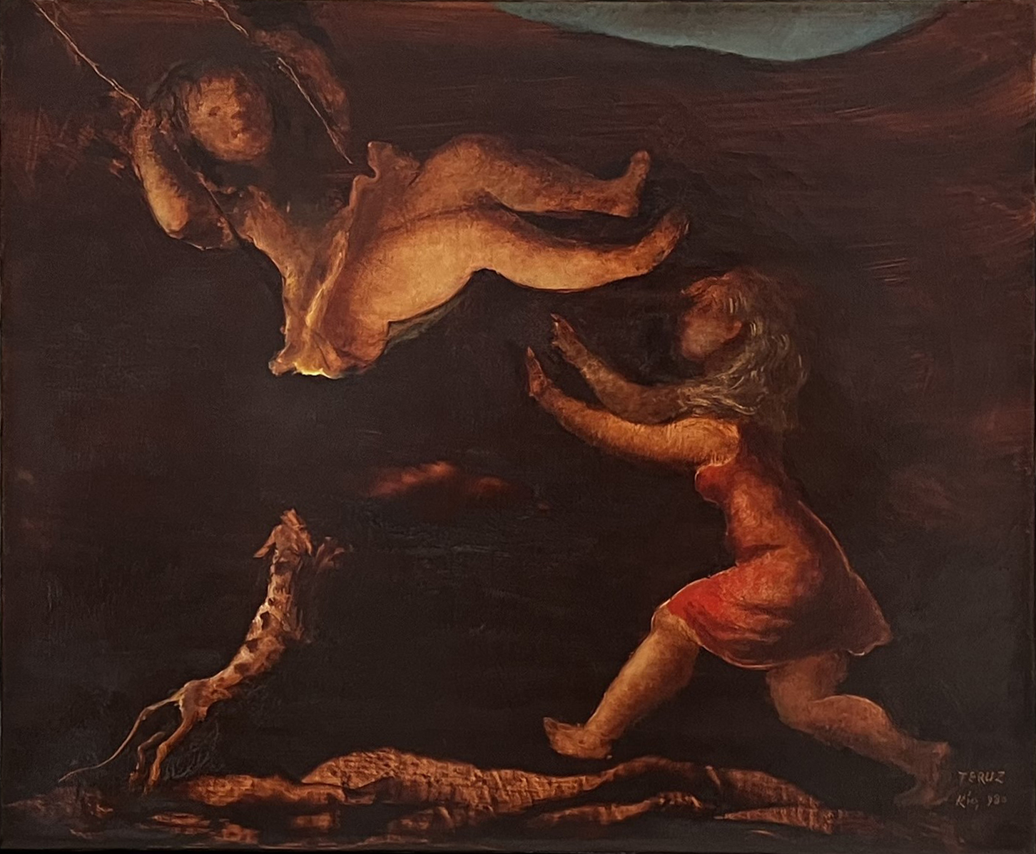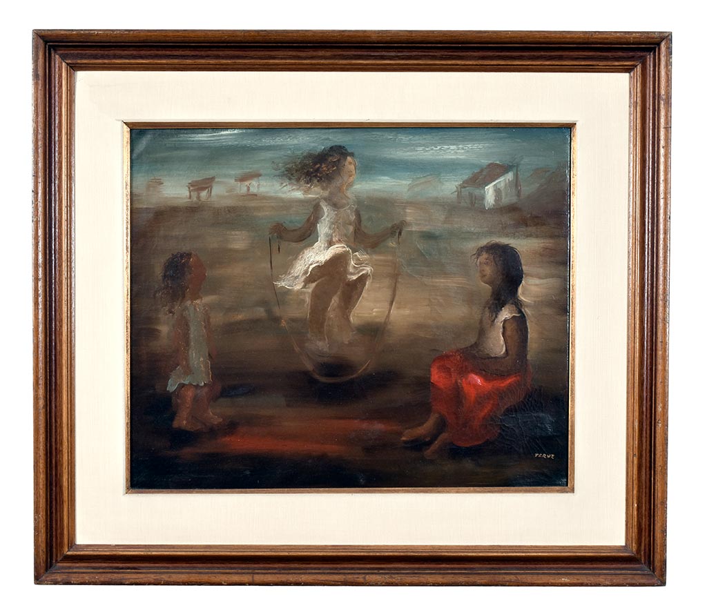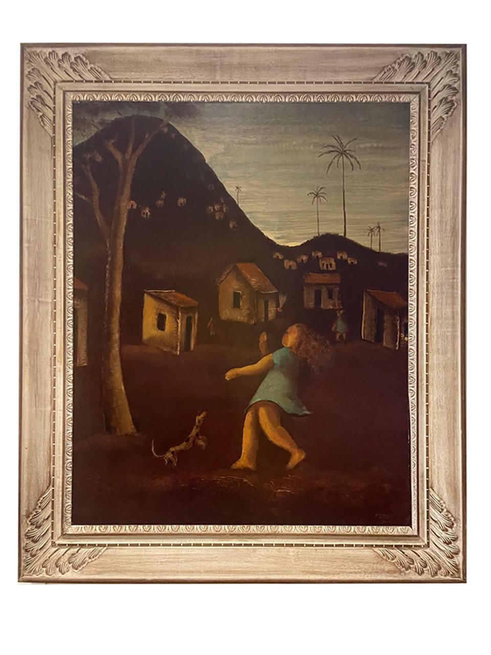 Orlando Teruz - Menina com animal - 1972 - Óleo sobre tela - Assinado canto inferior direito - 81 x 65 cm. Coleção Múcio Bandeira de Mello.