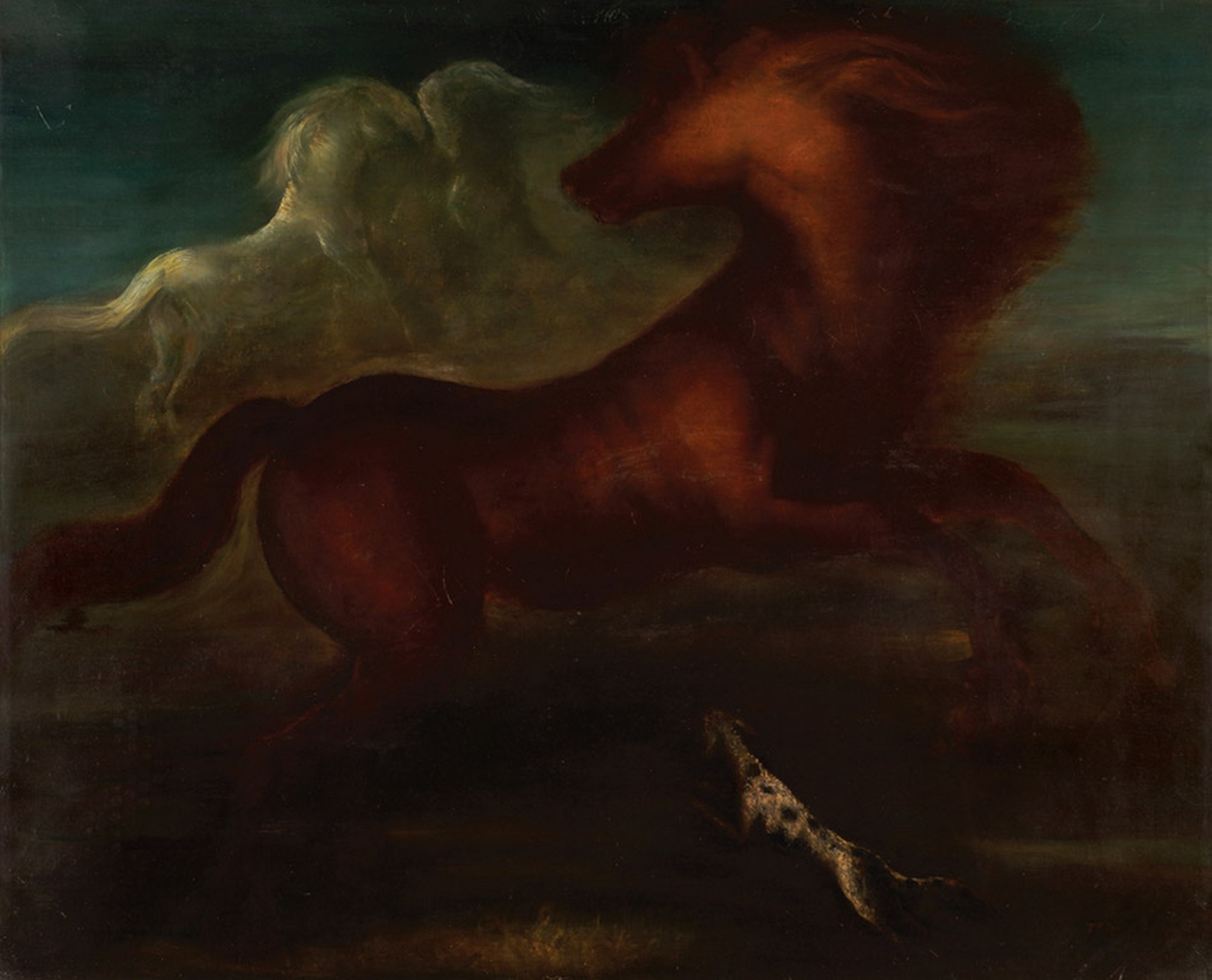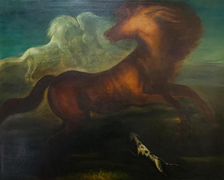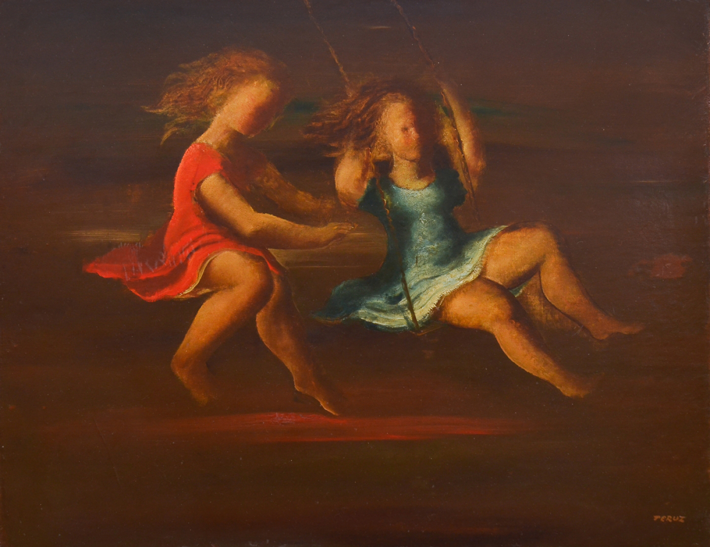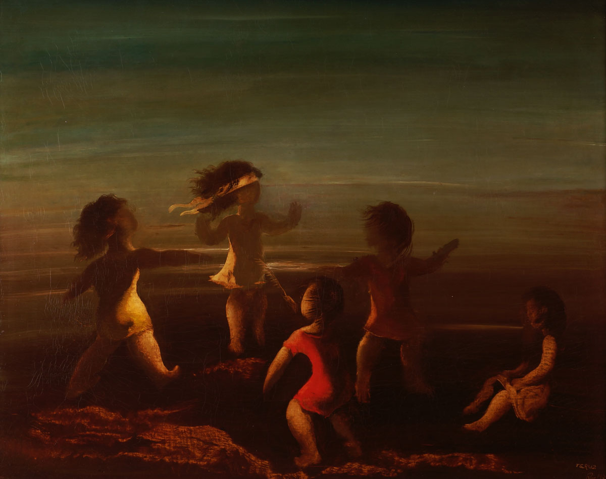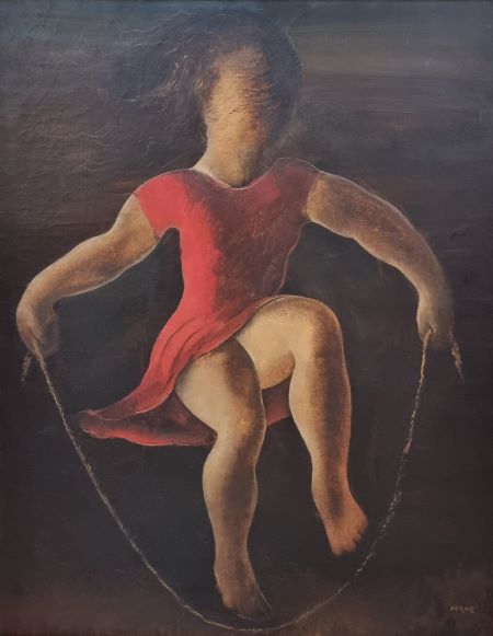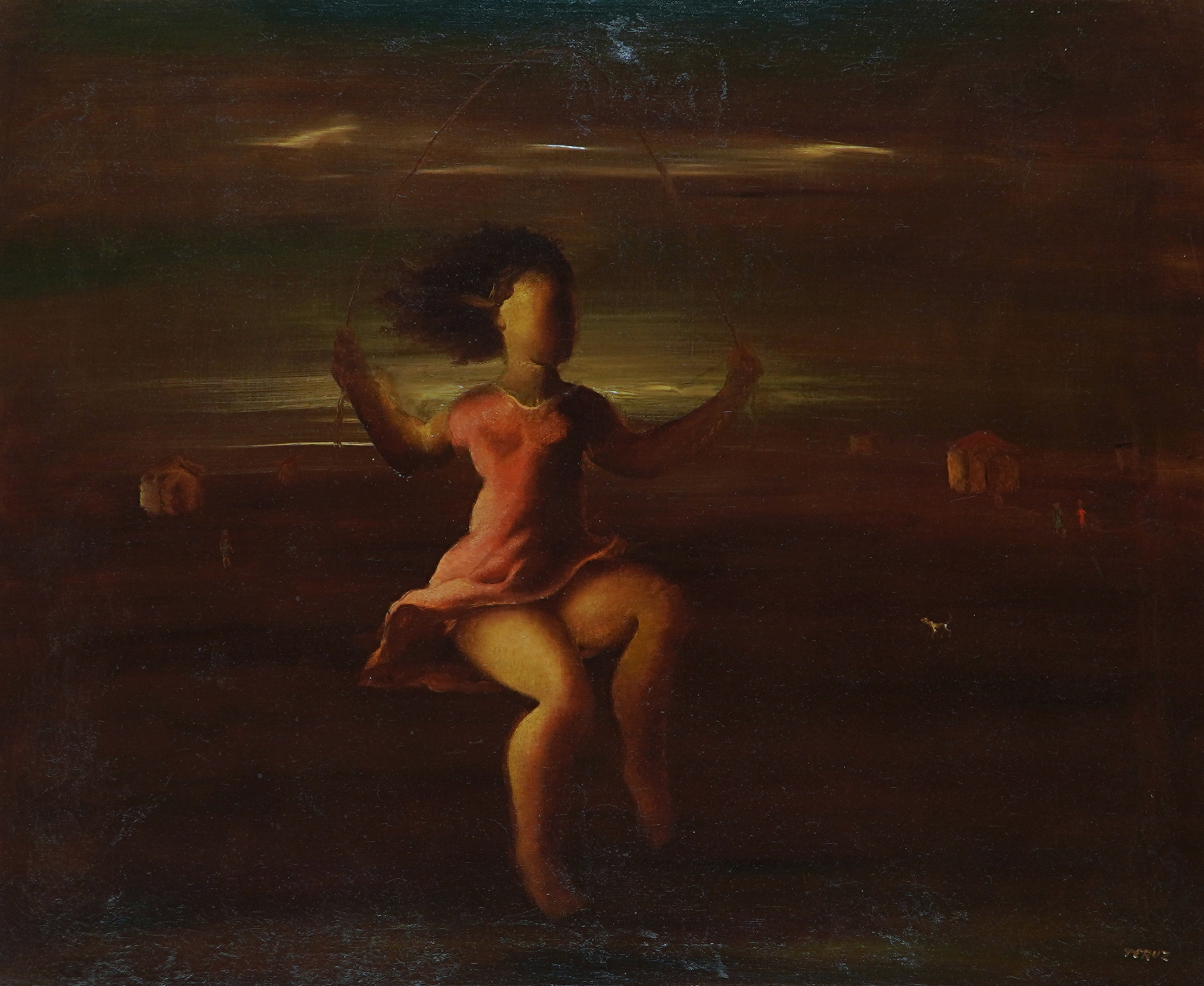 Orlando Teruz - Menina com animal - 1972 - Óleo sobre tela - Assinado canto inferior direito - 81 x 65 cm. Coleção Múcio Bandeira de Mello.
