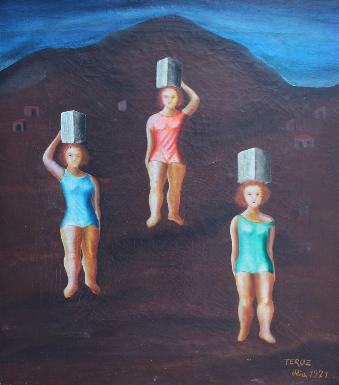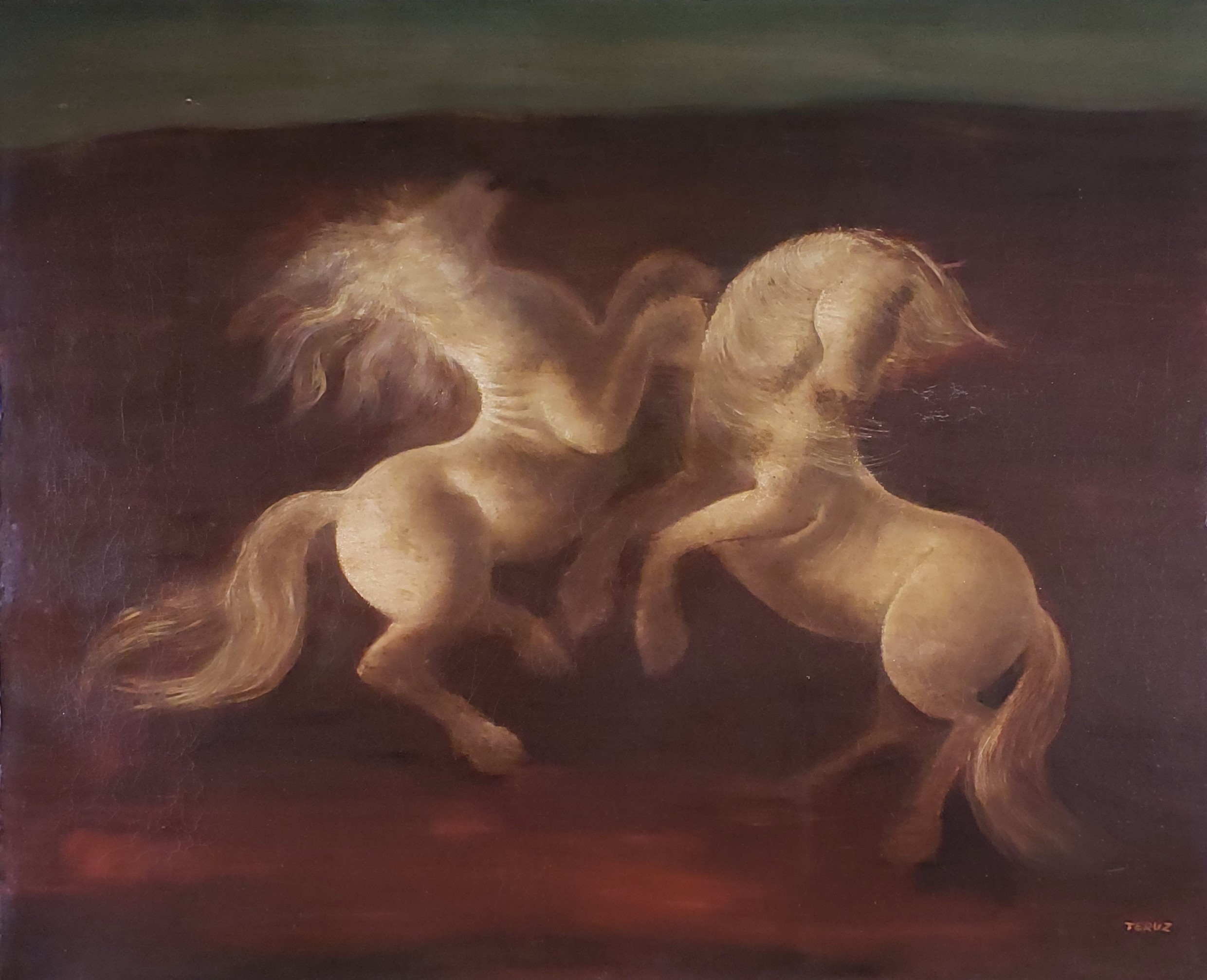 Teruz possui grande domínio da técnica, tanto da pintura como do desenho de observação. Sua temática aborda cenas de infância - inúmeras e presentes em todos os períodos da vasta produção do pintor -, cavalos, reuniões populares. Nesse limiar entre moderno e tradicional, Teruz resvala, por vezes, em soluções trazidas pelos movimentos de vanguarda, sendo o surrealismo a referência mais marcante no que diz respeito a ambientações oníricas.