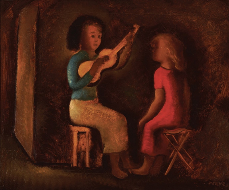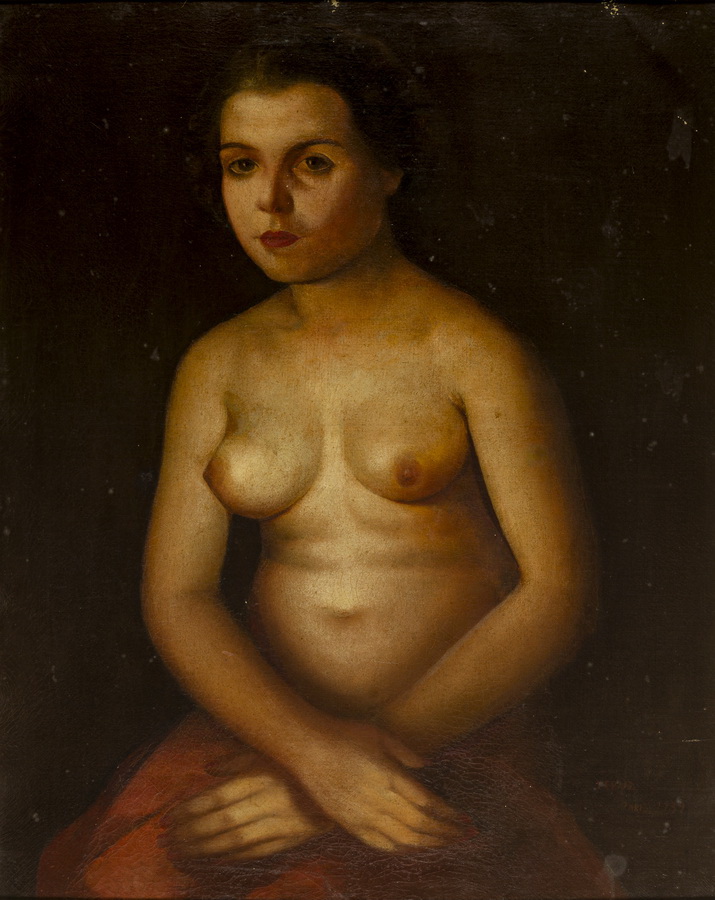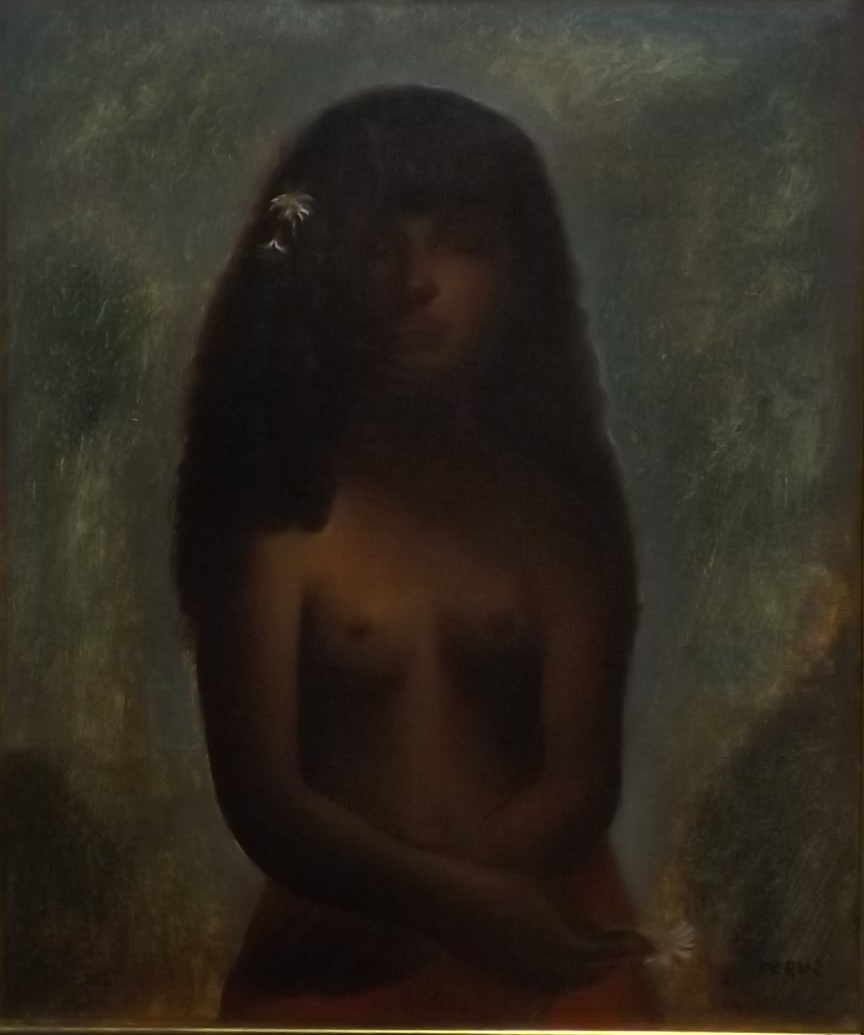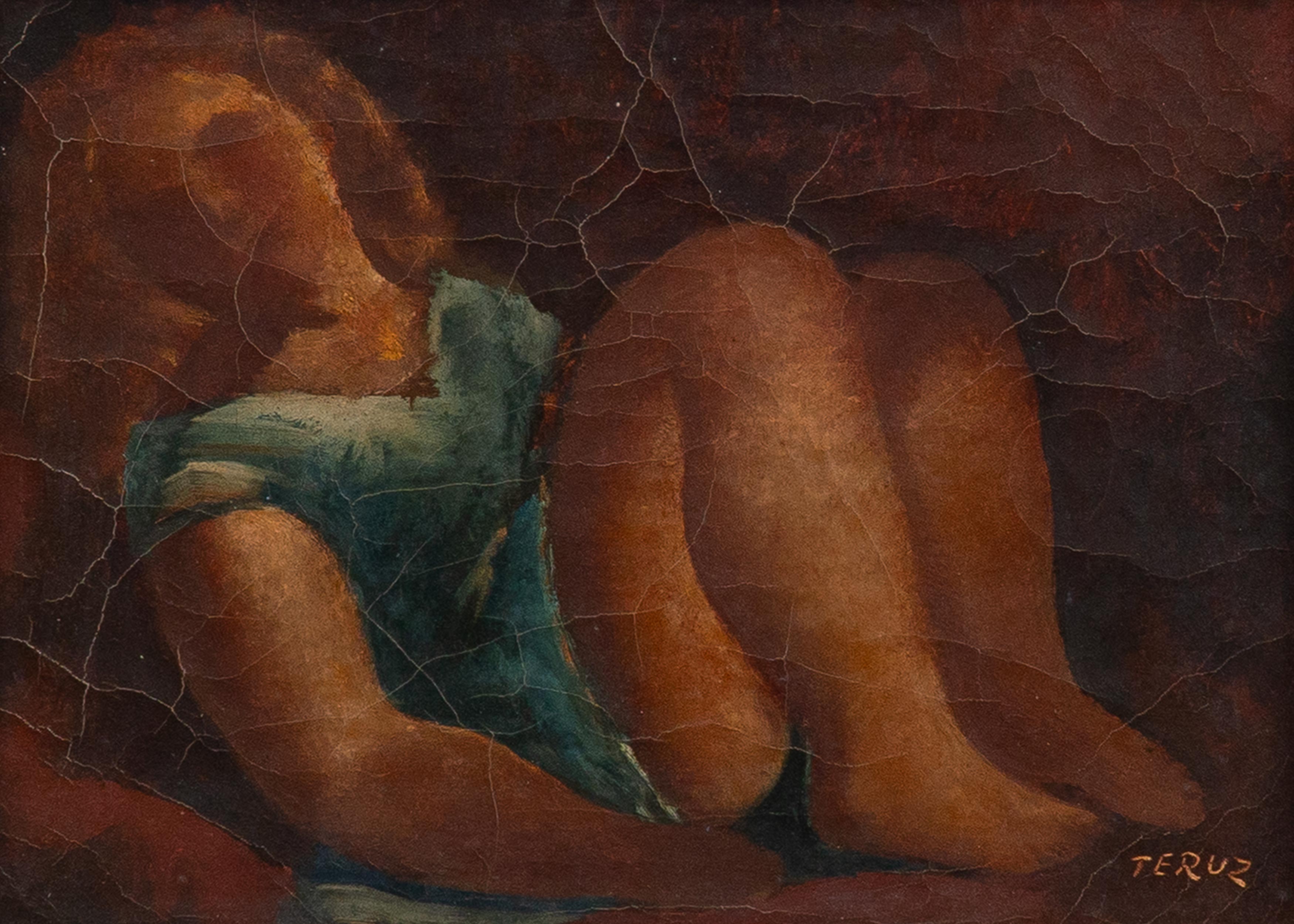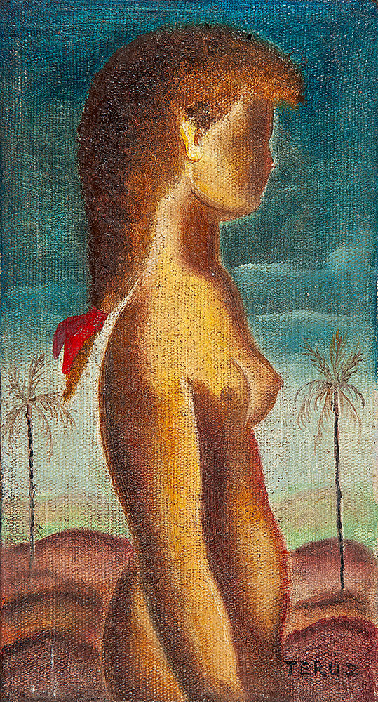 Orlando Teruz - Figura feminina - Óleo sobre tela - Assinado canto inferior direito - 15 x 21 cm. Coleção Múcio Bandeira de Mello.