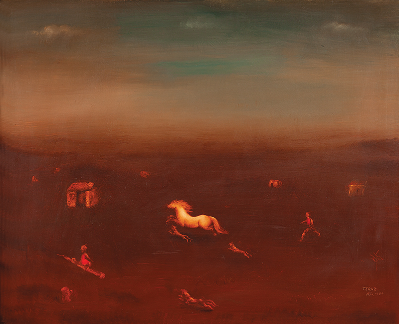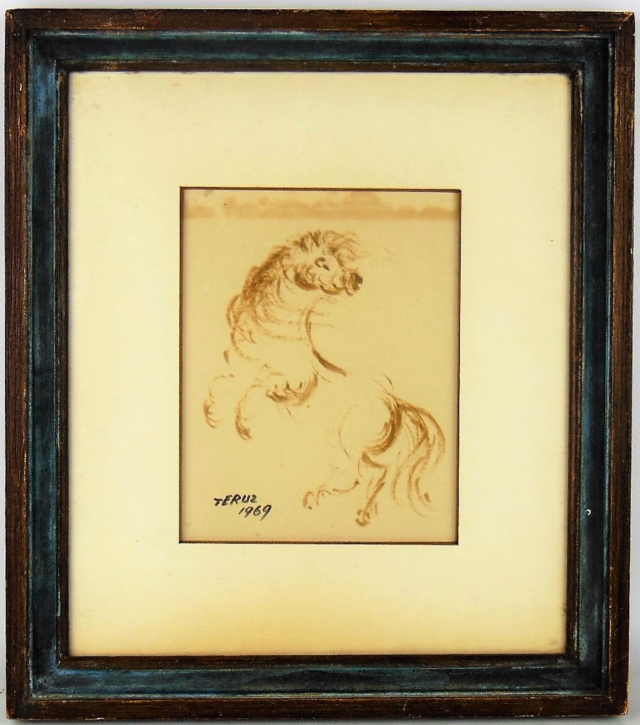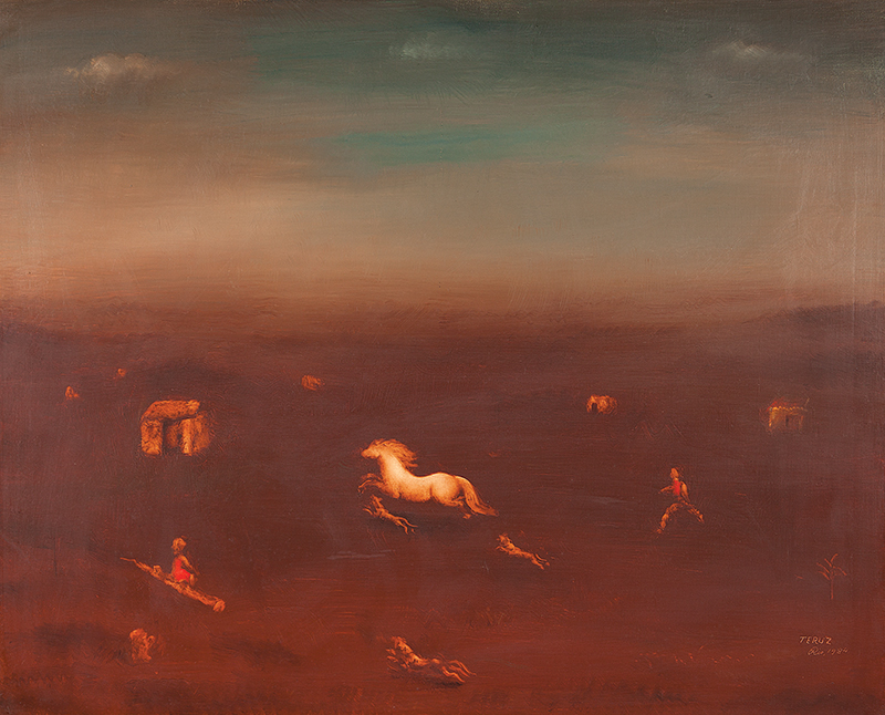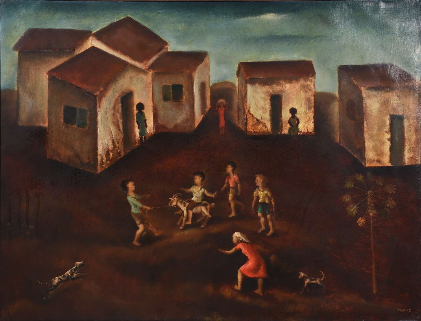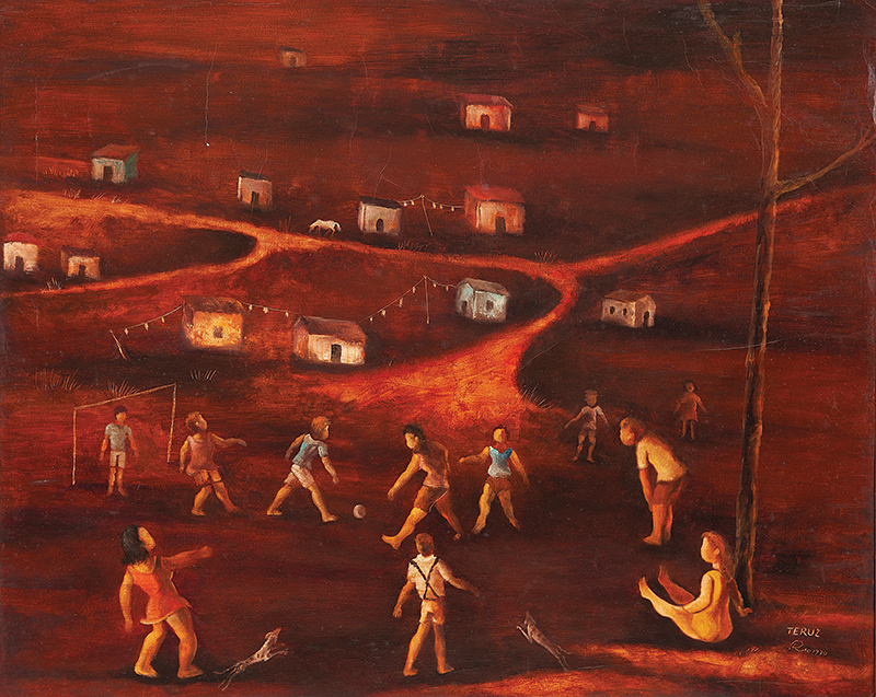 Teruz possui grande domínio da técnica, tanto da pintura como do desenho de observação. Sua temática aborda cenas de infância - inúmeras e presentes em todos os períodos da vasta produção do pintor -, cavalos, reuniões populares. Nesse limiar entre moderno e tradicional, Teruz resvala, por vezes, em soluções trazidas pelos movimentos de vanguarda, sendo o surrealismo a referência mais marcante no que diz respeito a ambientações oníricas.