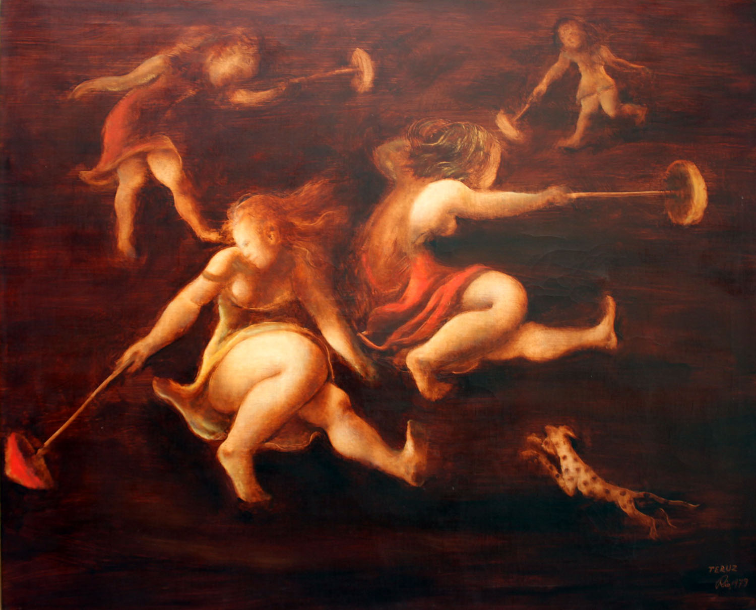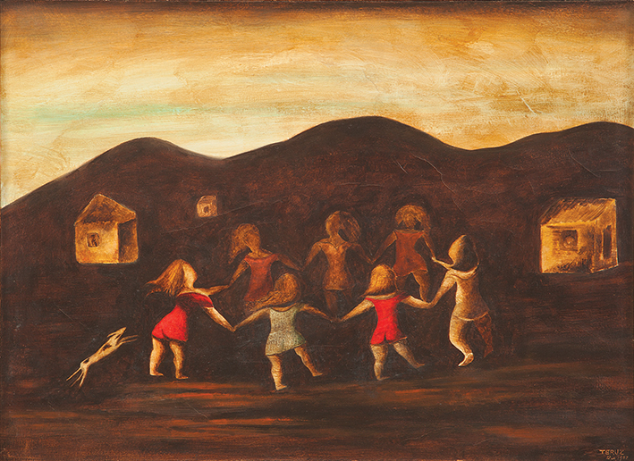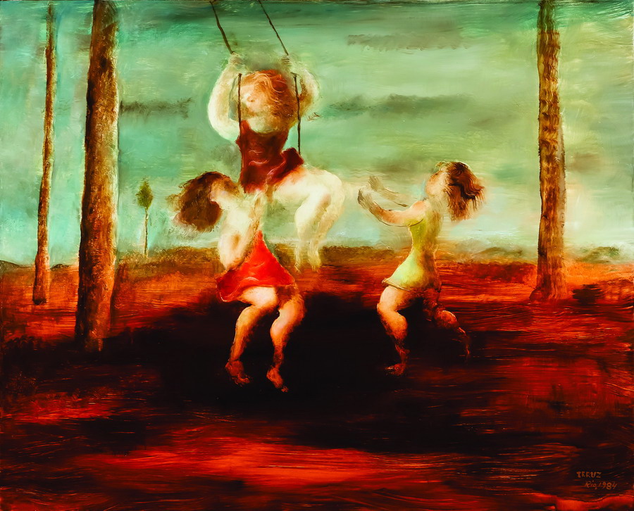 Teruz possui grande domínio da técnica, tanto da pintura como do desenho de observação. Sua temática aborda cenas de infância - inúmeras e presentes em todos os períodos da vasta produção do pintor -, cavalos, reuniões populares. Nesse limiar entre moderno e tradicional, Teruz resvala, por vezes, em soluções trazidas pelos movimentos de vanguarda, sendo o surrealismo a referência mais marcante no que diz respeito a ambientações oníricas.