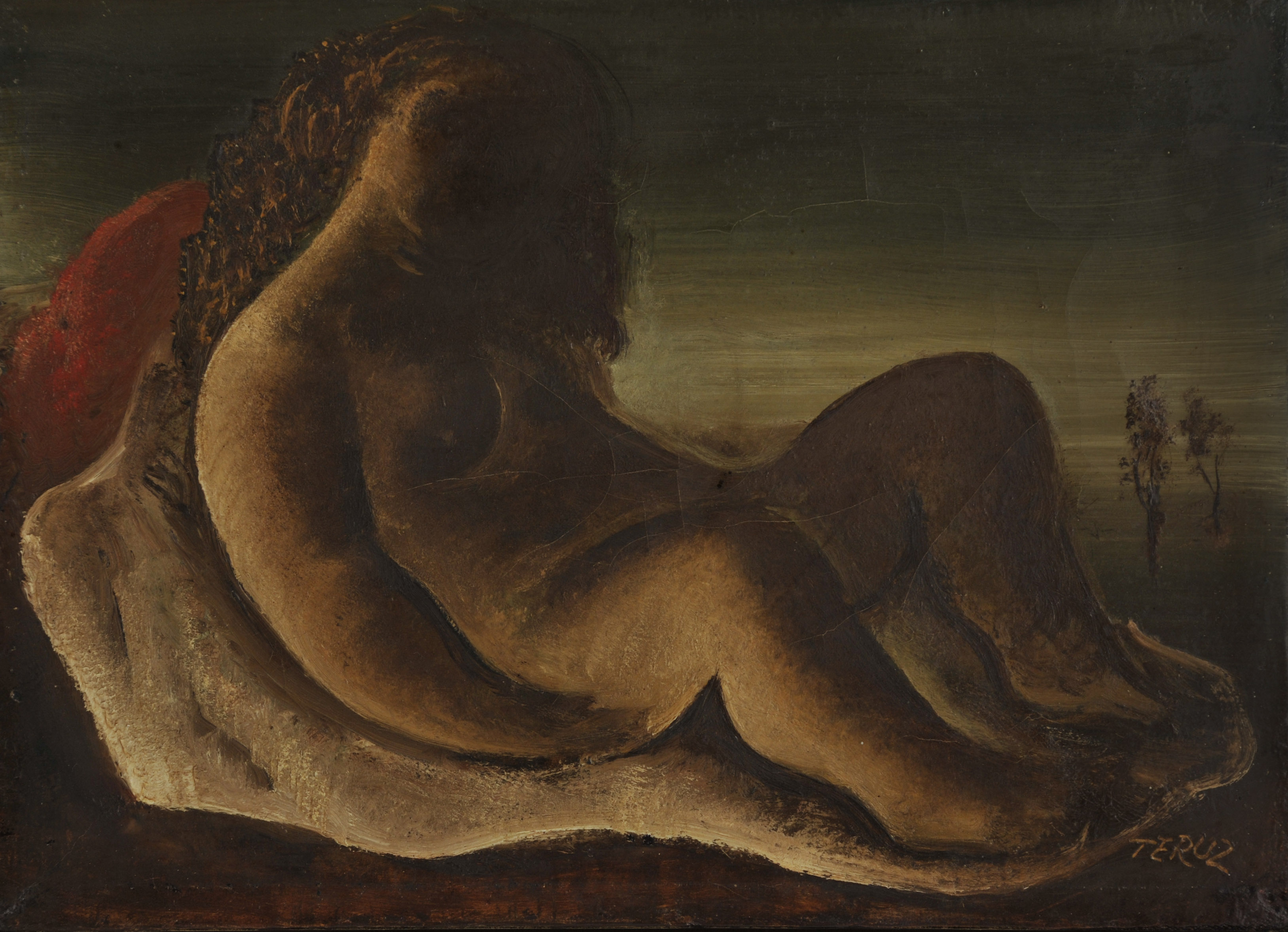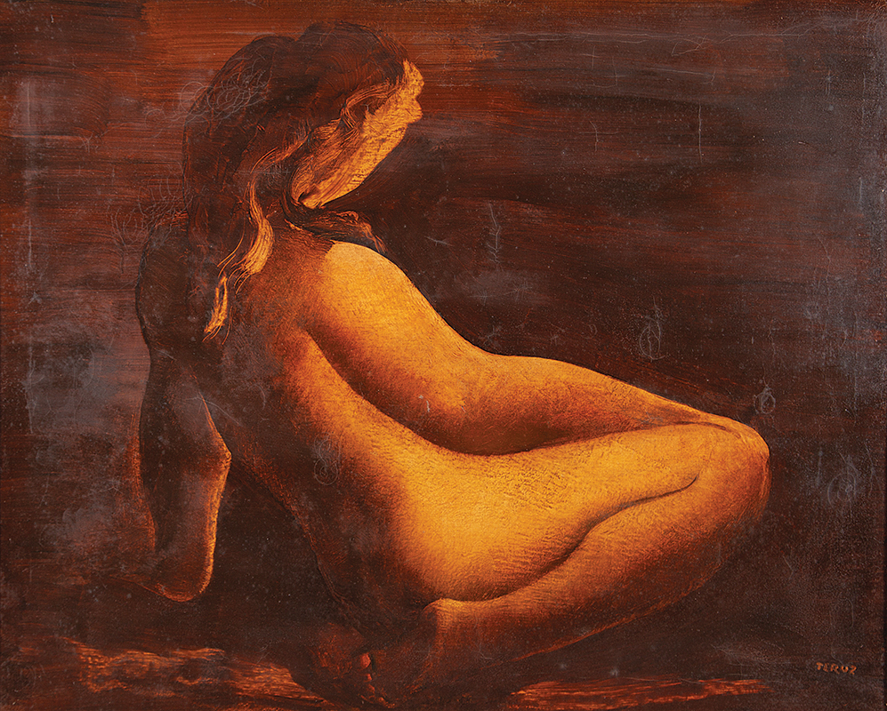 Orlando Teruz - Figura feminina - Óleo sobre tela - Assinado canto inferior direito - 15 x 21 cm. Coleção Múcio Bandeira de Mello.