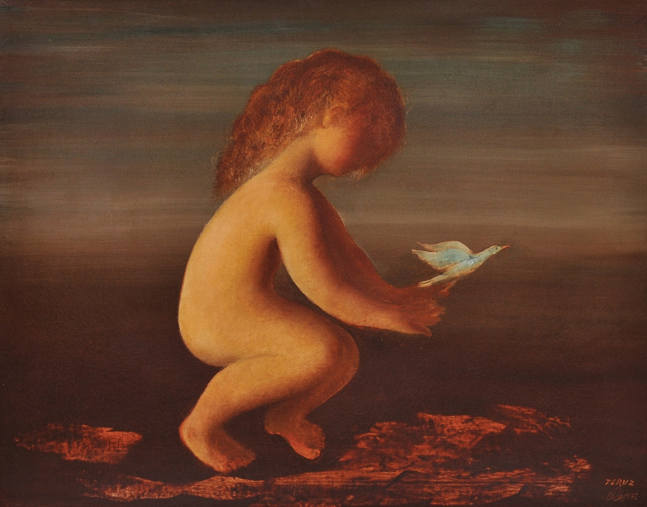 Orlando Teruz - Menina com animal - 1972 - Óleo sobre tela - Assinado canto inferior direito - 81 x 65 cm. Coleção Múcio Bandeira de Mello.