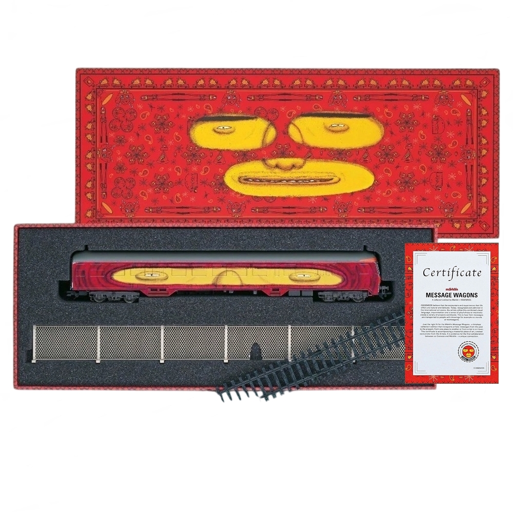 OSGEMEOS e MARKLIN Message Wagons -Vagao de Trem | Tamanho H0: 23,2 cm -Ed Limitada -Novo s/ uso acompanha embalagem original selada -Conjunto completo inclui certificado de autenticidade, vagao de trem, infos sobre os artistas, trilho exposição para o vagão, grade, etc. Produzido pela MARKLIN em Edição Limitada, item altamente colecionável.
