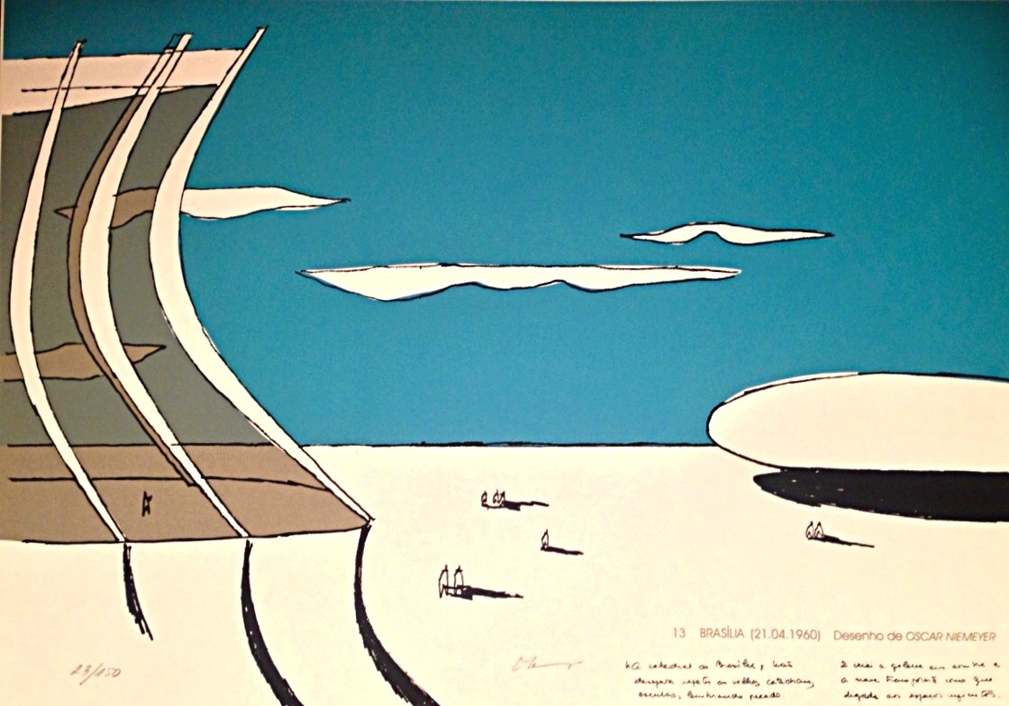 No Rio de Janeiro, em 1955, funda a revistaMódulo e no ano seguinte começa, a convite do presidente da República, Juscelino Kubitschek, a colaborar na construção da nova capital do Brasil, Brasília, cujo plano urbanístico é confiado a Lucio Costa. Em 1958, é nomeado arquiteto-chefe de Brasília, para onde se transfere e permanece até 1960. Entre os projetos mais importantes de Niemeyer destacam-se o Parque do Ibirapuera, São Paulo, 1951; a sede do Partido Comunista Francês, Paris, 1965; a Escola de Arquitetura de Argel, Argélia, 1968; a sede da Editora Mondadori, Milão, Itália, 1968 e a sede do jornalL'Humanité, Saint-Denis, França, 1987.