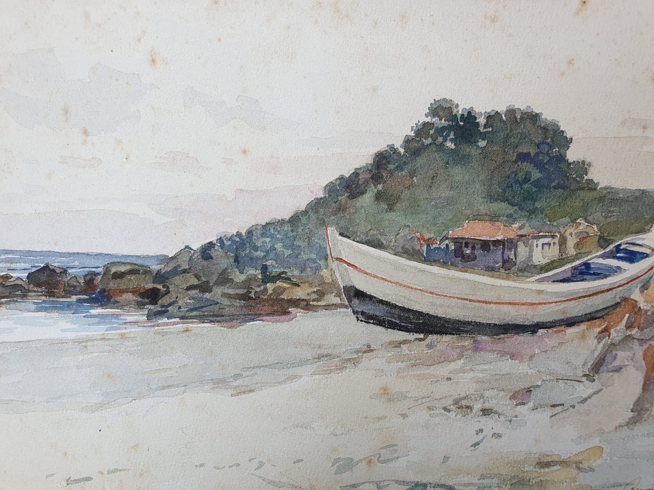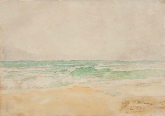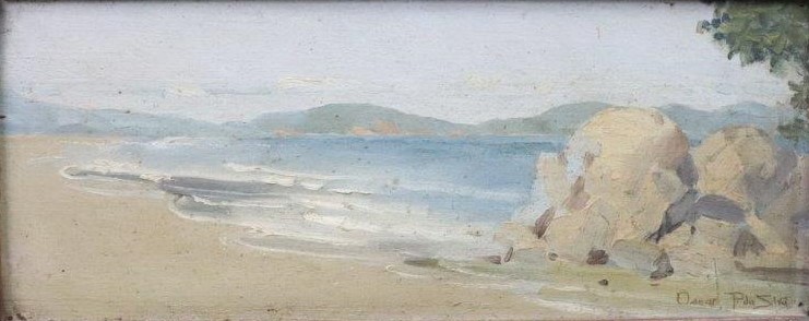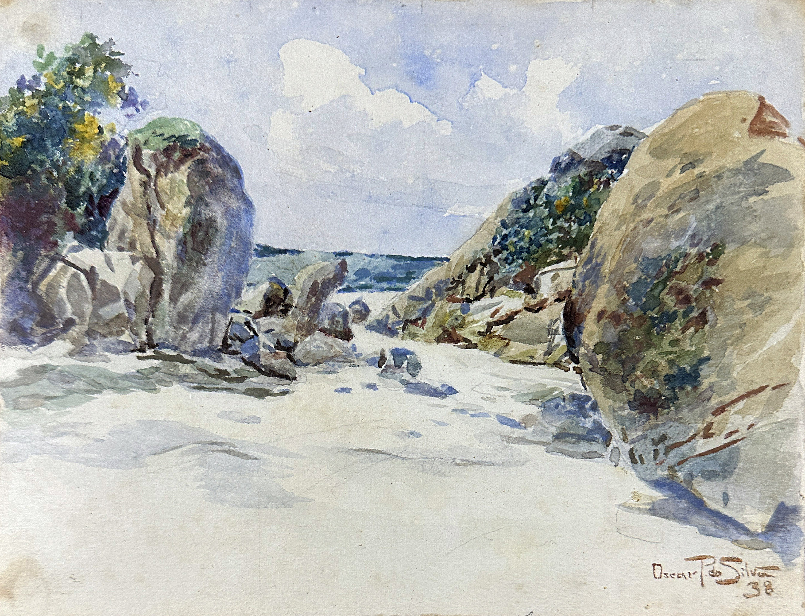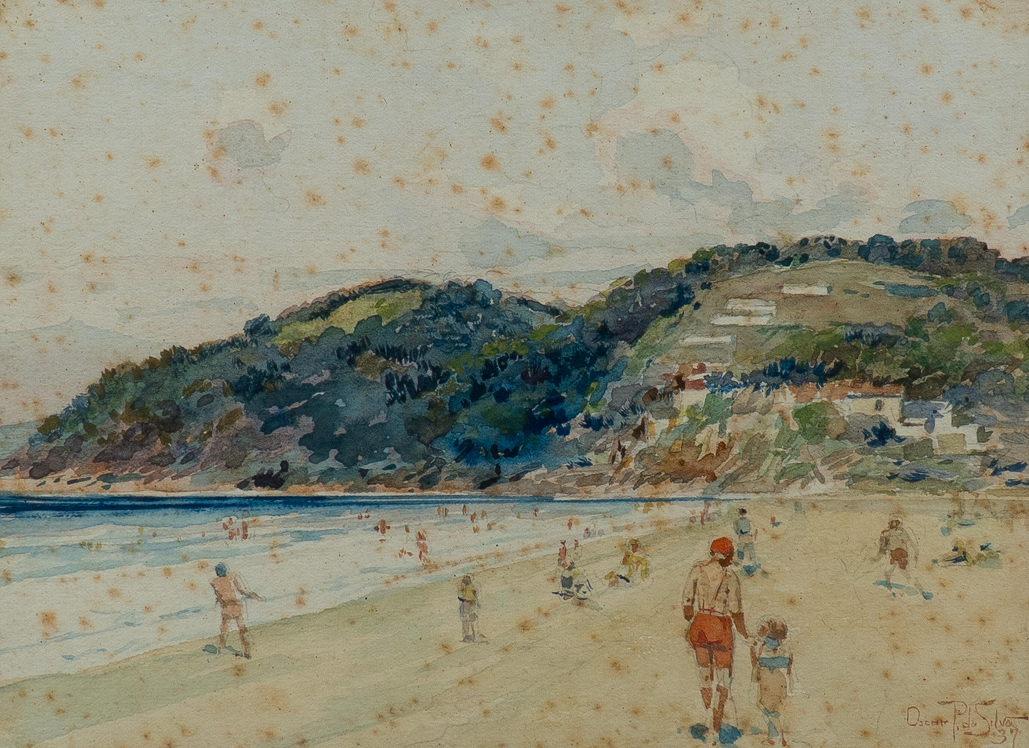 Oscar Pereira da Silva- Vista da praia, 1938 - Aquarela sobre papel, assinado e datado inferior direito. - 17,5 x 23 cm.